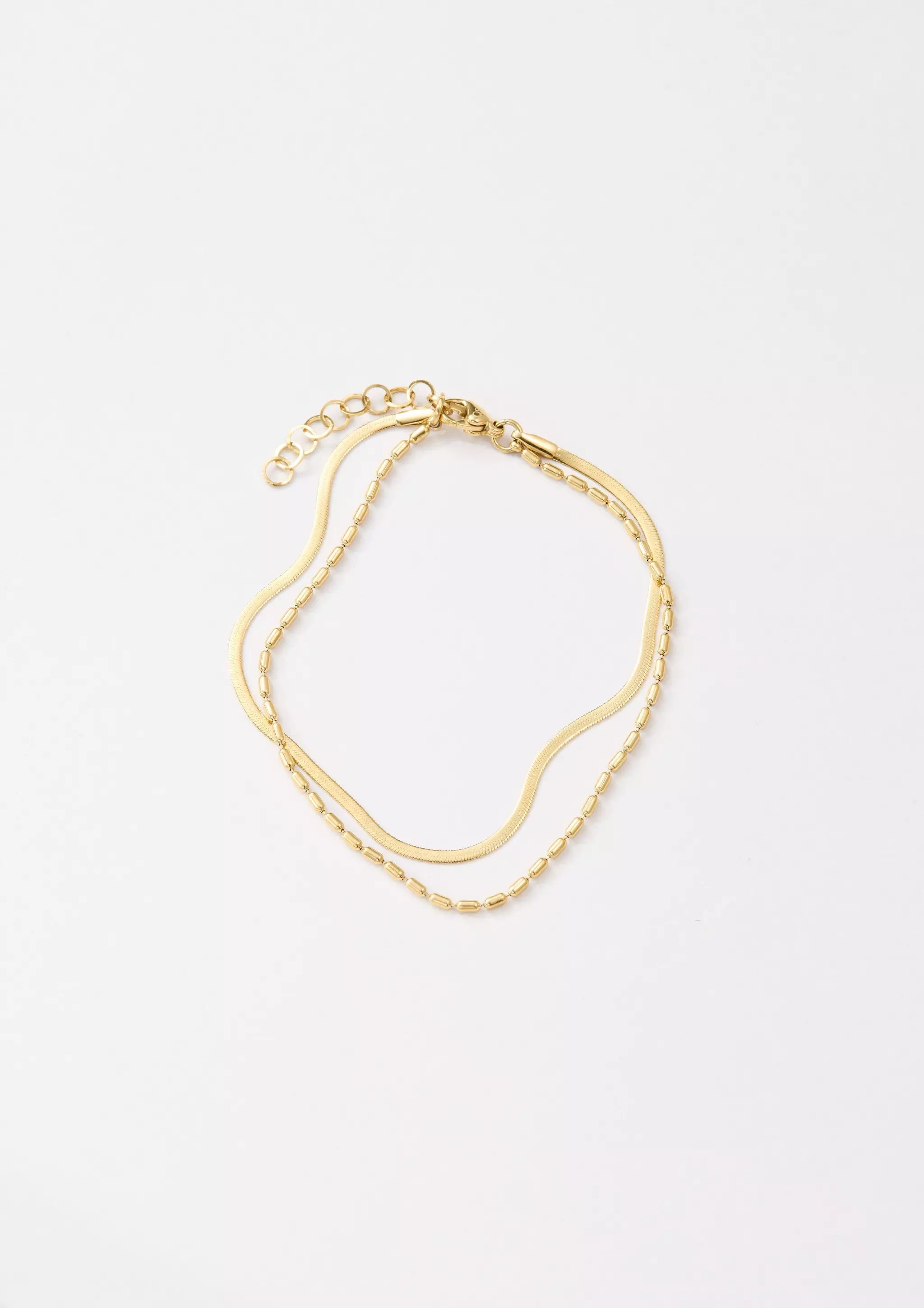 Dieses zarte Layering-Armband aus Edelstahl mit IP Gold wird schnell zu deinem neuen Lieblingsbegleiter. Die spezielle Ionenplattierung verleiht dem Schmuckstück eine besonders harte Oberfläche, schützt zuverlässig vor Korrosion und sorgt für den goldenen Farbton. Kombiniere es lässig mit anderen Armbändern oder trage es solo – es passt einfach immer. Der goldene Ton setzt stylische Akzente und macht jeden Look besonders. Perfekt für den Alltag und besondere Momente, die du nicht vergessen willst.