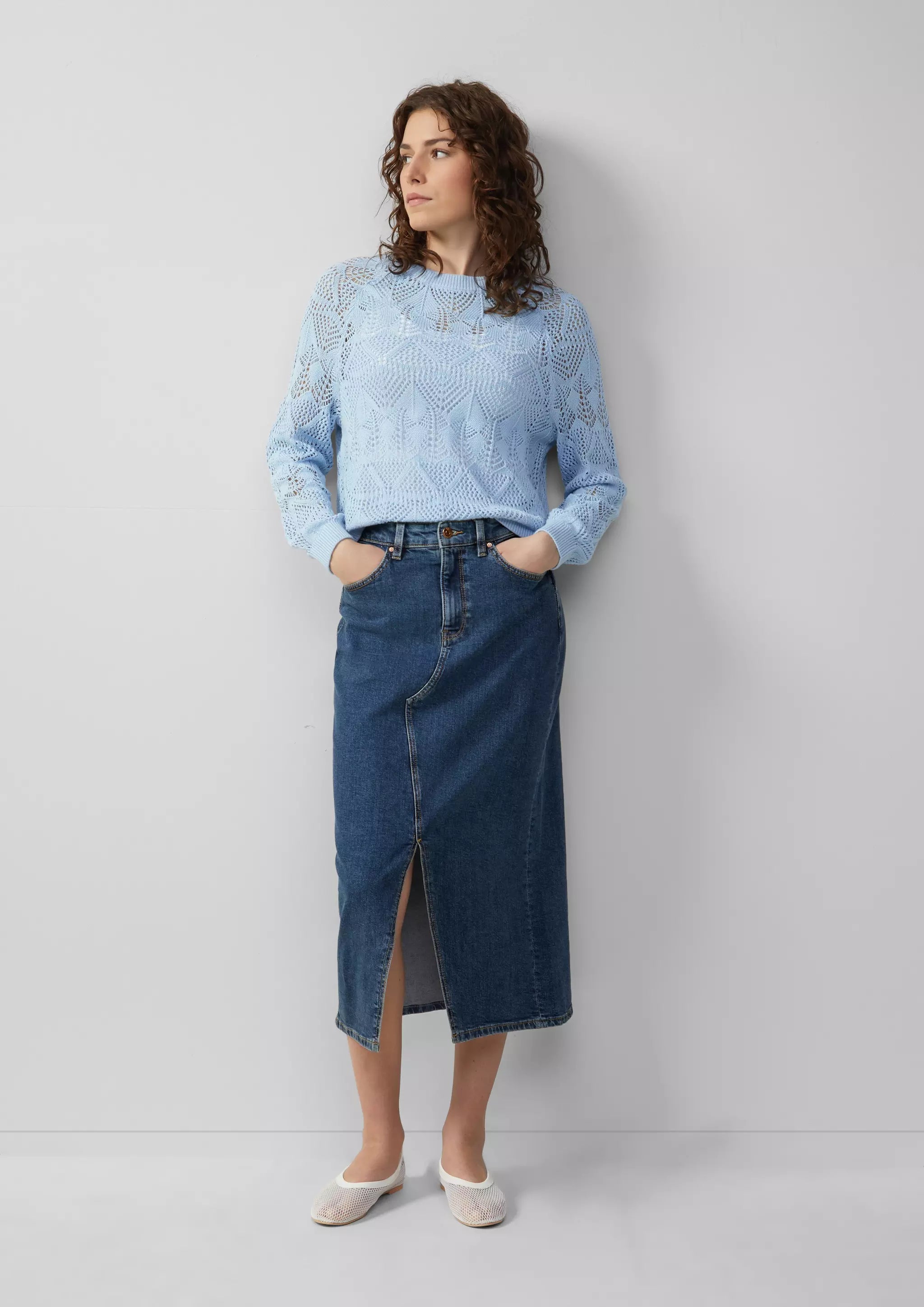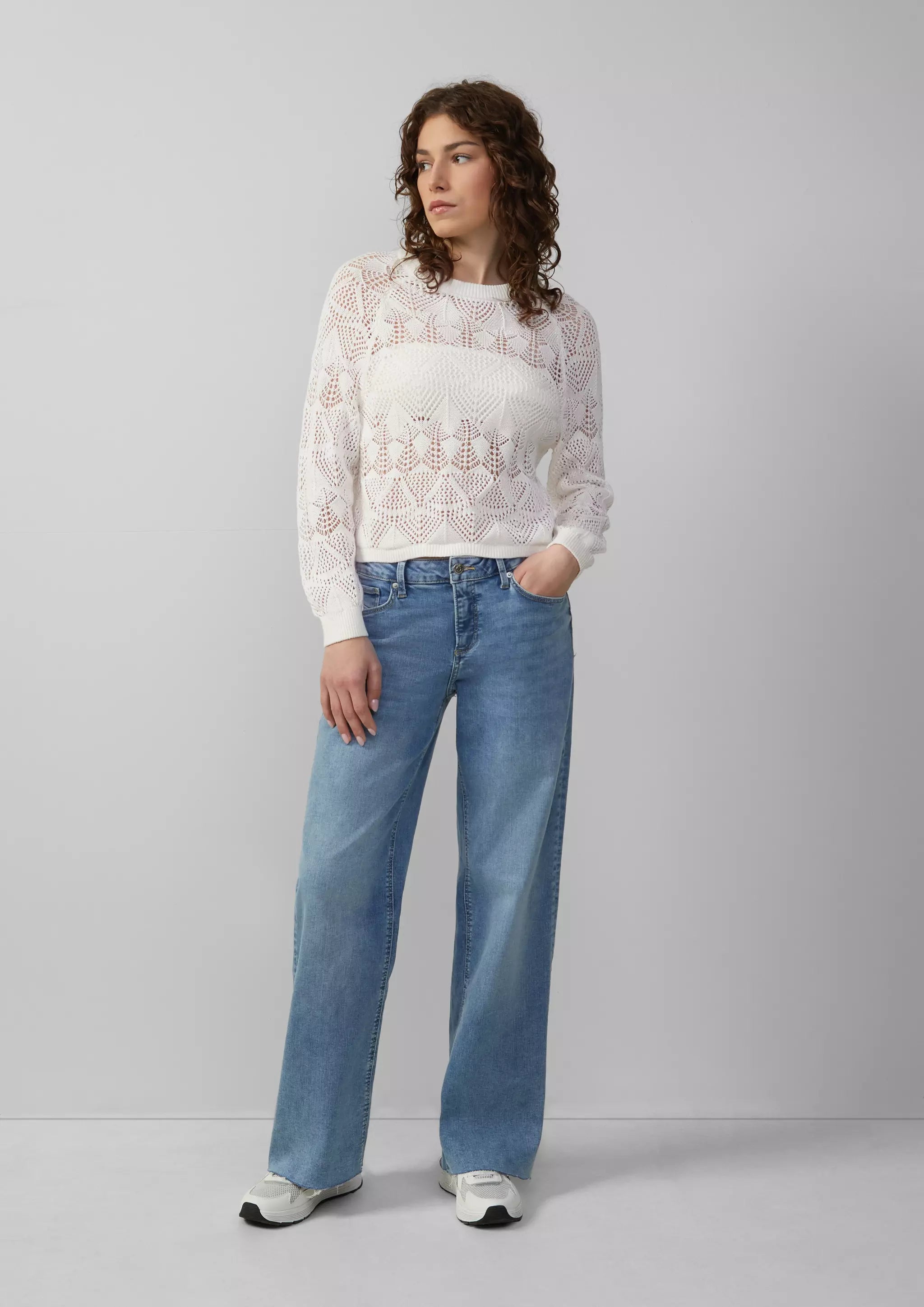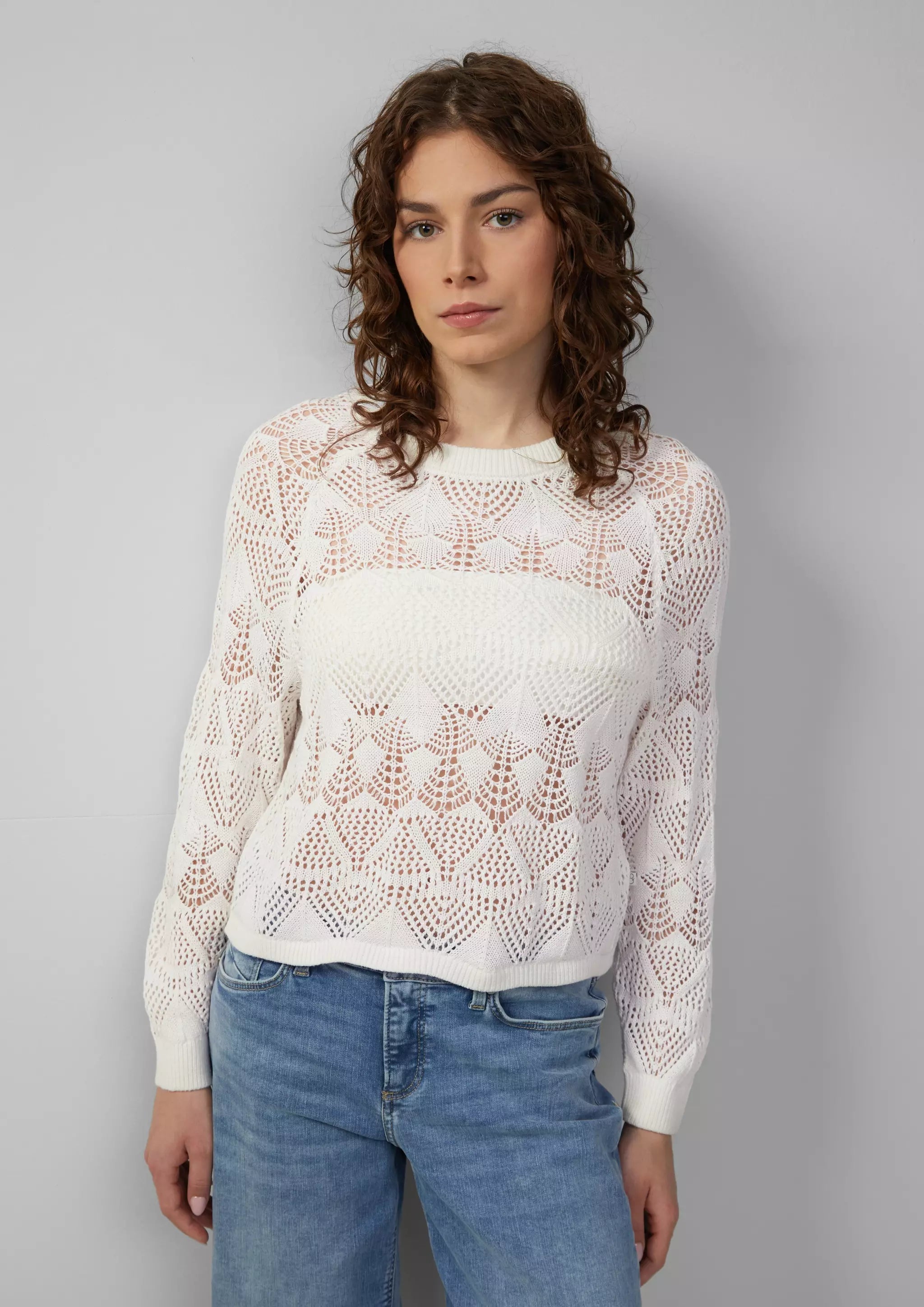 Baumwollpullover mit Charme: Dein neuer Liebling für jede Gelegenheit! Mit Ajourmuster und Raglanärmeln bringst du Abwechslung in deinen Style. Ob zum Treffeen mit Freunden oder gemütlich auf der Couch – dieser Pullover ist immer die richtige Wahl.