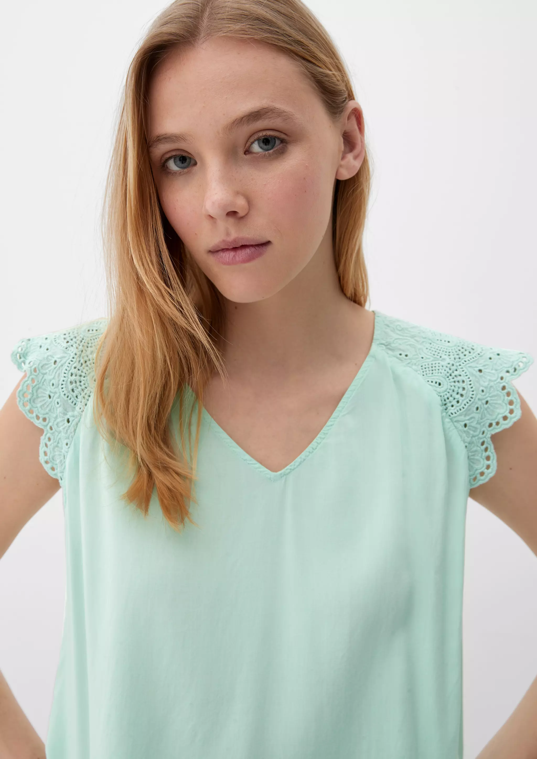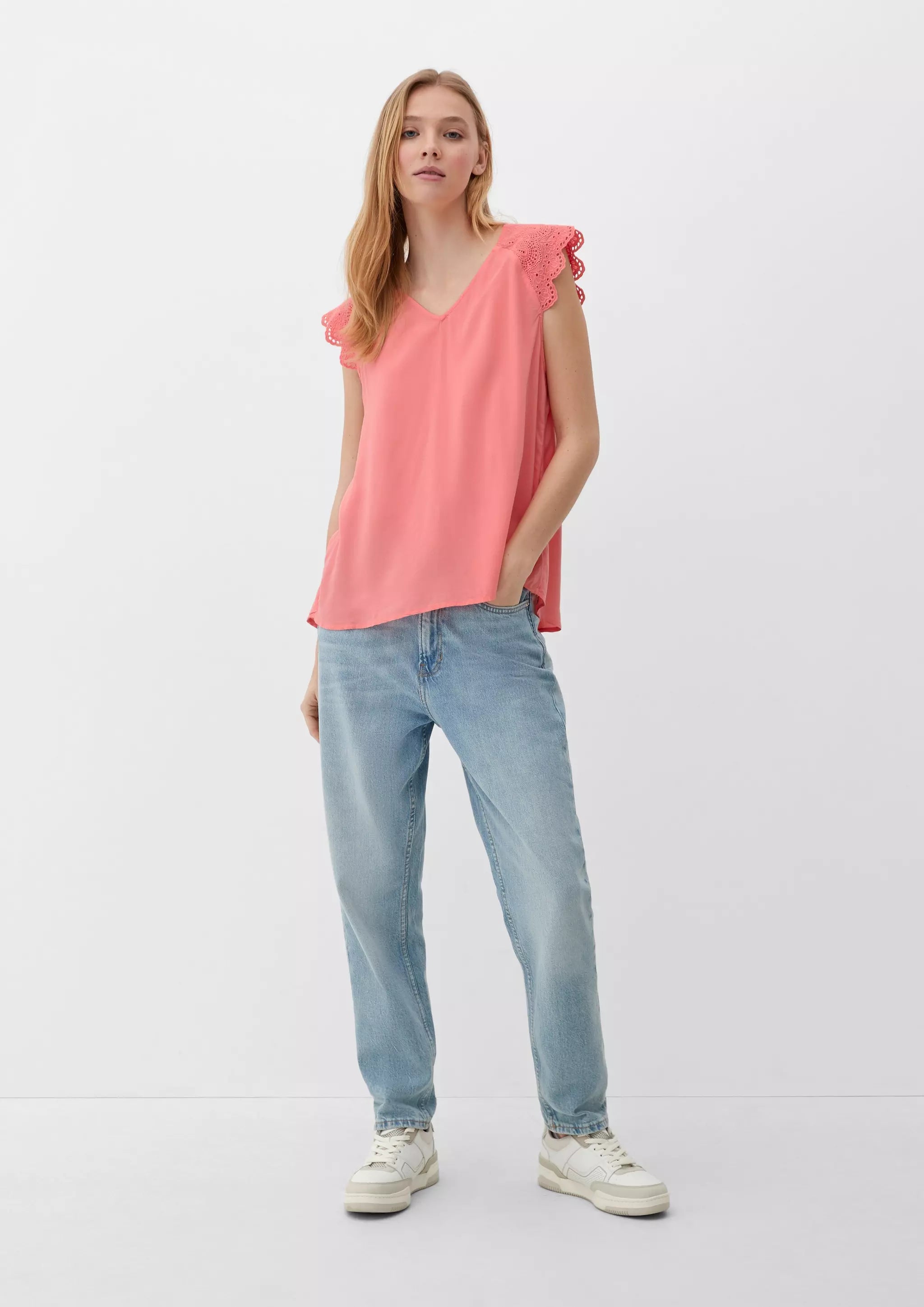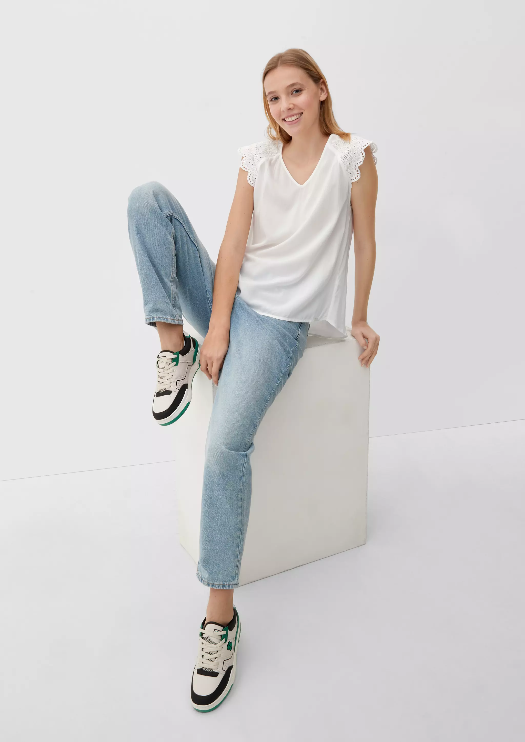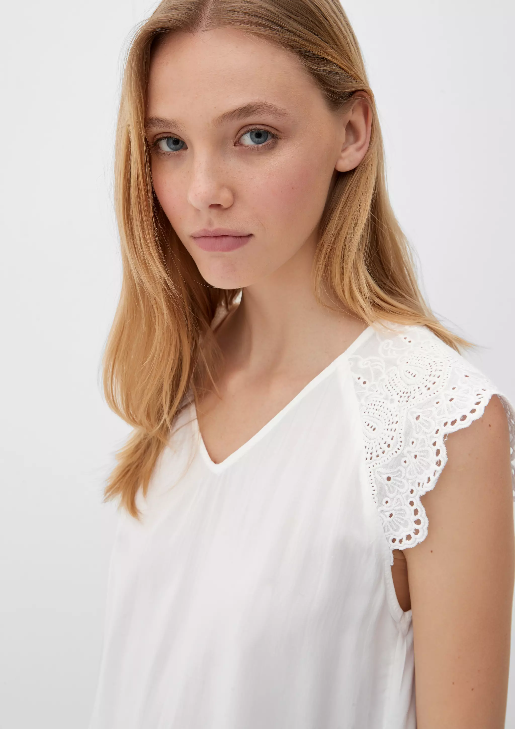 Entdecke sommerliche Leichtigkeit mit dieser ärmellosen V-Ausschnitt-Bluse. Die hochwertige Lochstickerei verleiht dir einen lässigen Casual-Look. Perfekt für entspannte Tage und coole Abende - dein neuer Liebling im Regular Fit.