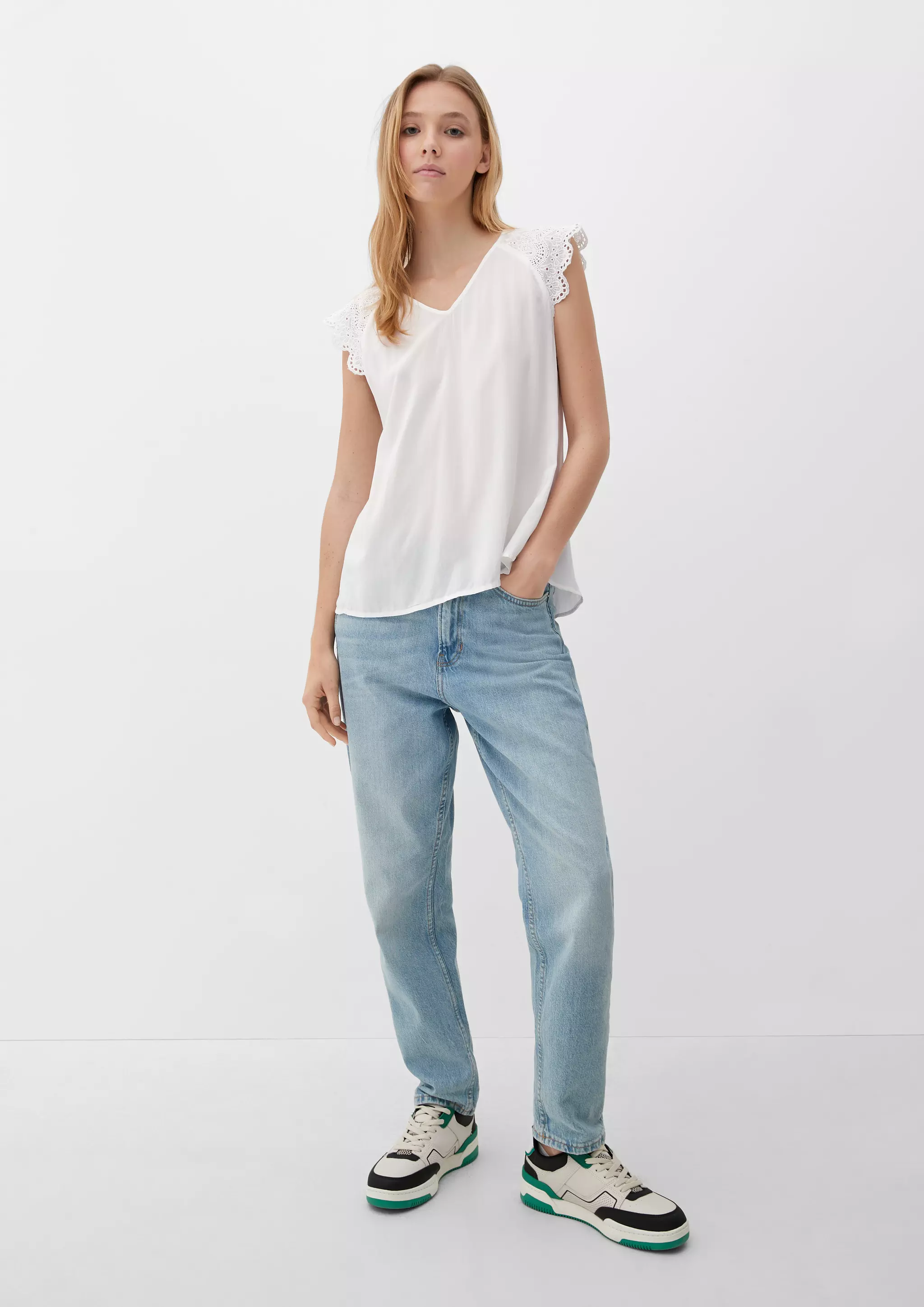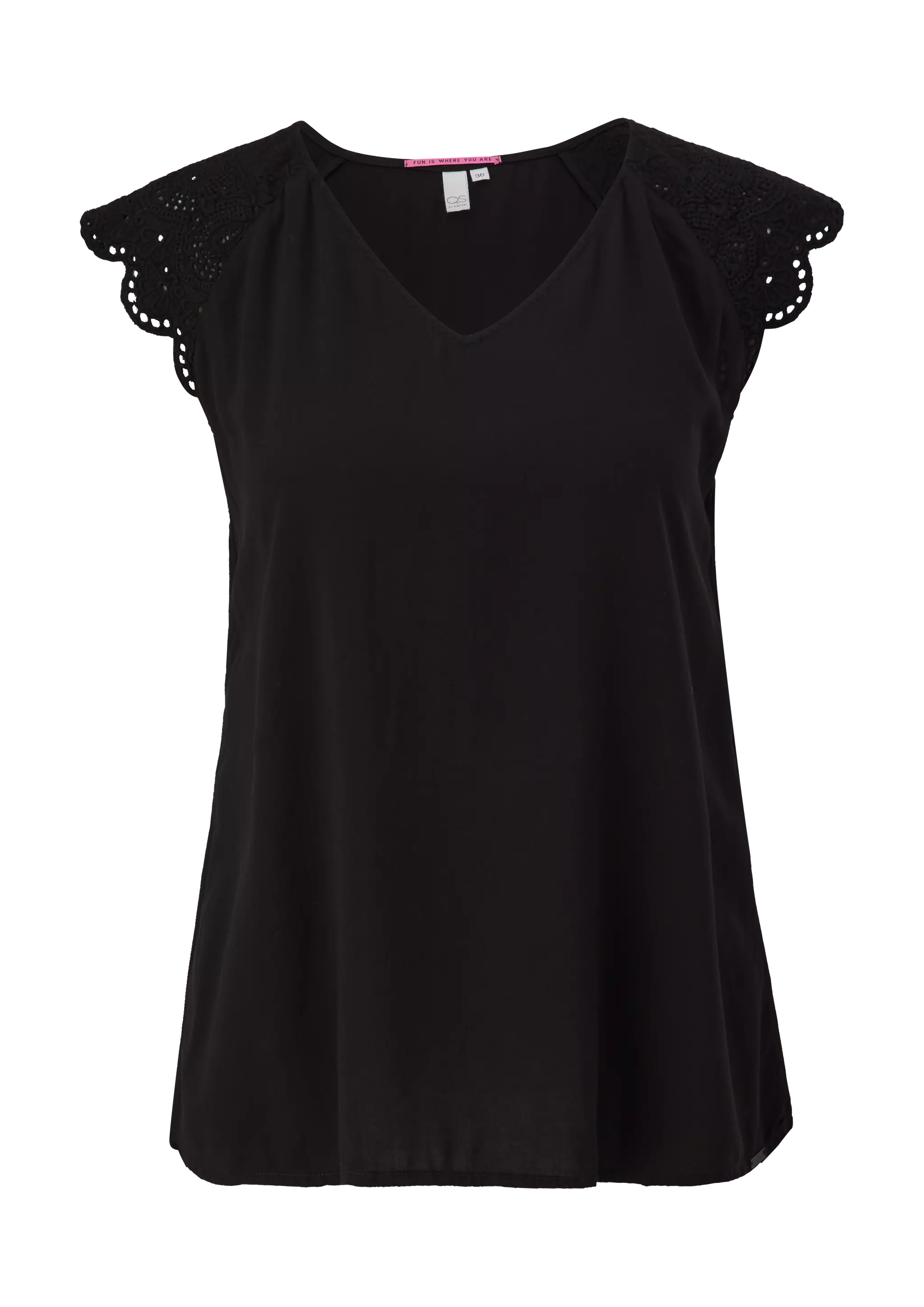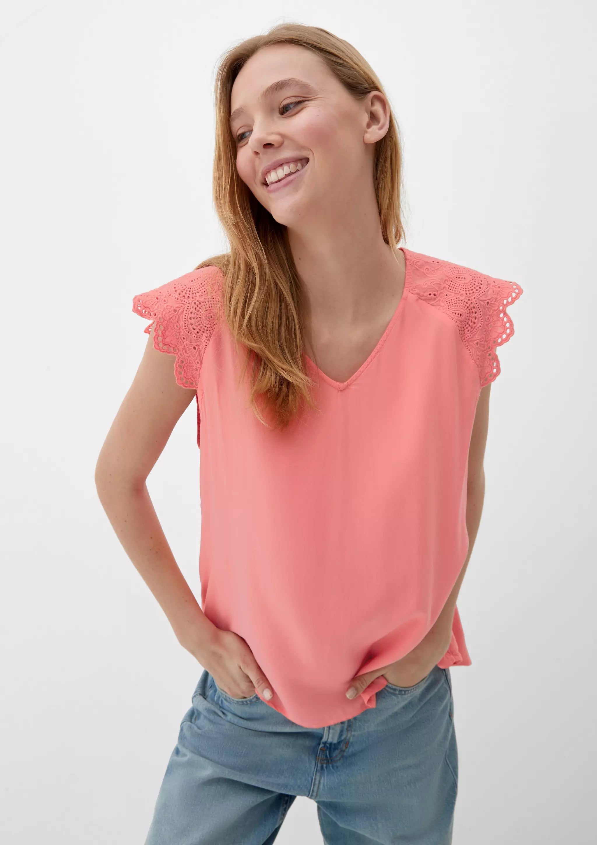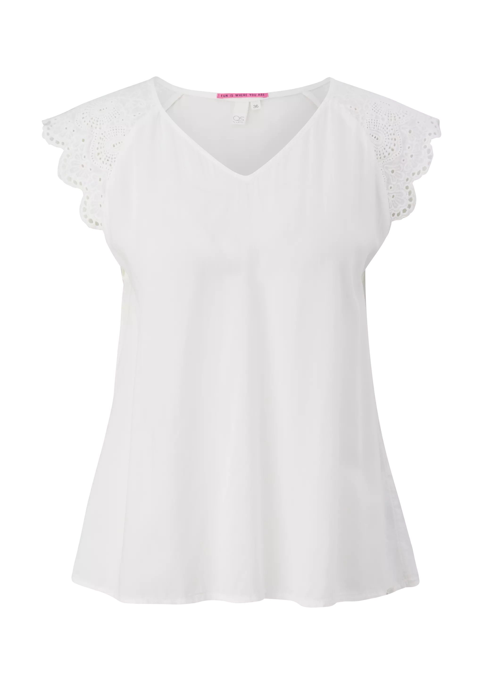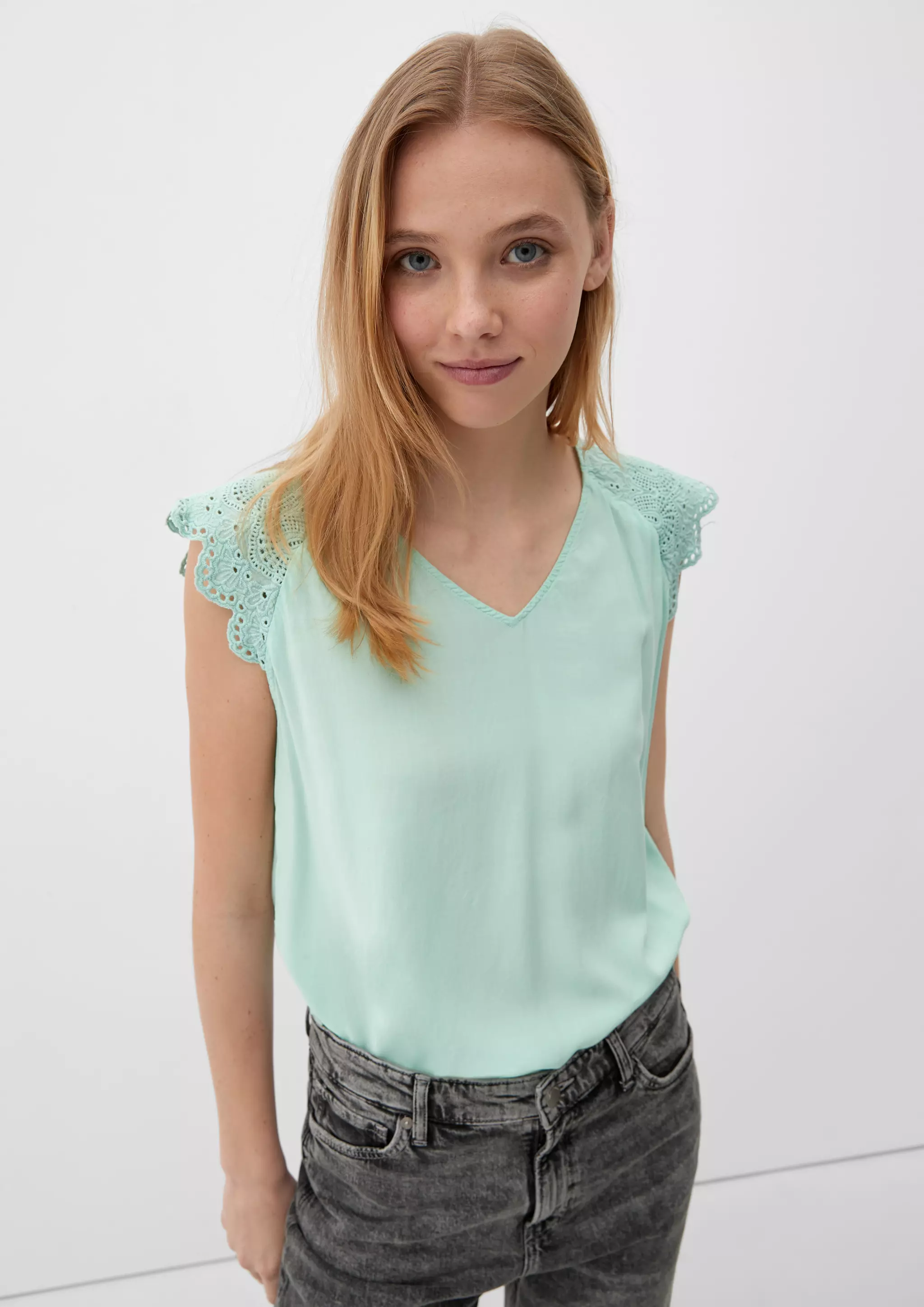 Entdecke sommerliche Leichtigkeit mit dieser ärmellosen V-Ausschnitt-Bluse. Die hochwertige Lochstickerei verleiht dir einen lässigen Casual-Look. Perfekt für entspannte Tage und coole Abende - dein neuer Liebling im Regular Fit.