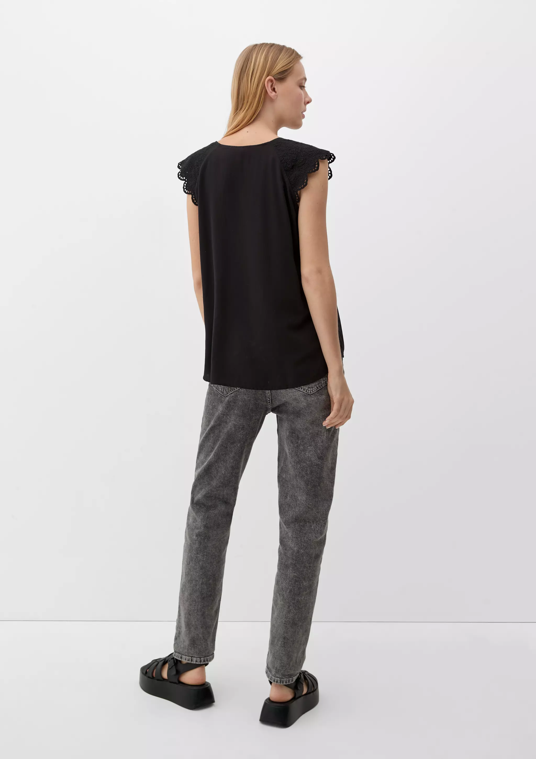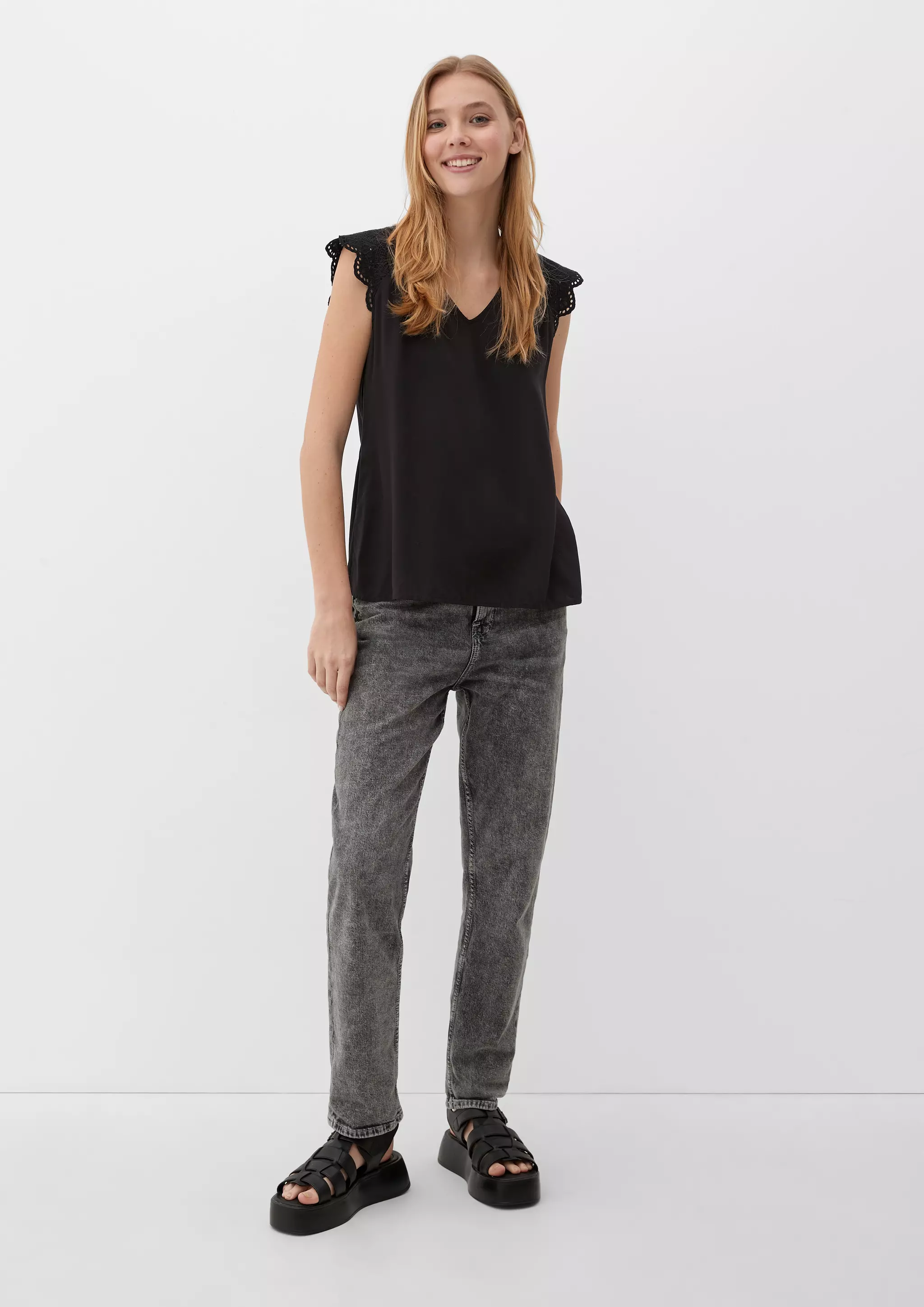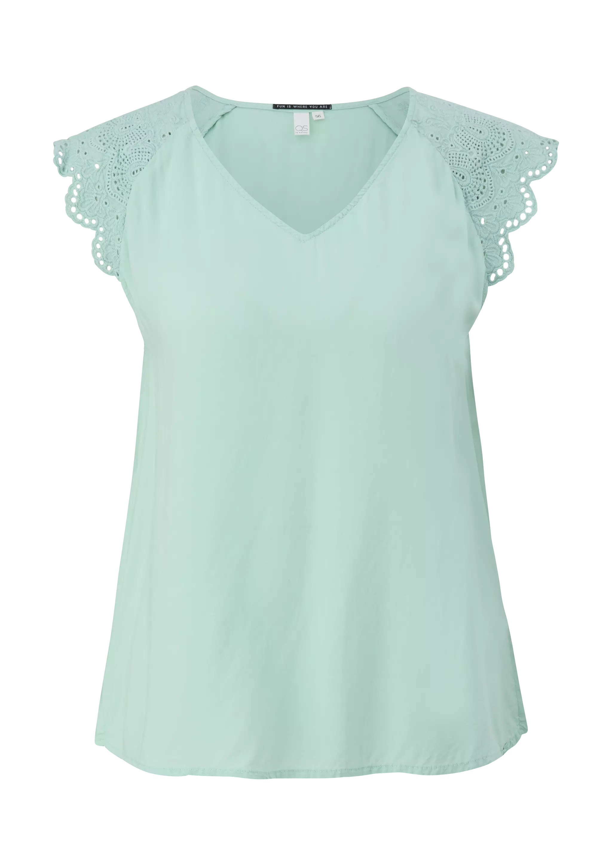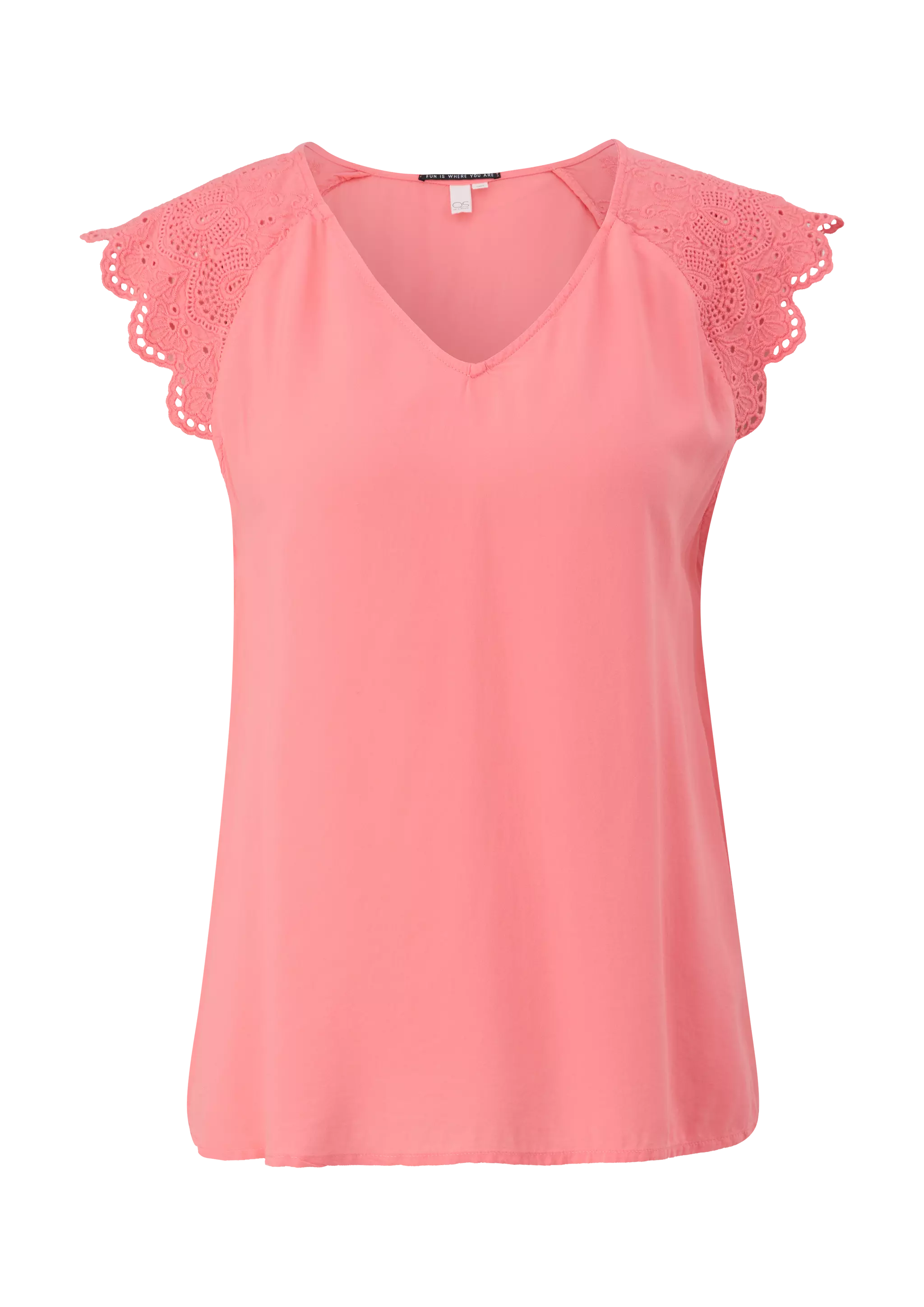 Entdecke sommerliche Leichtigkeit mit dieser ärmellosen V-Ausschnitt-Bluse. Die hochwertige Lochstickerei verleiht dir einen lässigen Casual-Look. Perfekt für entspannte Tage und coole Abende - dein neuer Liebling im Regular Fit.