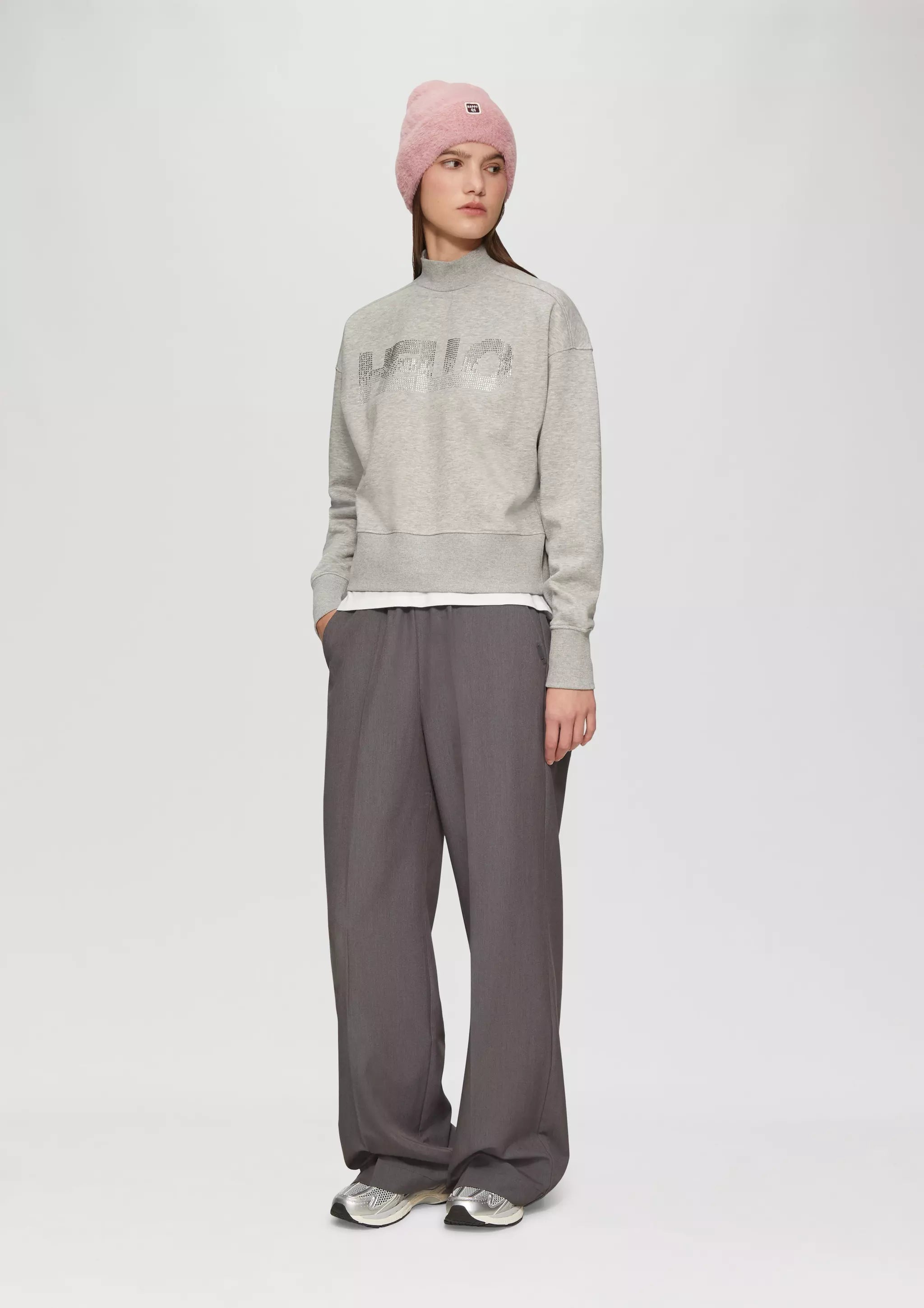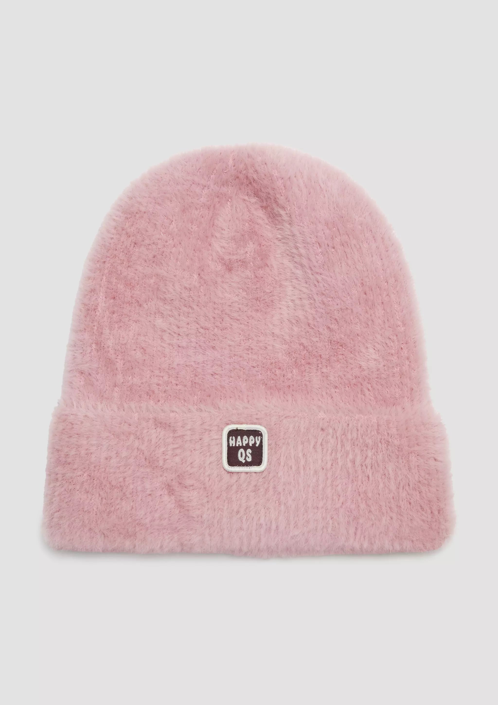 Flauschige Mütze mit Umschlag und Logopatch