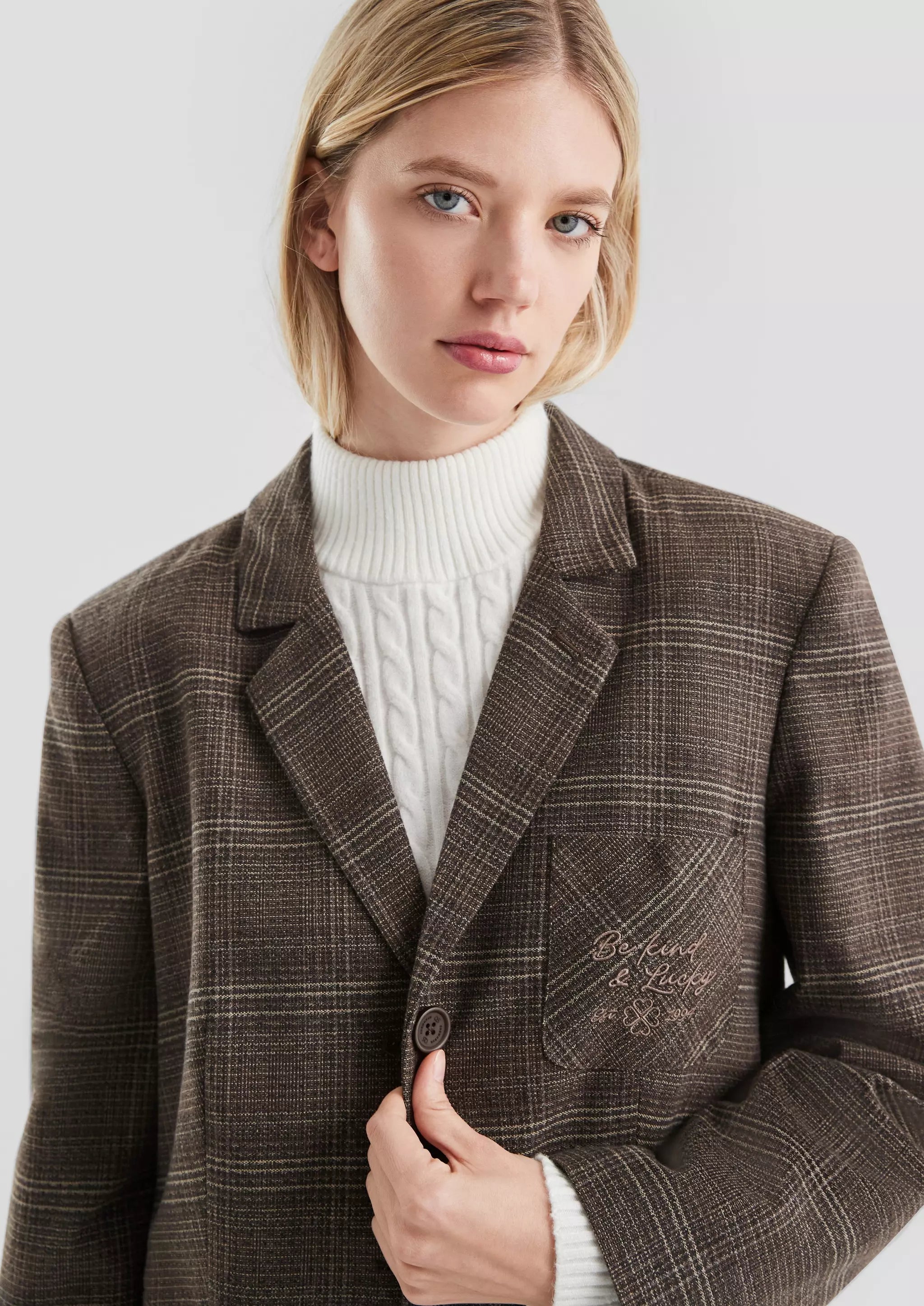 Der lässige Karoblazer mit cooler Stickerei bringt deinen Style auf das nächste Level. Die entspannte Regular-Fit-Passform und die praktischen Pattentaschen machen ihn zum perfekten Begleiter für deine Casual-Looks.