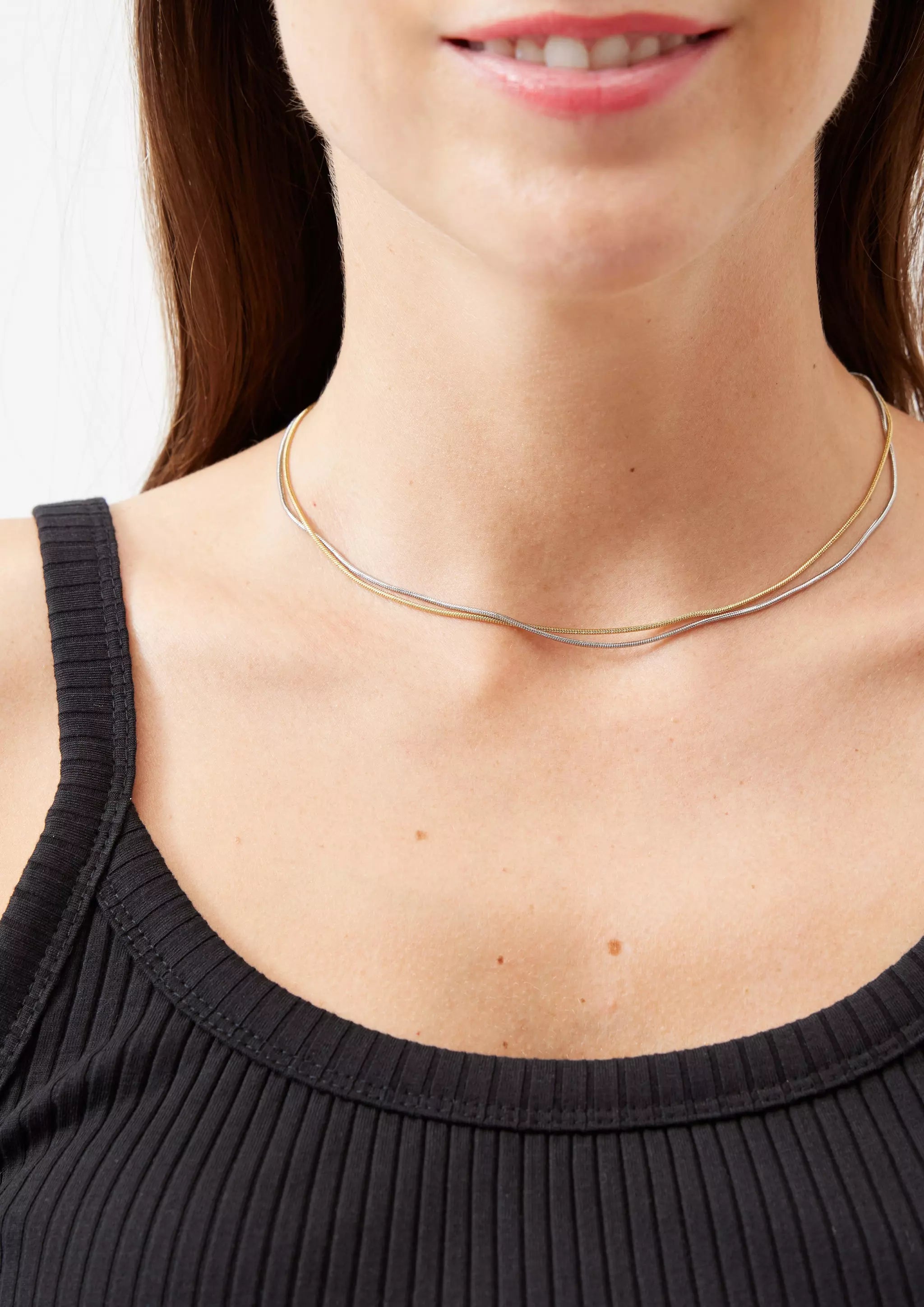 Diese Halskette in Bicolor-Optik bringt frischen Wind in deinen Look. Dank der speziellen Ionenplattierung besitzt das Schmuckstück eine besonders harte Oberfläche, die zuverlässig vor Korrosion schützt und für den modernen Farbton sorgt. Ob zum chilligen Café-Date oder zur nächsten Party – der Mix aus zwei Farbtönen macht jedes Outfit zum Hingucker. Kombiniere sie lässig zu deinem Lieblingsstyle und zeig, was in dir steckt. Dein neues Must-have für entspannte und besondere Momente.