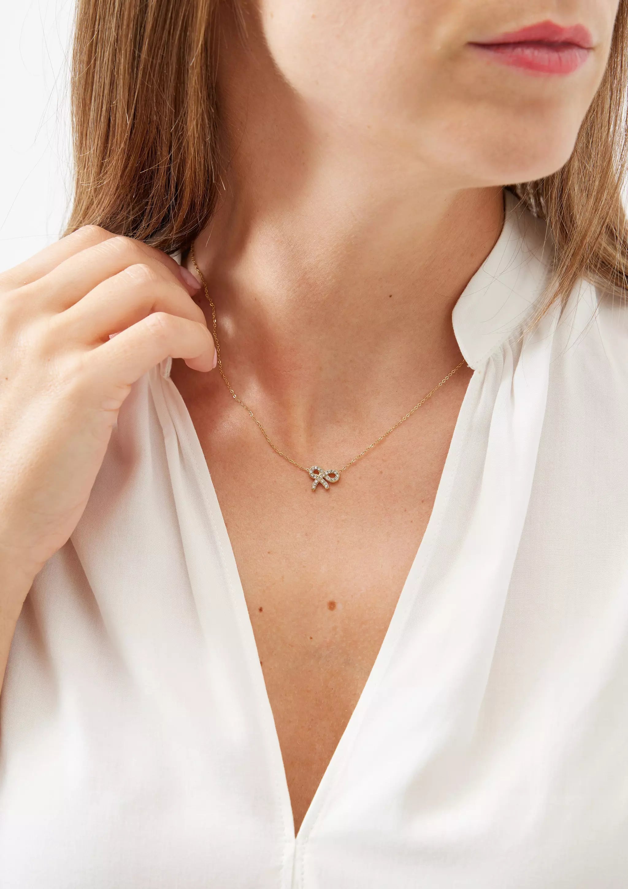 Diese filigrane Ankerkette wird mit ihrem charmanten Schleifen-Detail schnell zu deinem neuen Lieblingsschmuck. Die funkelnden Schmucksteine setzen coole Akzente und machen den Look perfekt – egal ob im Alltag oder bei besonderen Momenten. Die spezielle Ionenplattierung verleiht dem Schmuckstück eine besonders harte Oberfläche, schützt zuverlässig vor Korrosion und sorgt für den goldenen Farbton. Ein zeitloser Begleiter, der zu jedem Style passt und dich strahlen lässt.