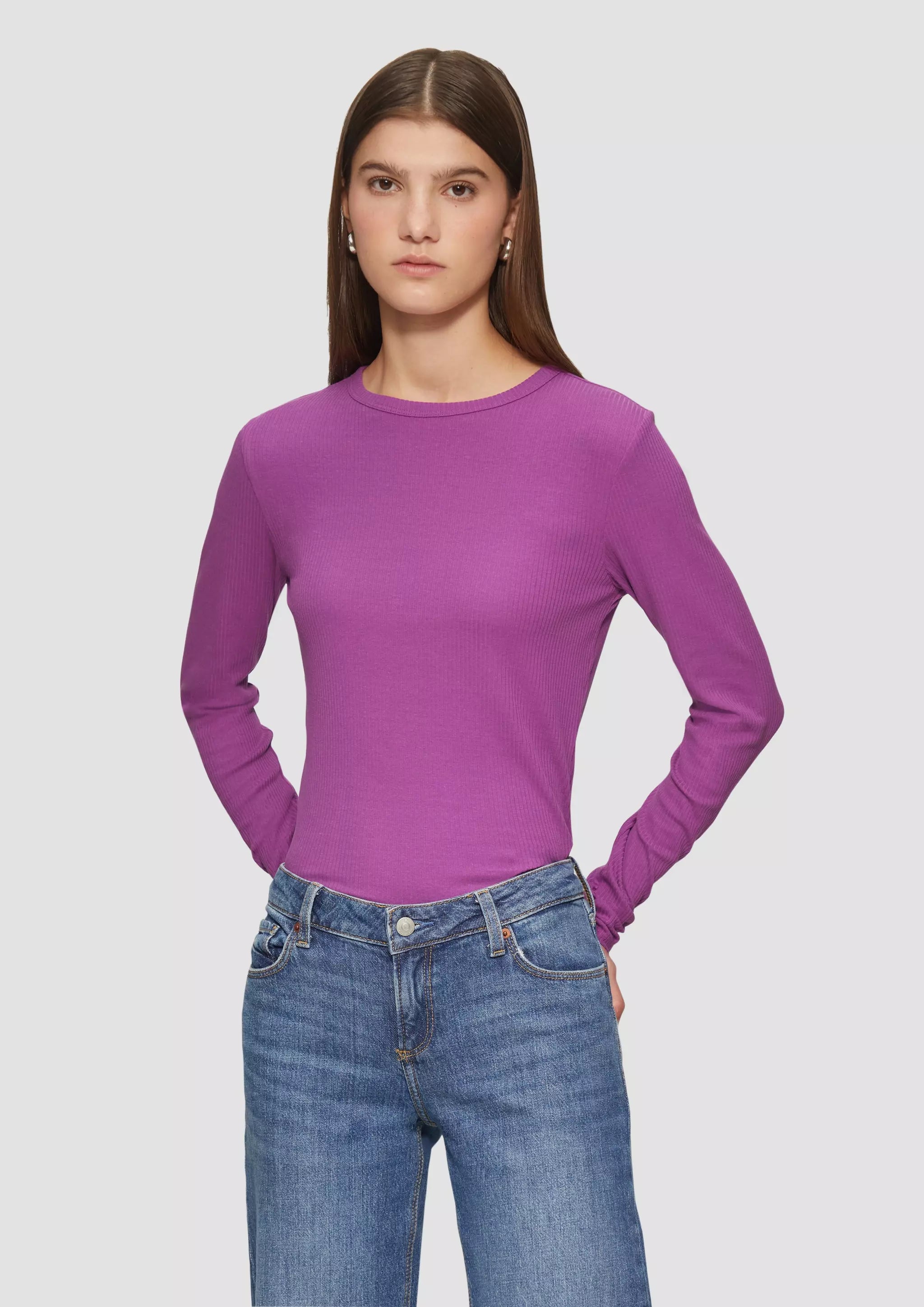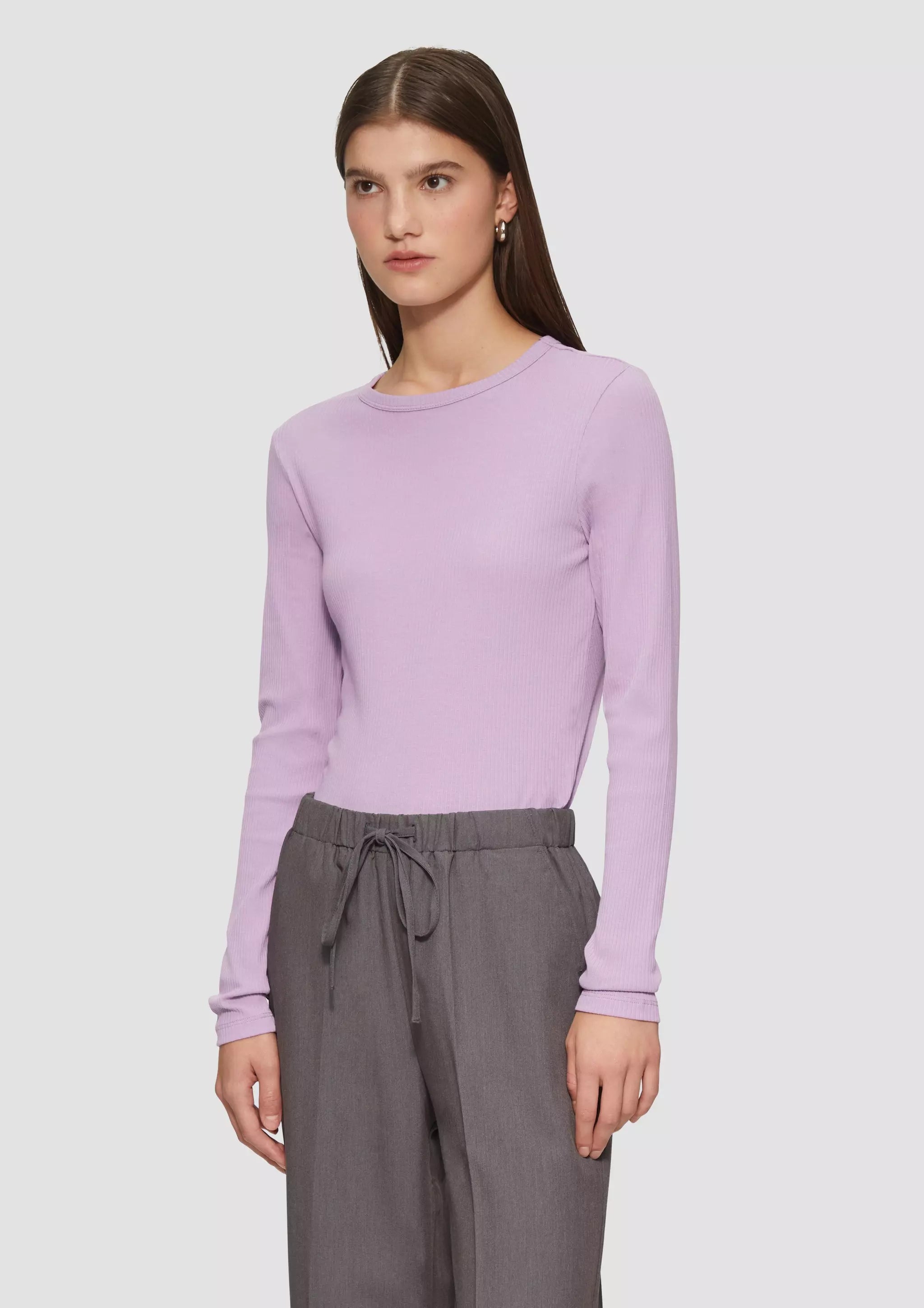 Schmal geschnittenes Rippshirt mit Rundhalsausschnitt