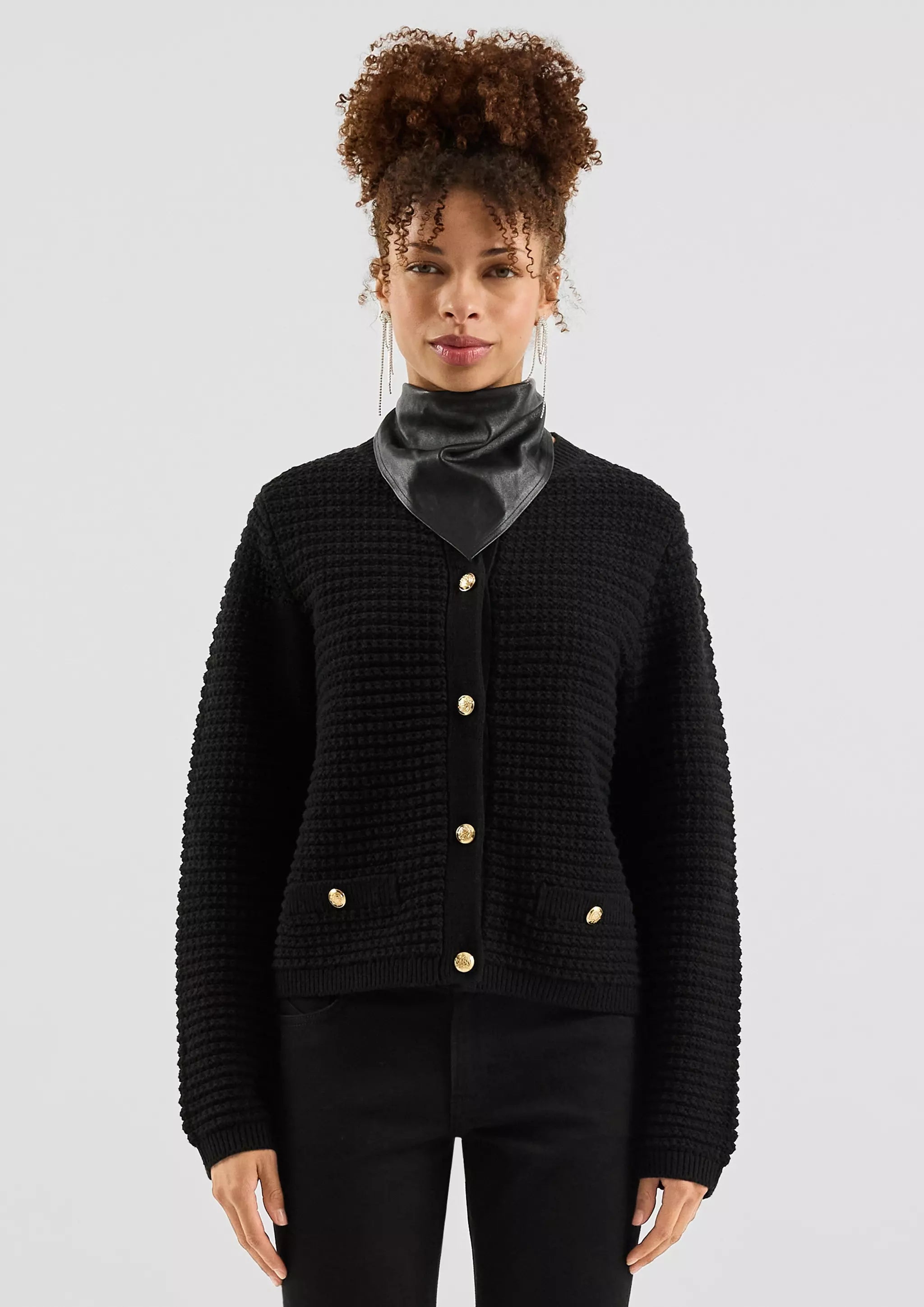 Deine neue Strickjacke im Regular Fit überzeugt mit coolem Strukturmuster und lässiger Knopfleiste. Der Crew Neck Ausschnitt und die durchgehenden Knöpfe machen den Cardigan zum perfekten Begleiter für entspannte Tage und spontane Treffen. Kombiniere den Baumwollmix nach Lust und Laune – dieser Style passt einfach immer.