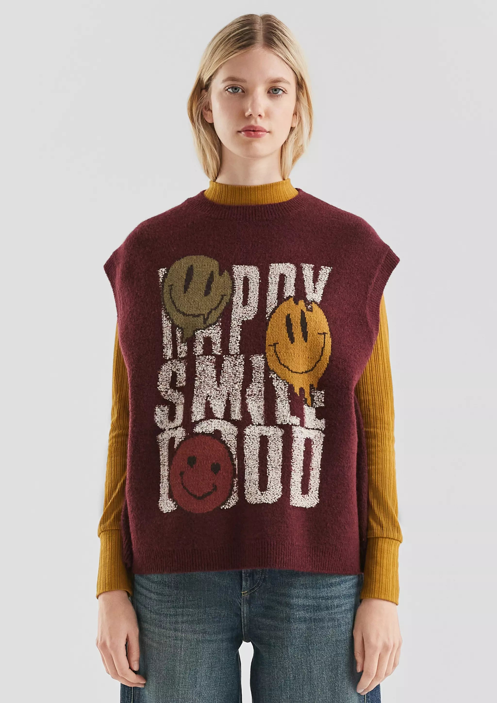 Dein favorite Layering-Piece für entspannte Tage: Der ärmellose Pullunder im Loose Fit überzeugt mit coolem Jacquardmuster und lässigem Rundhalsausschnitt. Der Polyester-Mix macht ihn zum perfekten Layering-Piece für deinen individuellen Look.