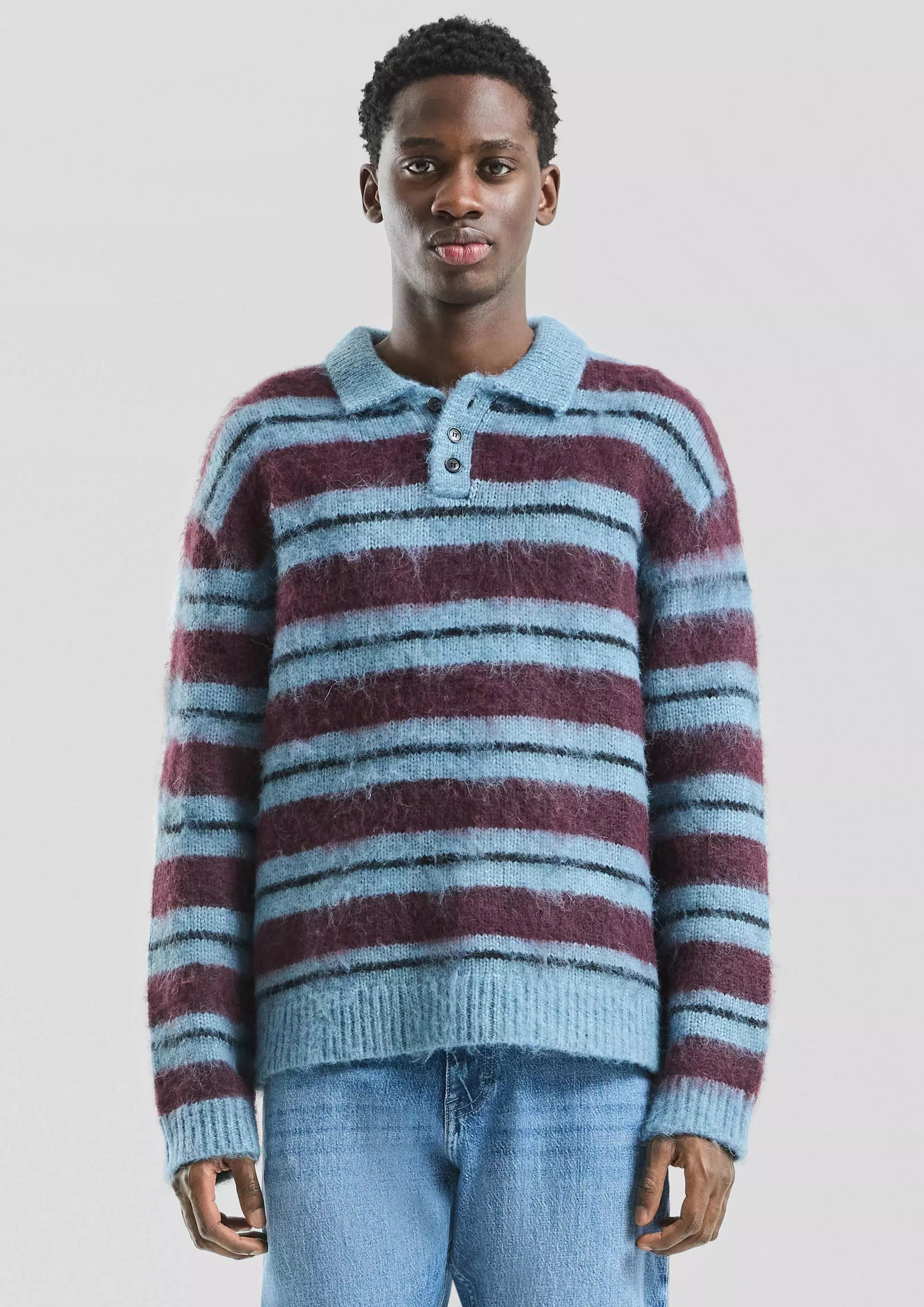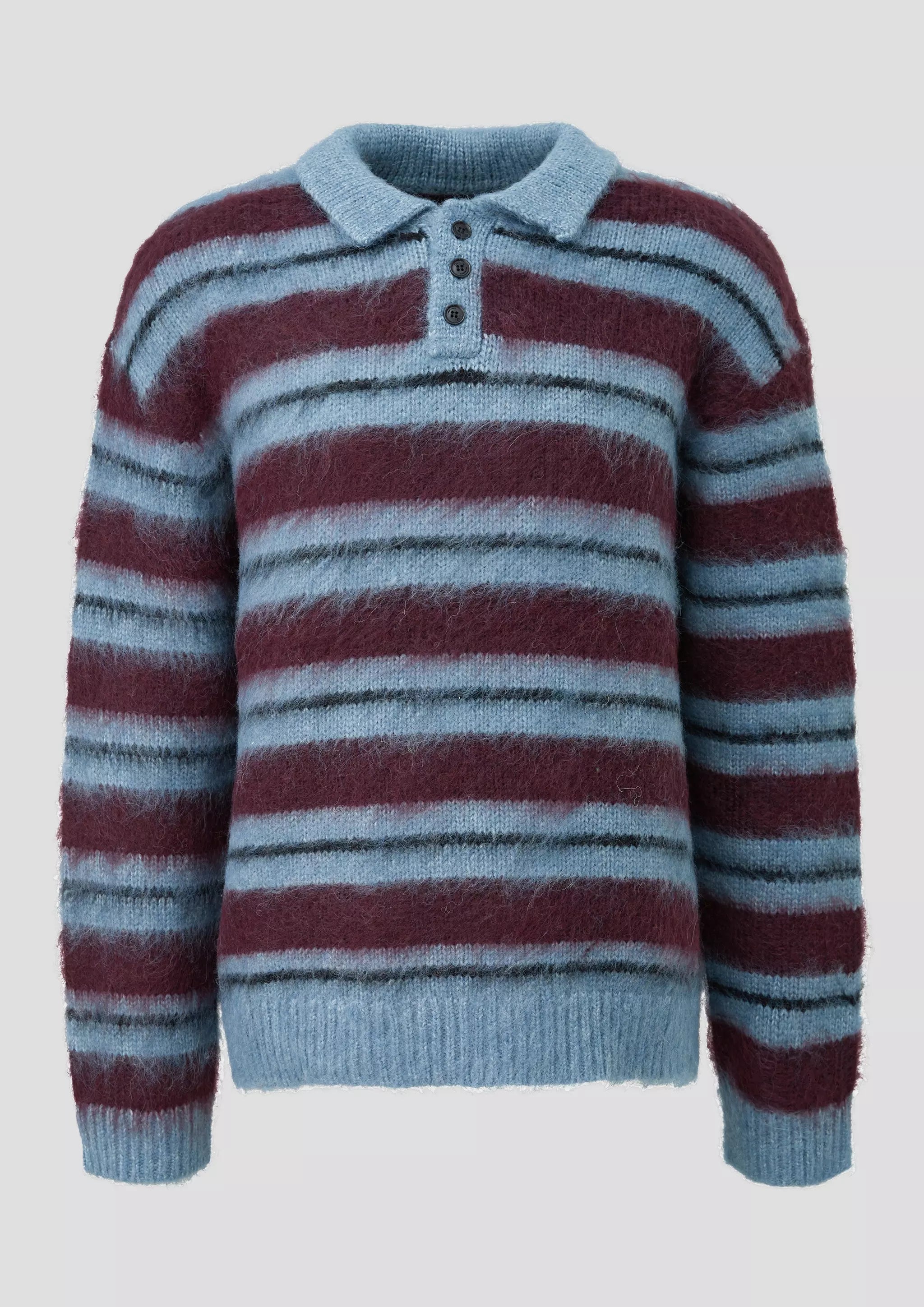 Gestreifter Strickpullover mit Polokragen und Flauschgarn