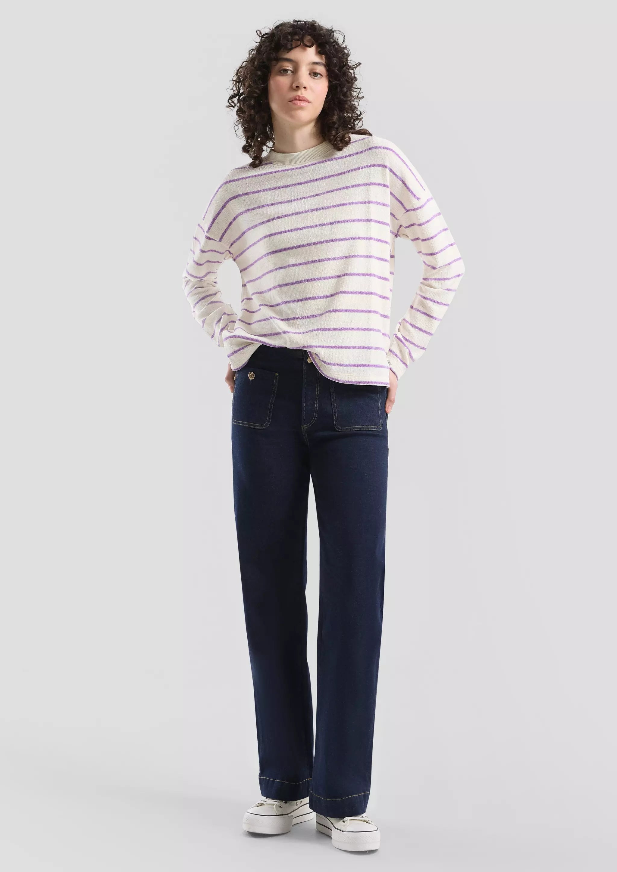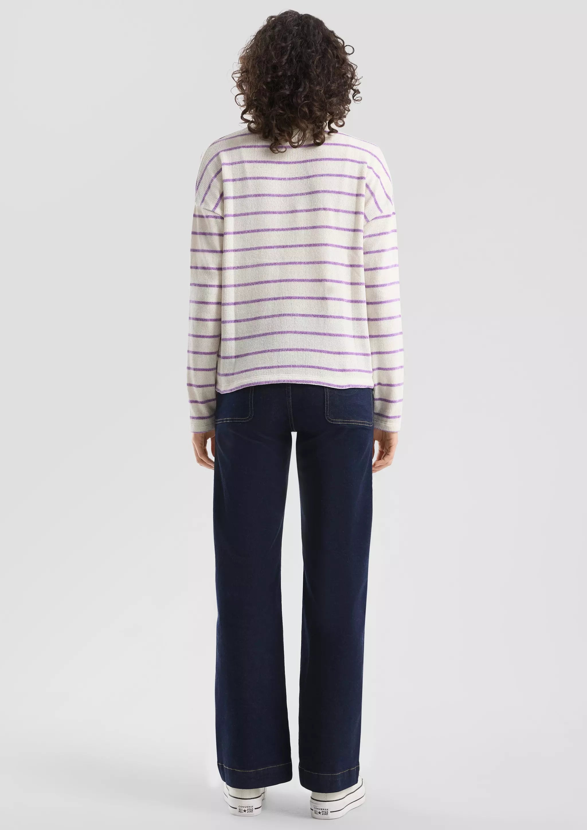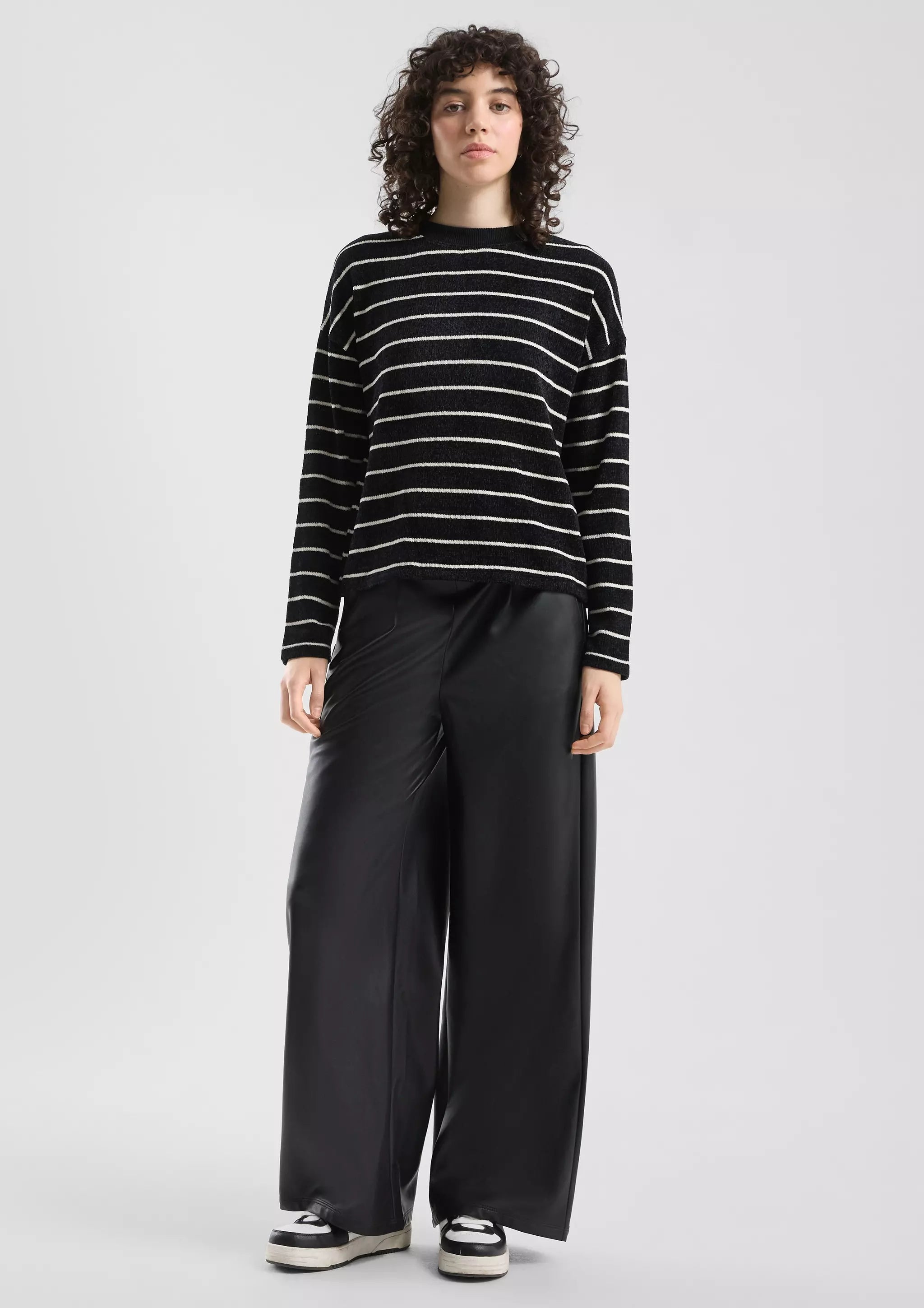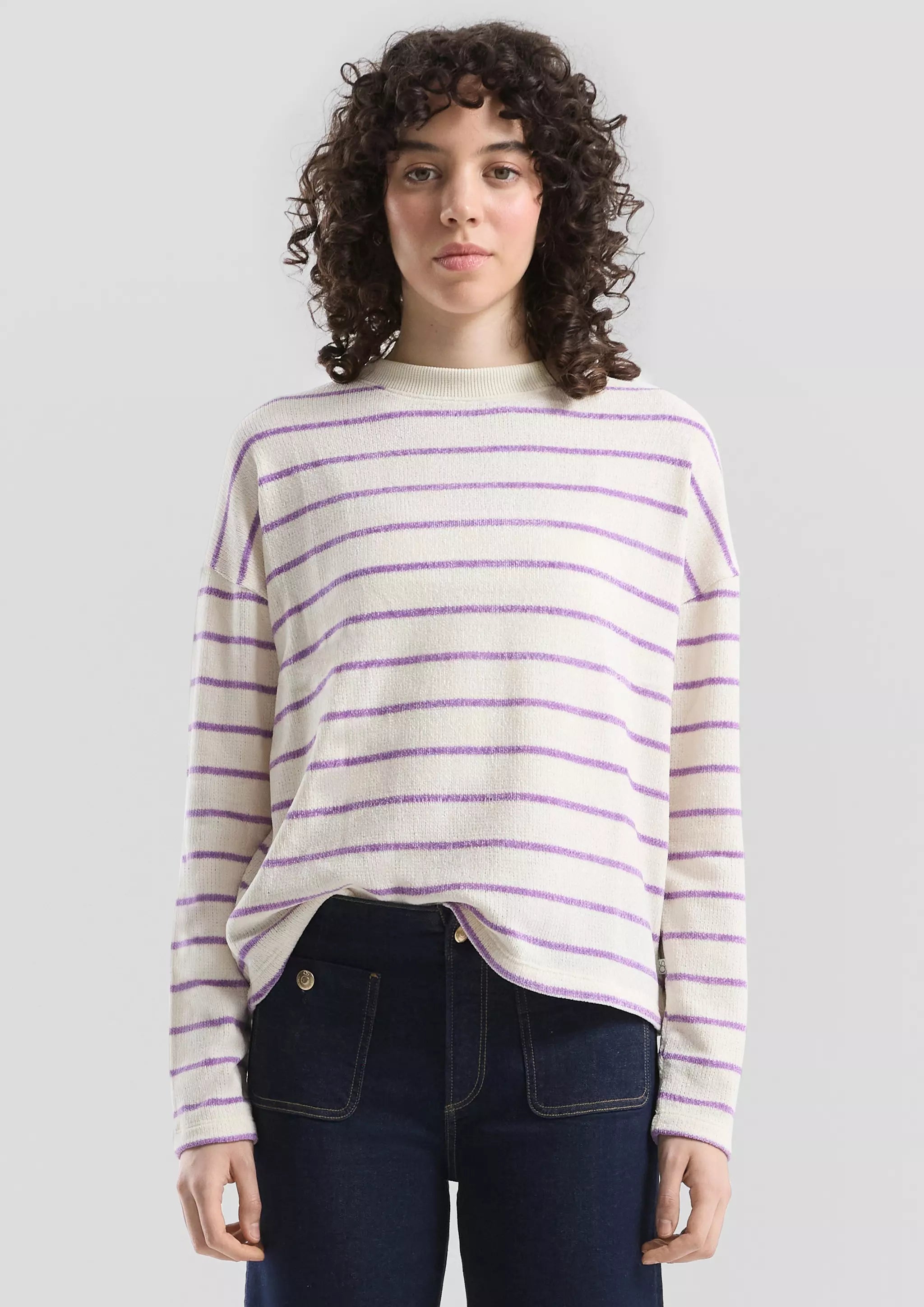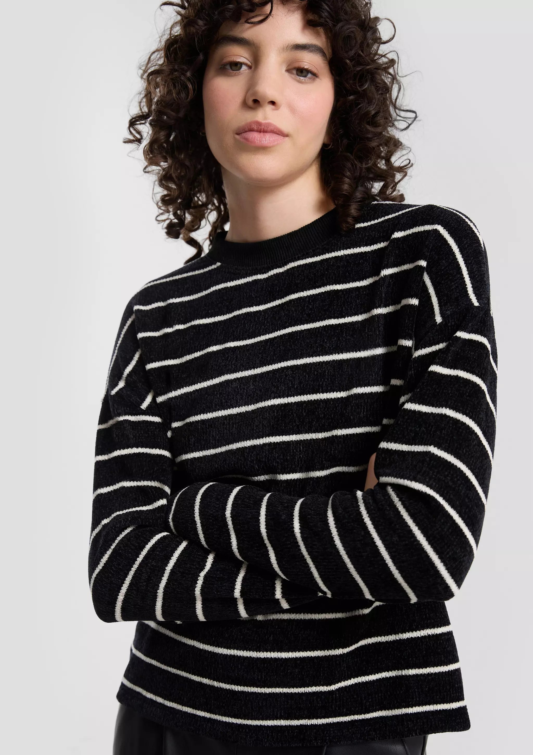 Pullover aus weichem Chenille Garn mit Streifenmuster