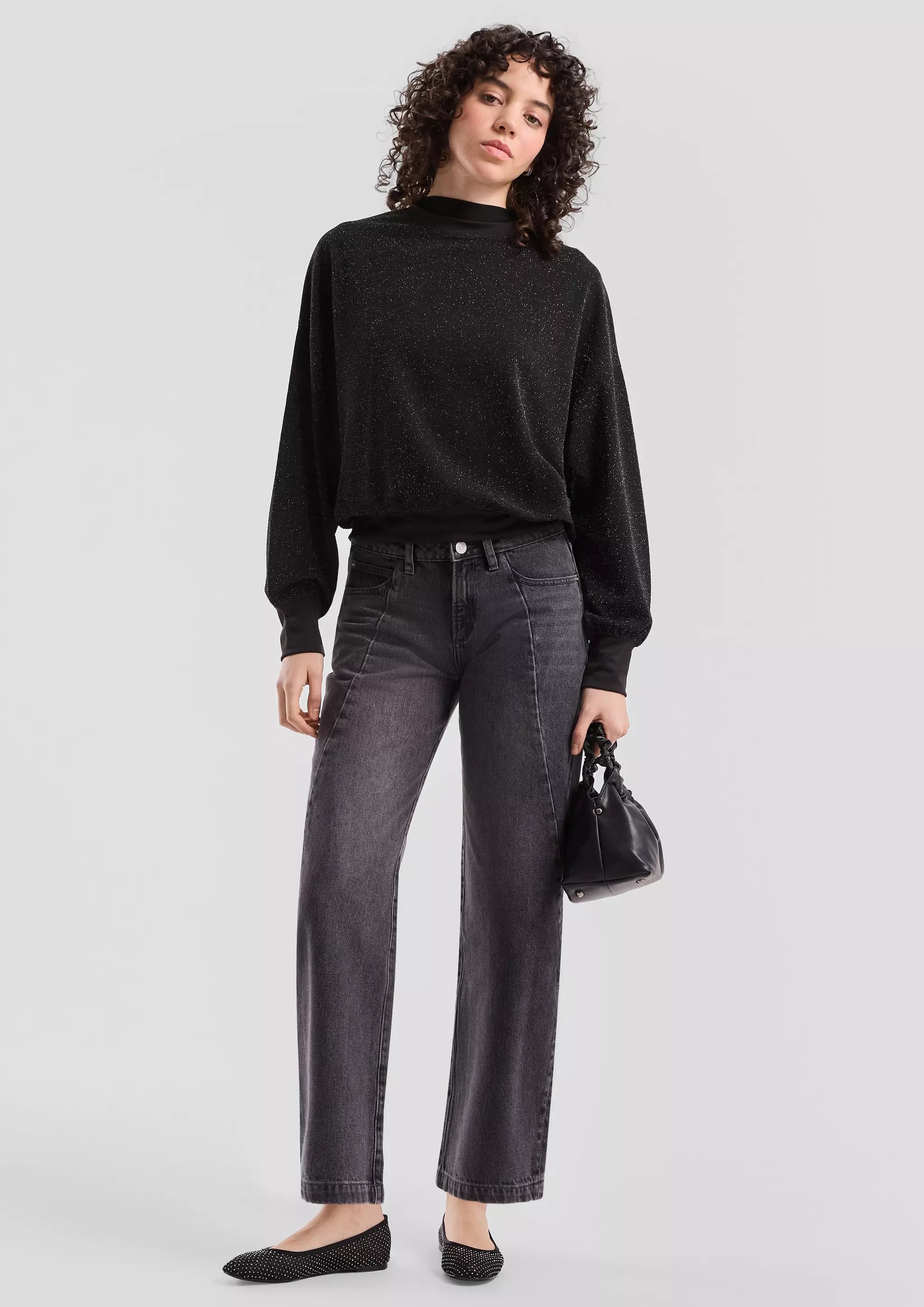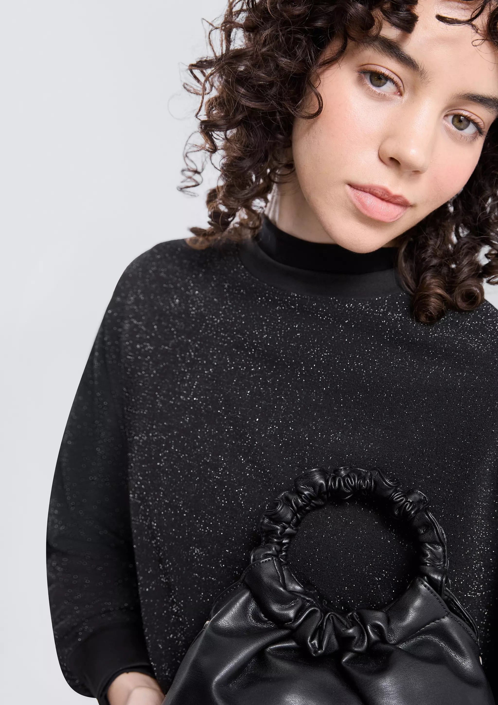 Dein neues Lieblingsstück für entspannte Tage und coole Partynächte: Das Glitzer-Sweatshirt mit lässigem Relaxed Fit und überschnittenen Schultern. Der elastische Interlockjersey macht es zum perfekten Begleiter für deinen Style.