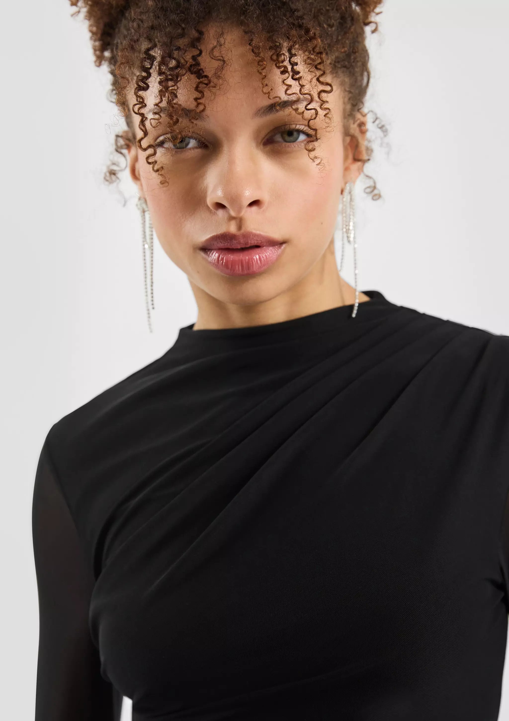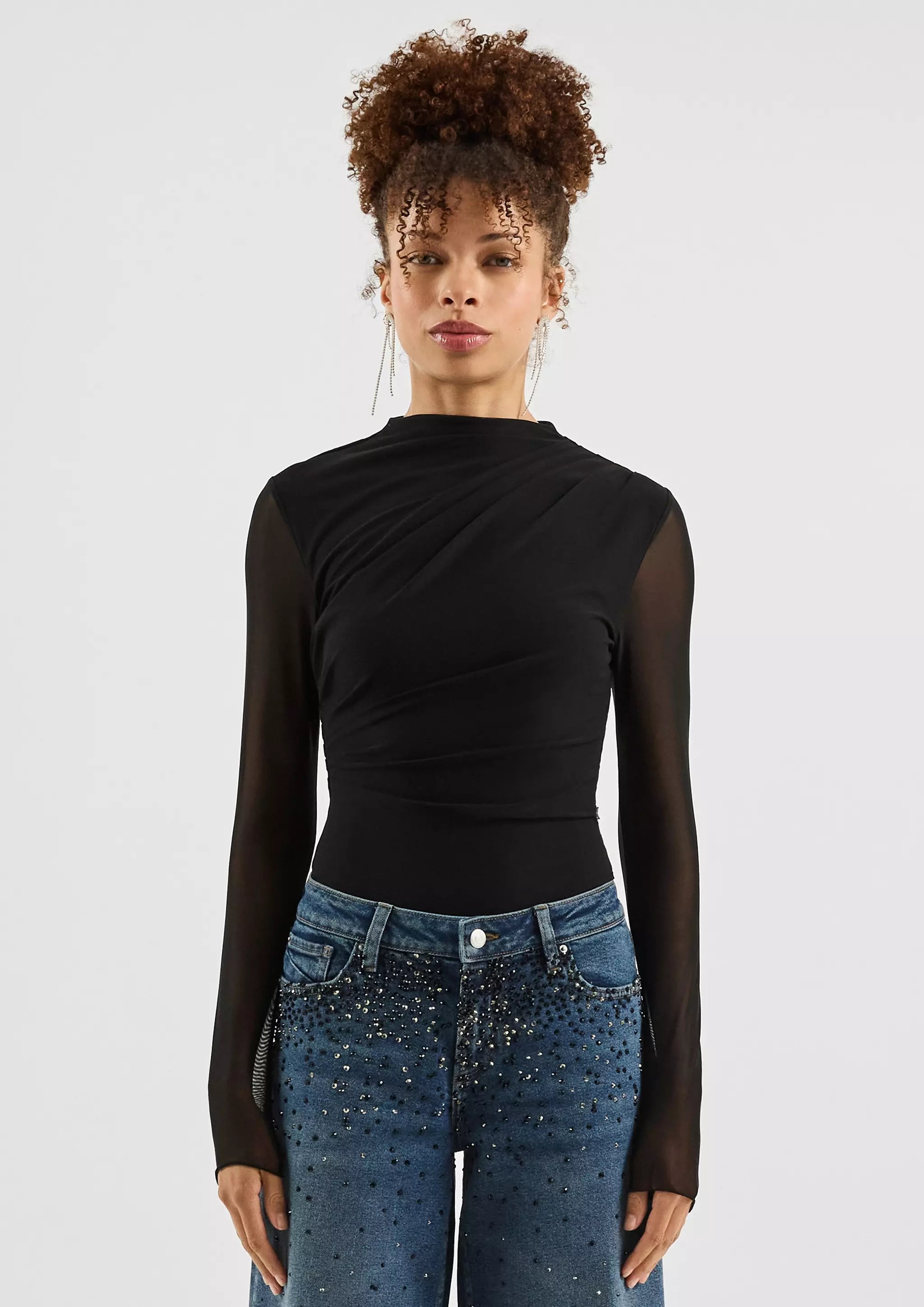Dein neuer Style-Begleiter: Dieser gefütterte Mesh-Body mit raffinierten Tüll-Ärmeln vereint Komfort und Coolness. Die transparenten Details und die schmale Passform machen ihn zum perfekten Basic für deine angesagtesten Outfits.