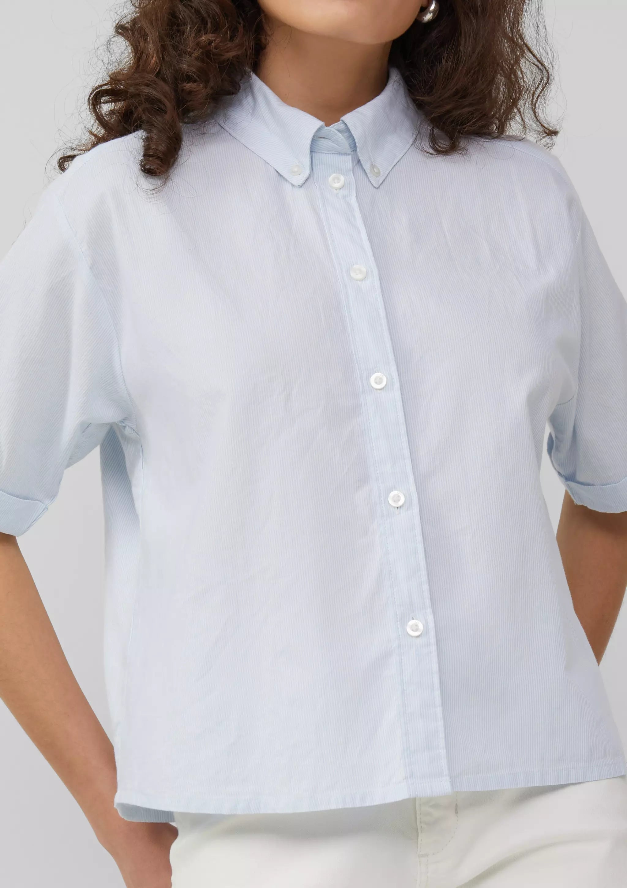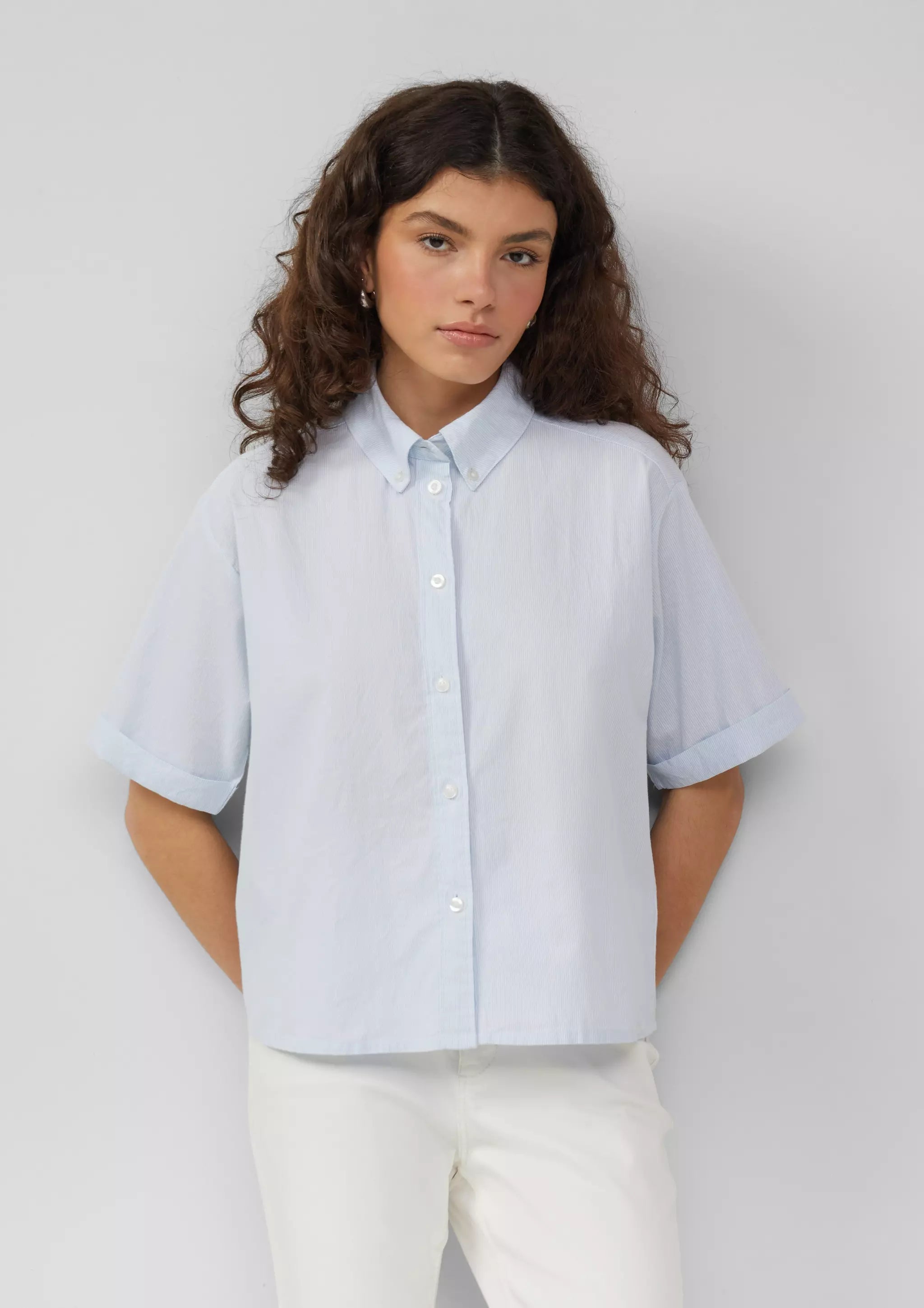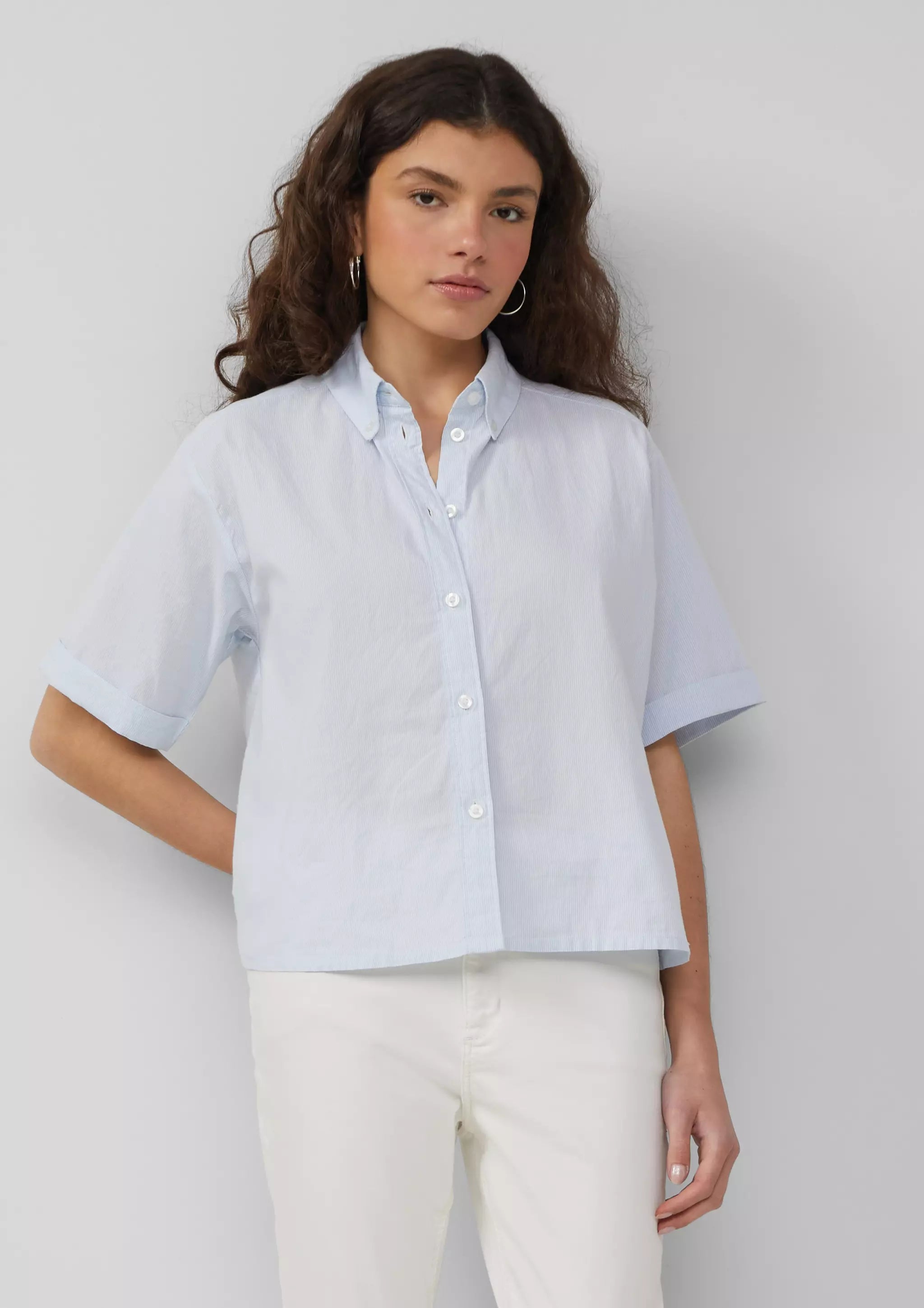 Baumwoll-Bluse mit feinen Streifen | QS x Debi Flügge