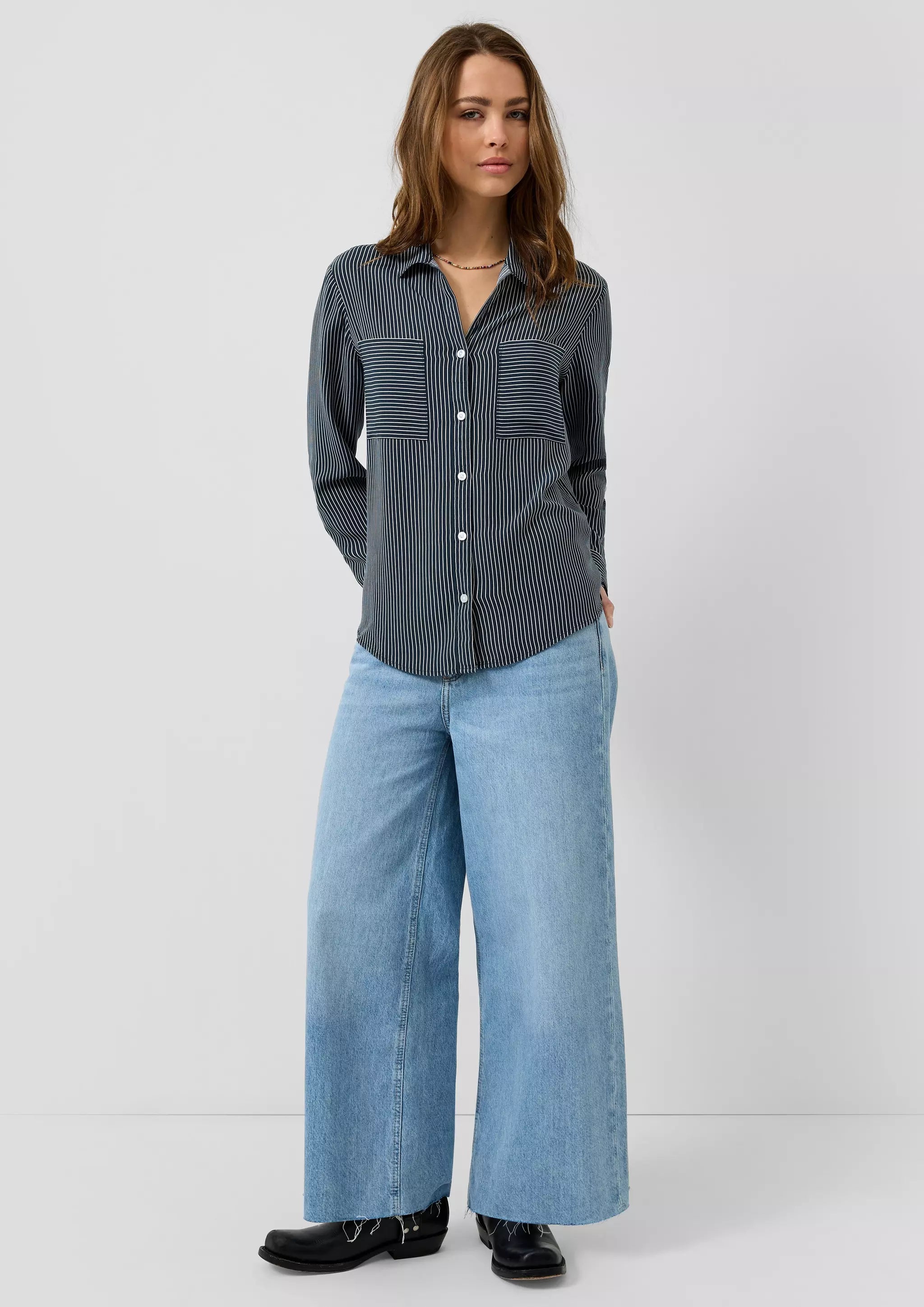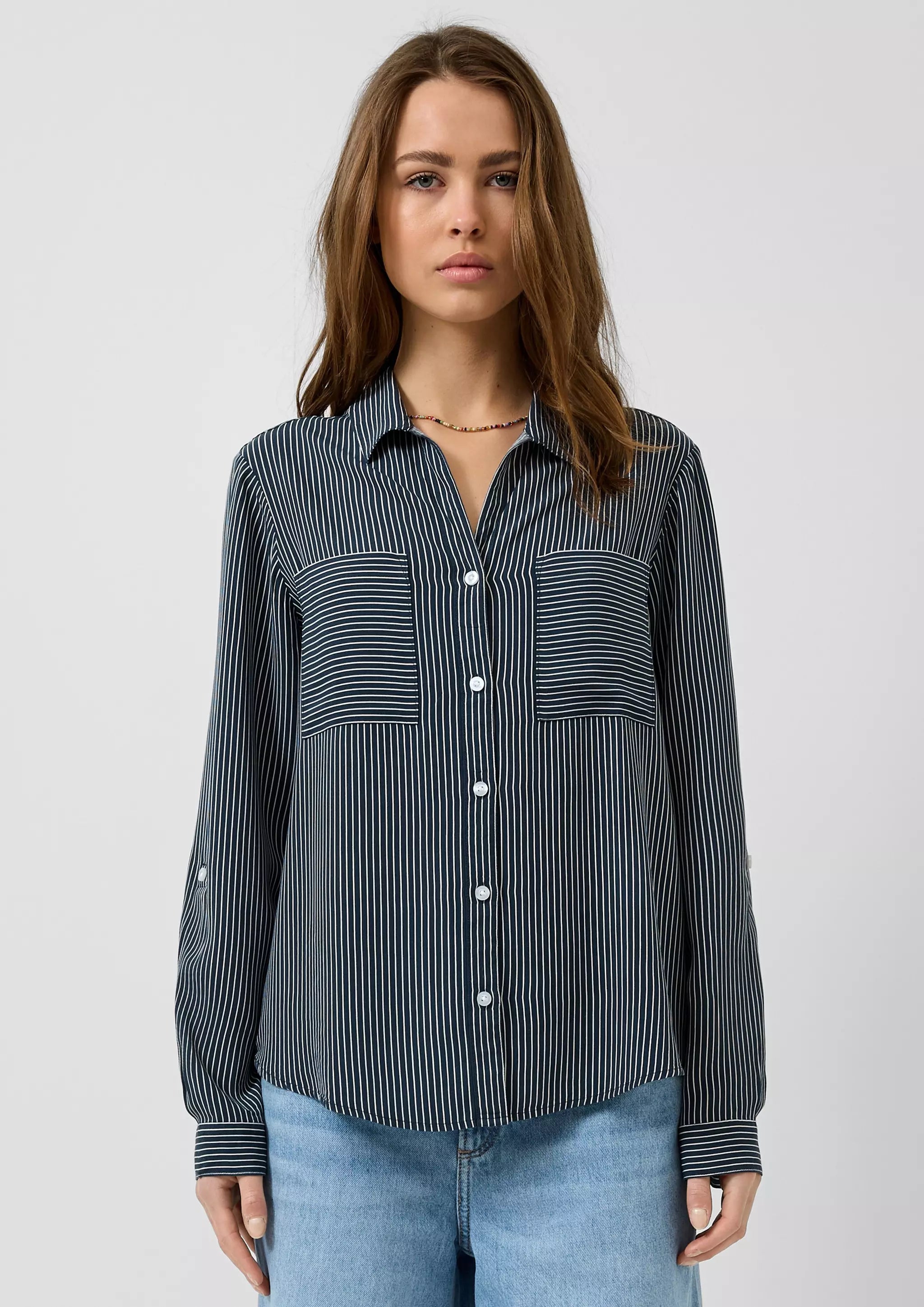 Viskosebluse mit Krempelärmel