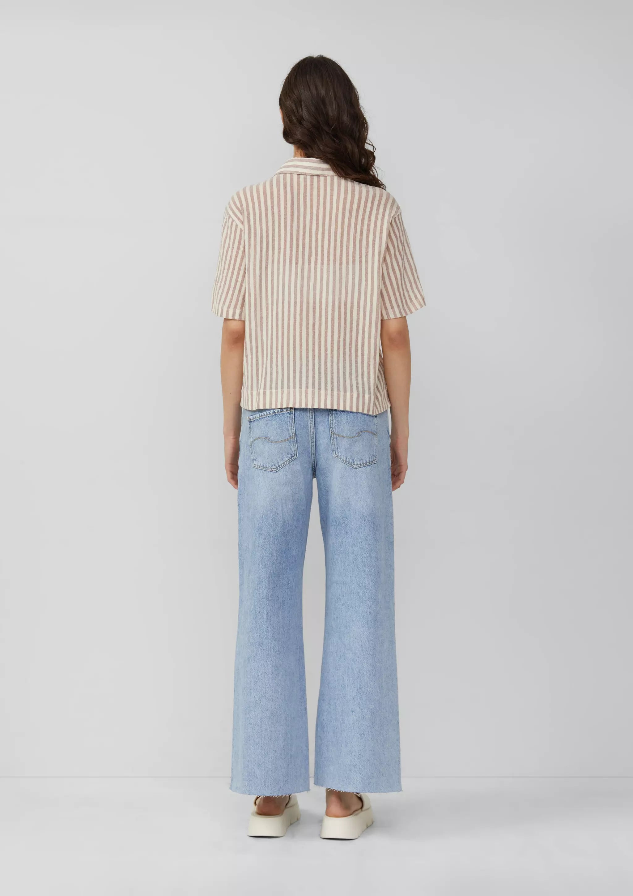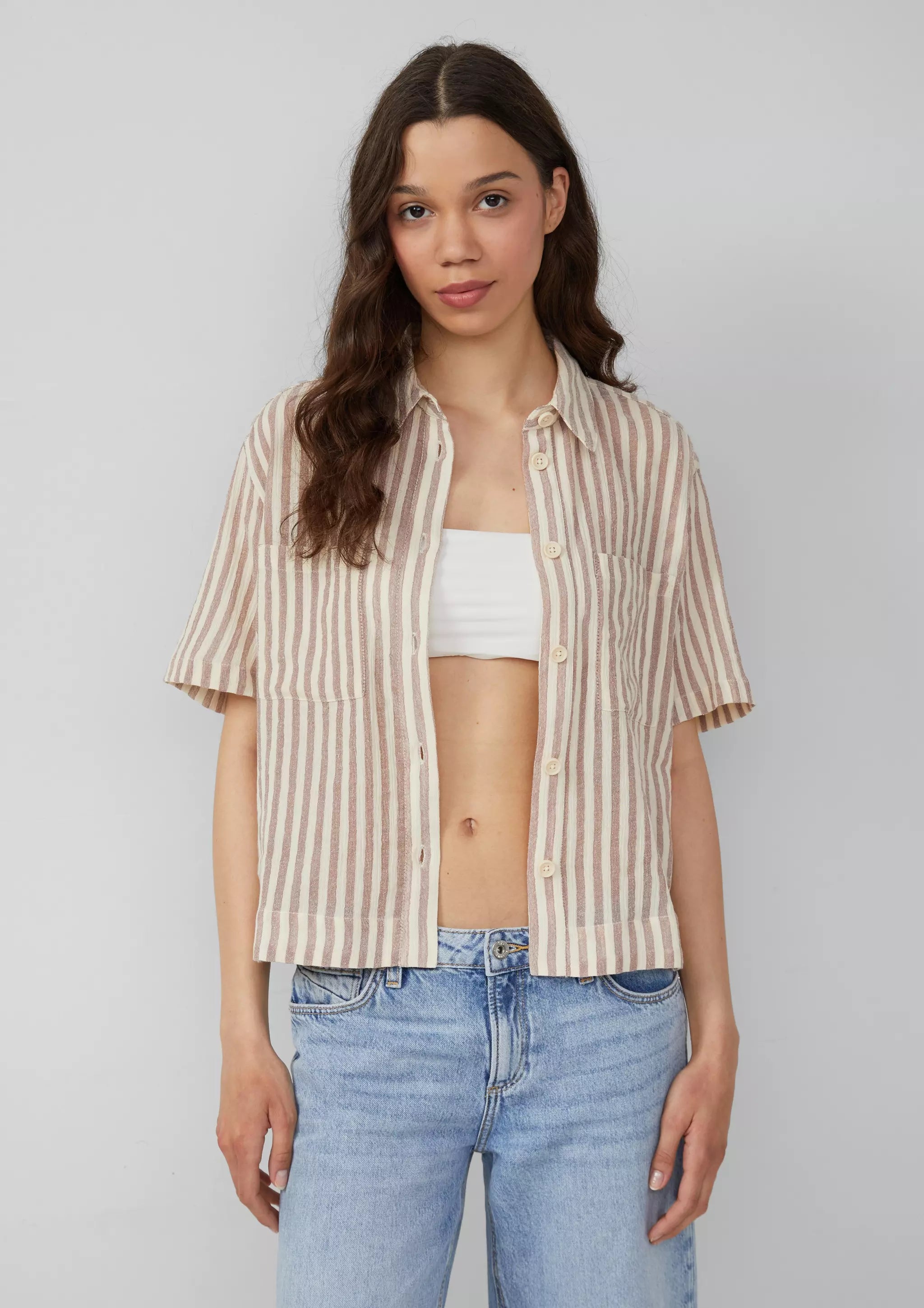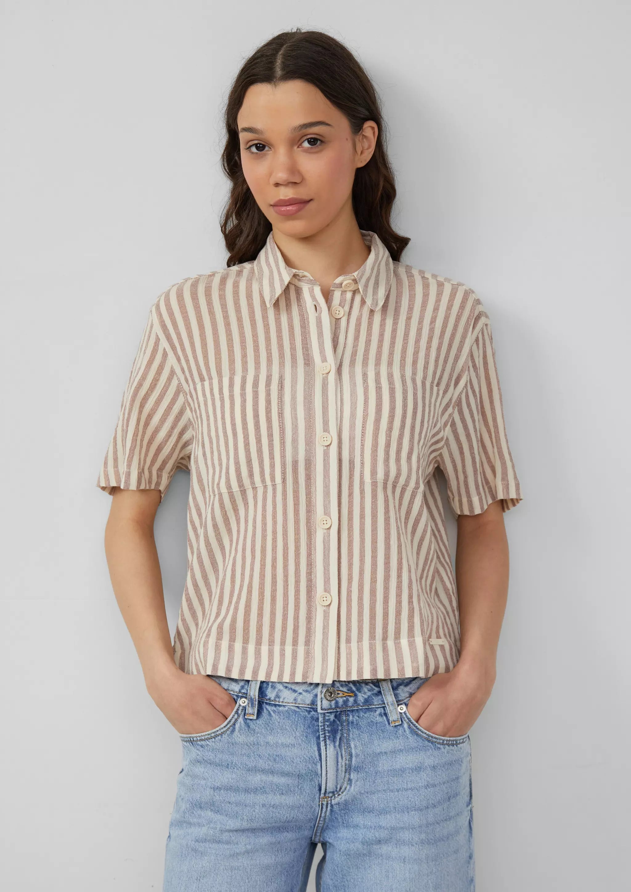 Gestreift und lässig: Diese Baumwollbluse mit aufgesetzten Taschen ist dein neuer Liebling! Ob beim Kaffee mit Freunden oder beim Stadtbummel – du fühlst dich immer gut angezogen. Perfekt für deinen entspannten Alltag!