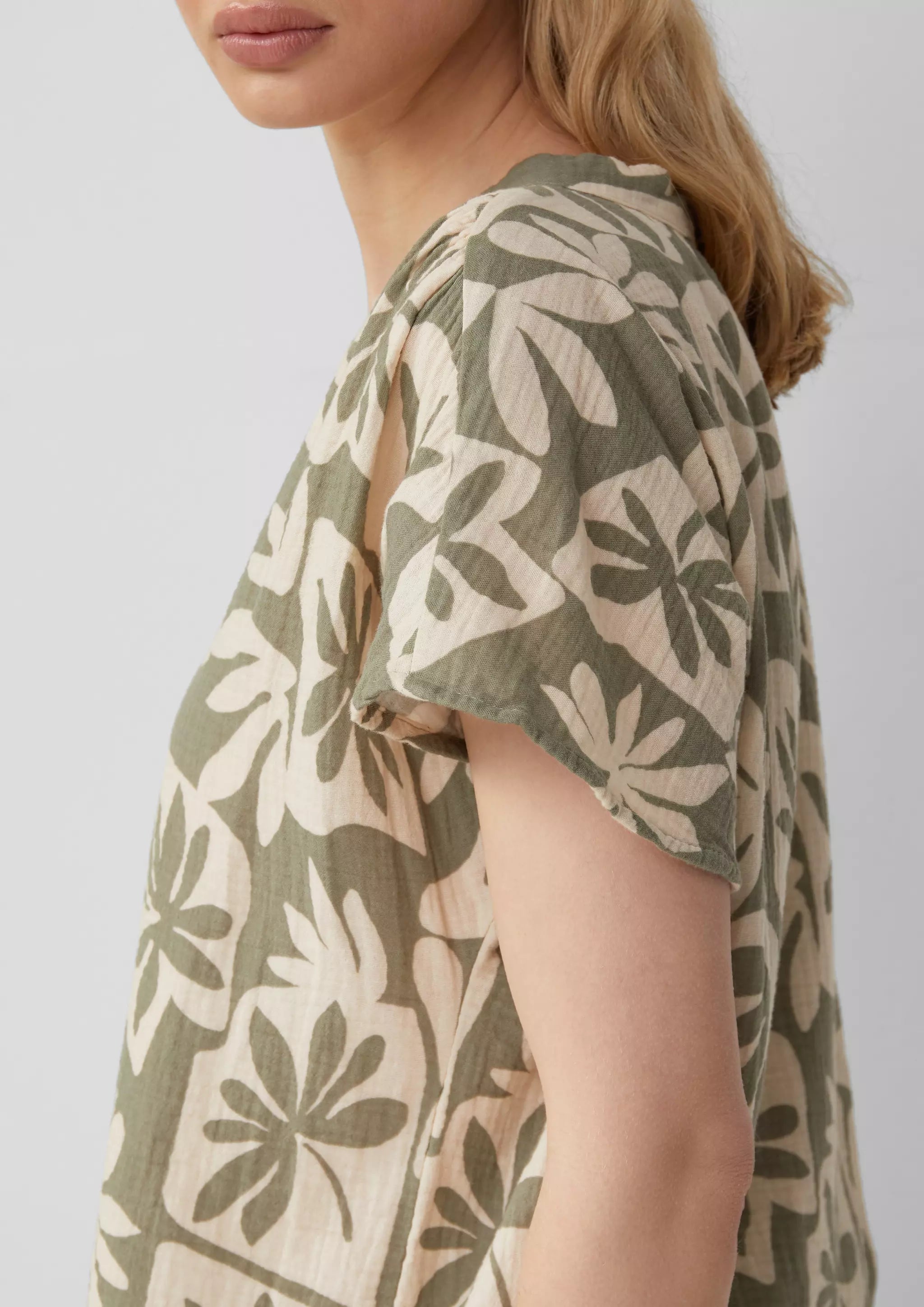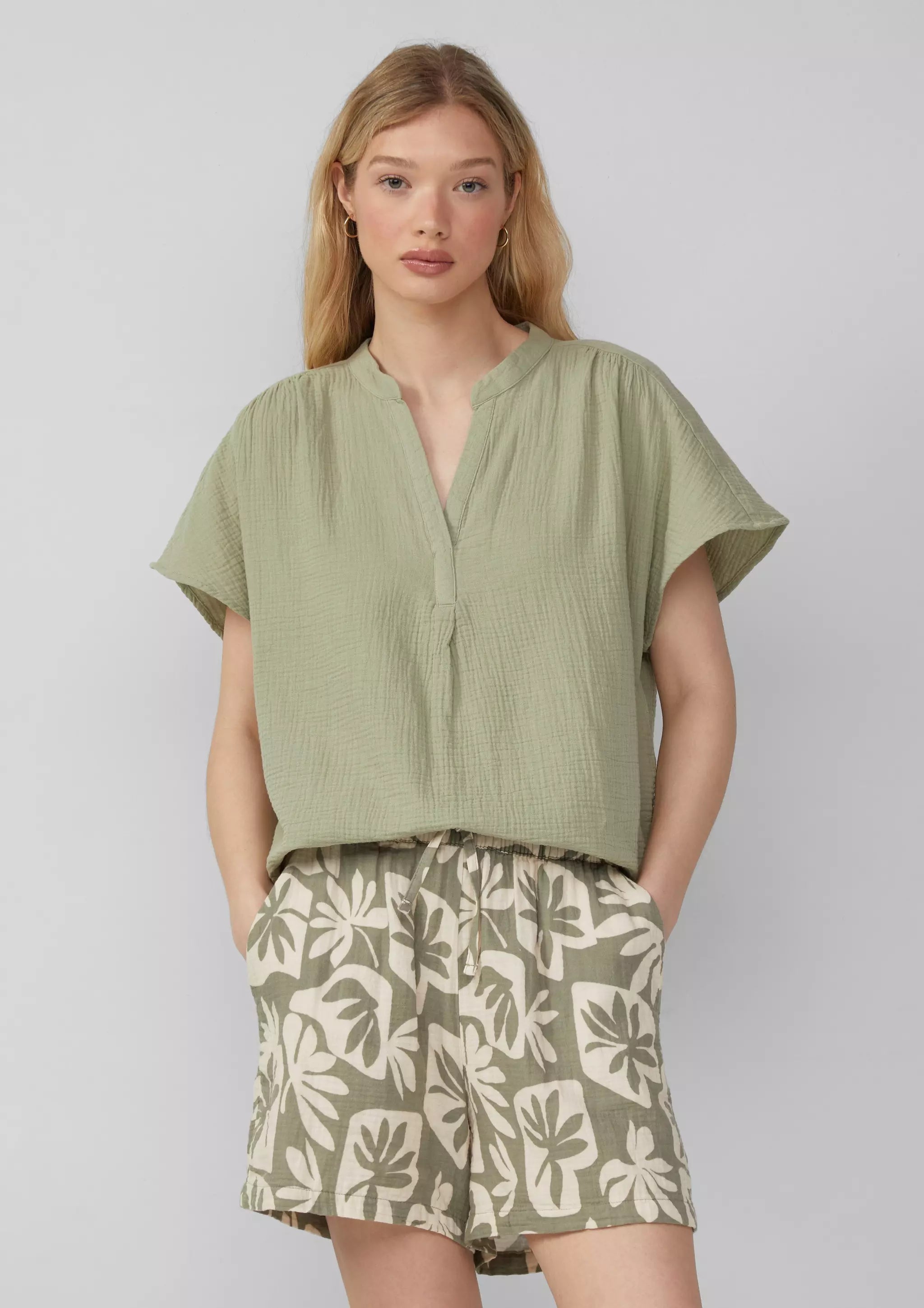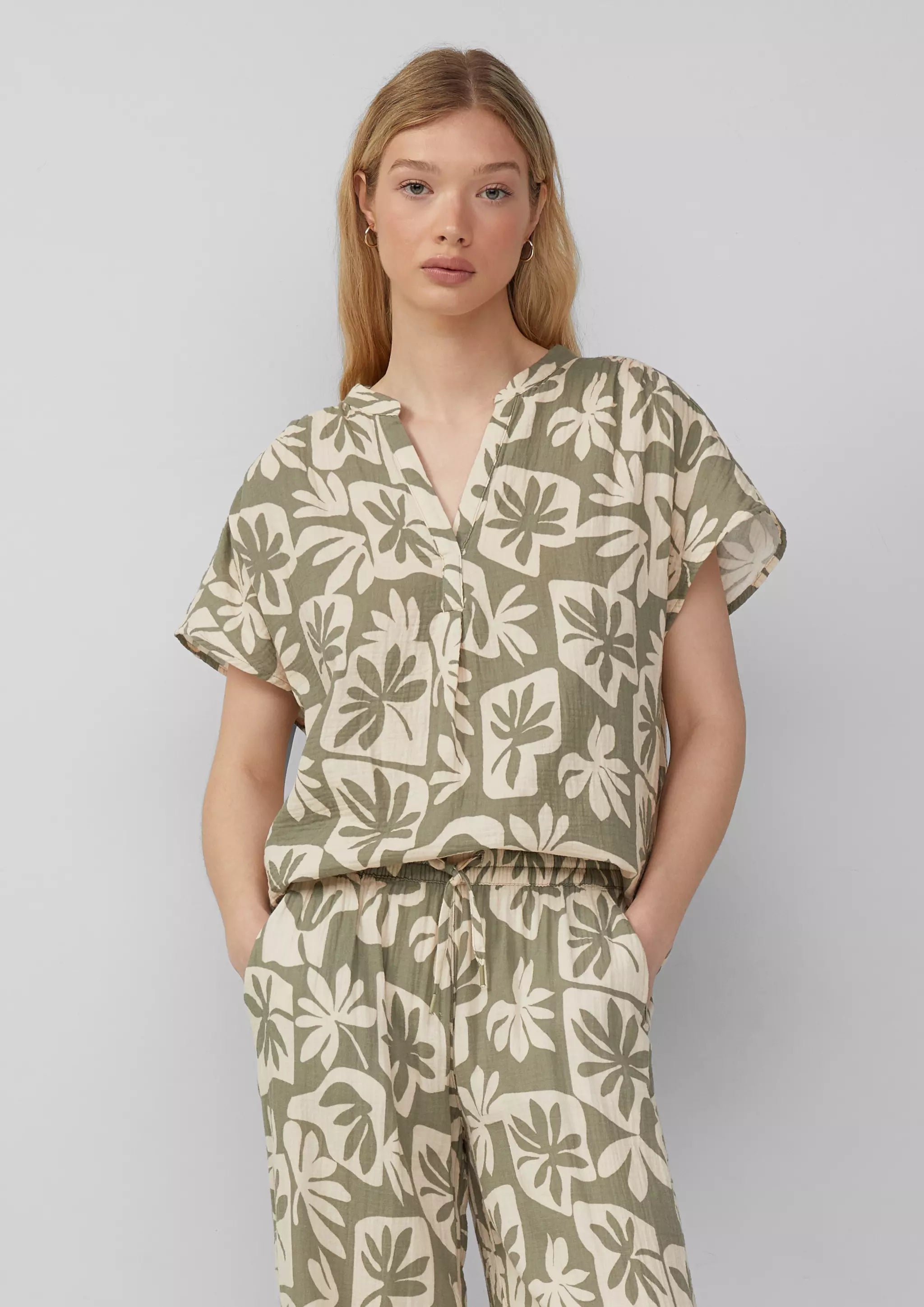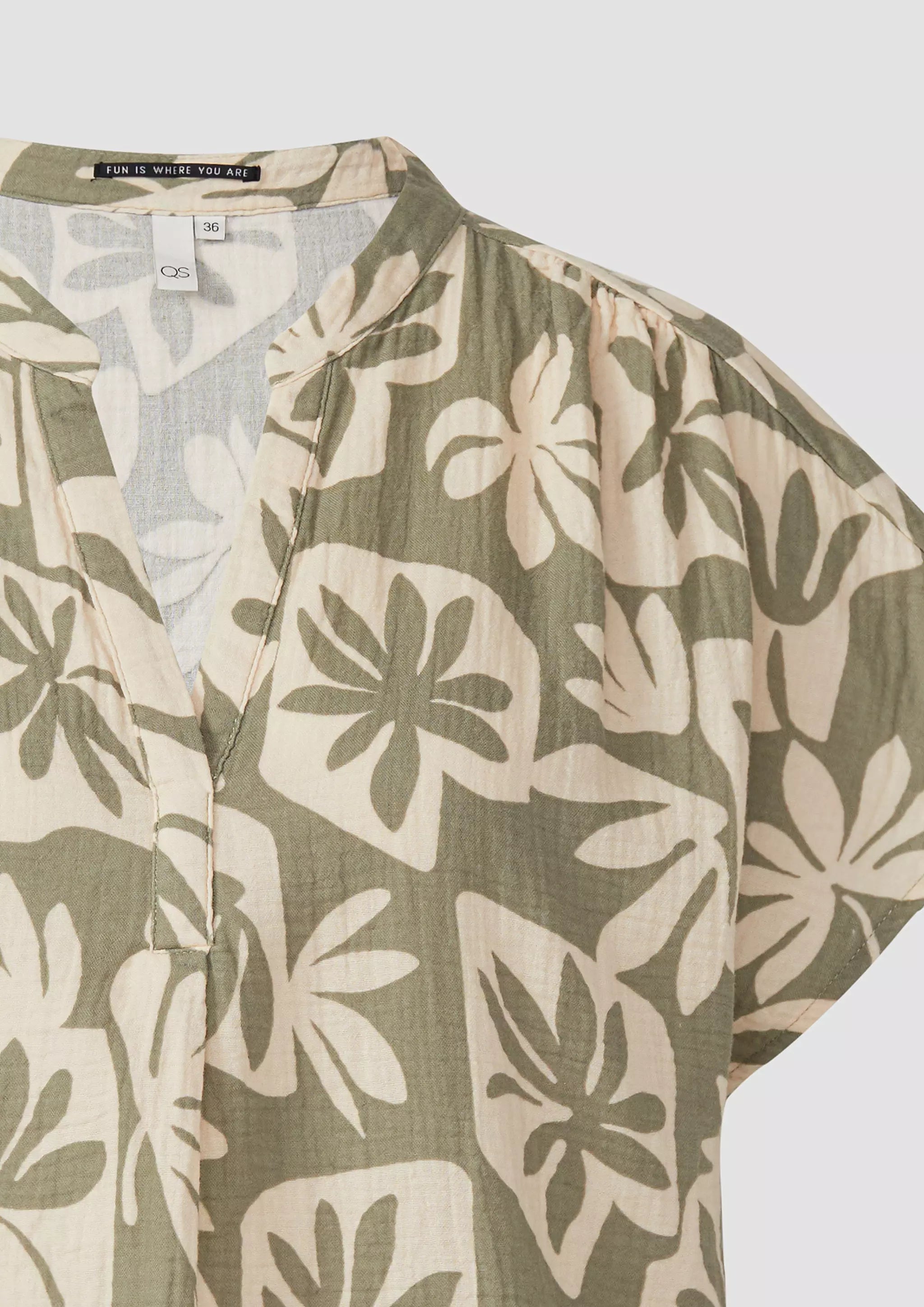 Luftig-leichte Musselin-Bluse für warme Tage. Mit Raffung und All-over-Print verzaubert sie im Loose Fit. Perfekt für Picknicks oder Strandausflüge – so geht sommerliche Leichtigkeit. Wie wär's mit einem Eis dazu?