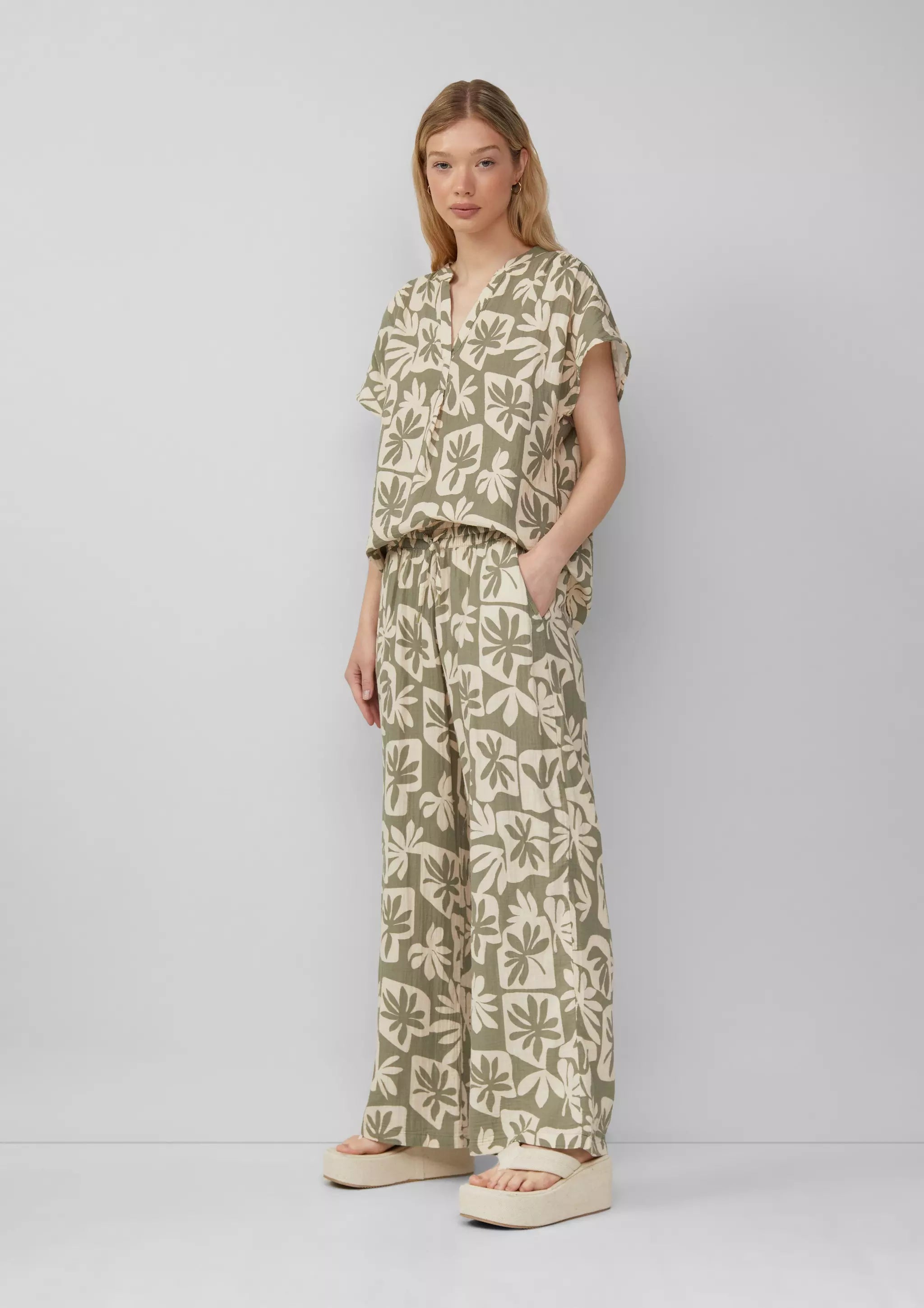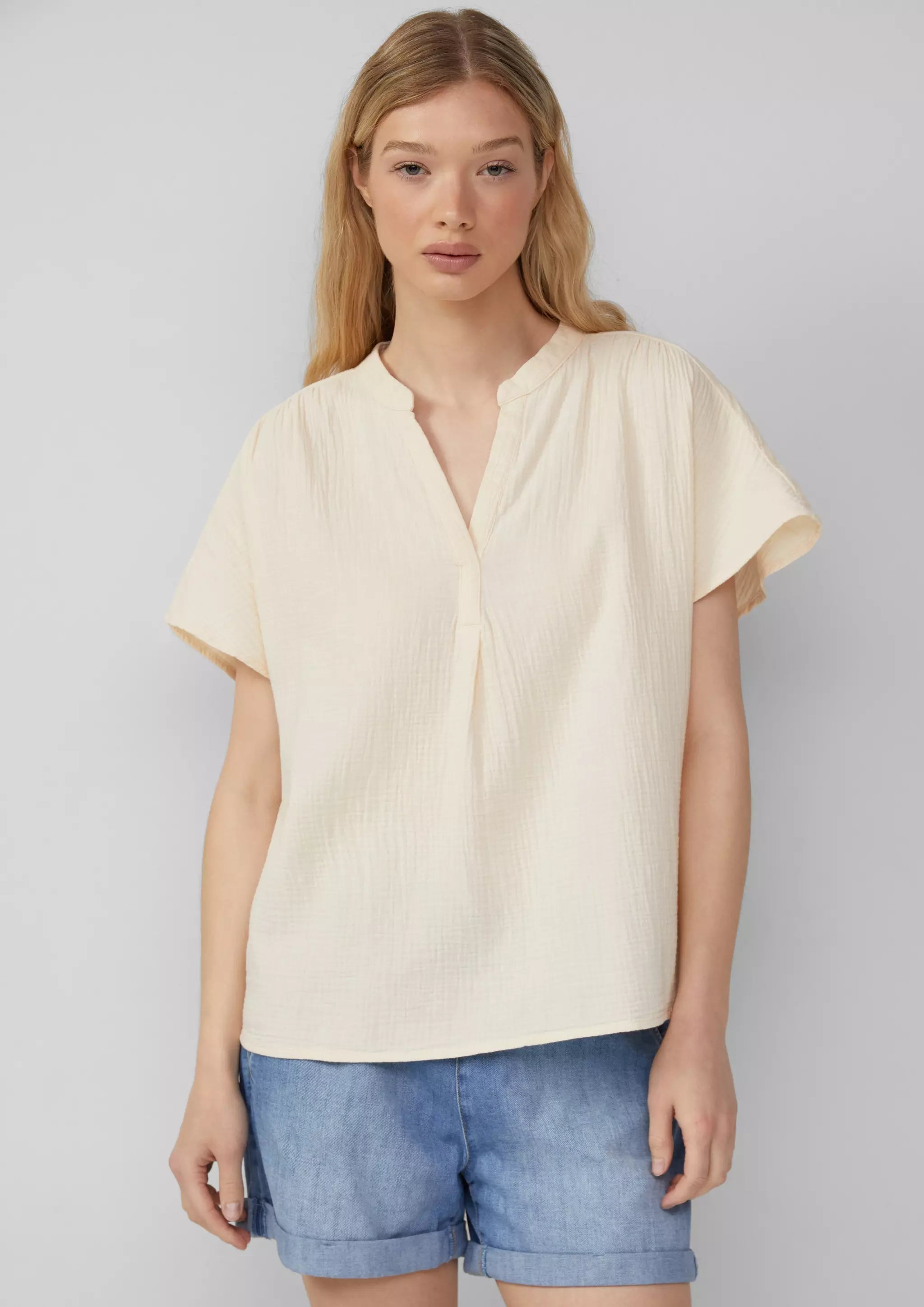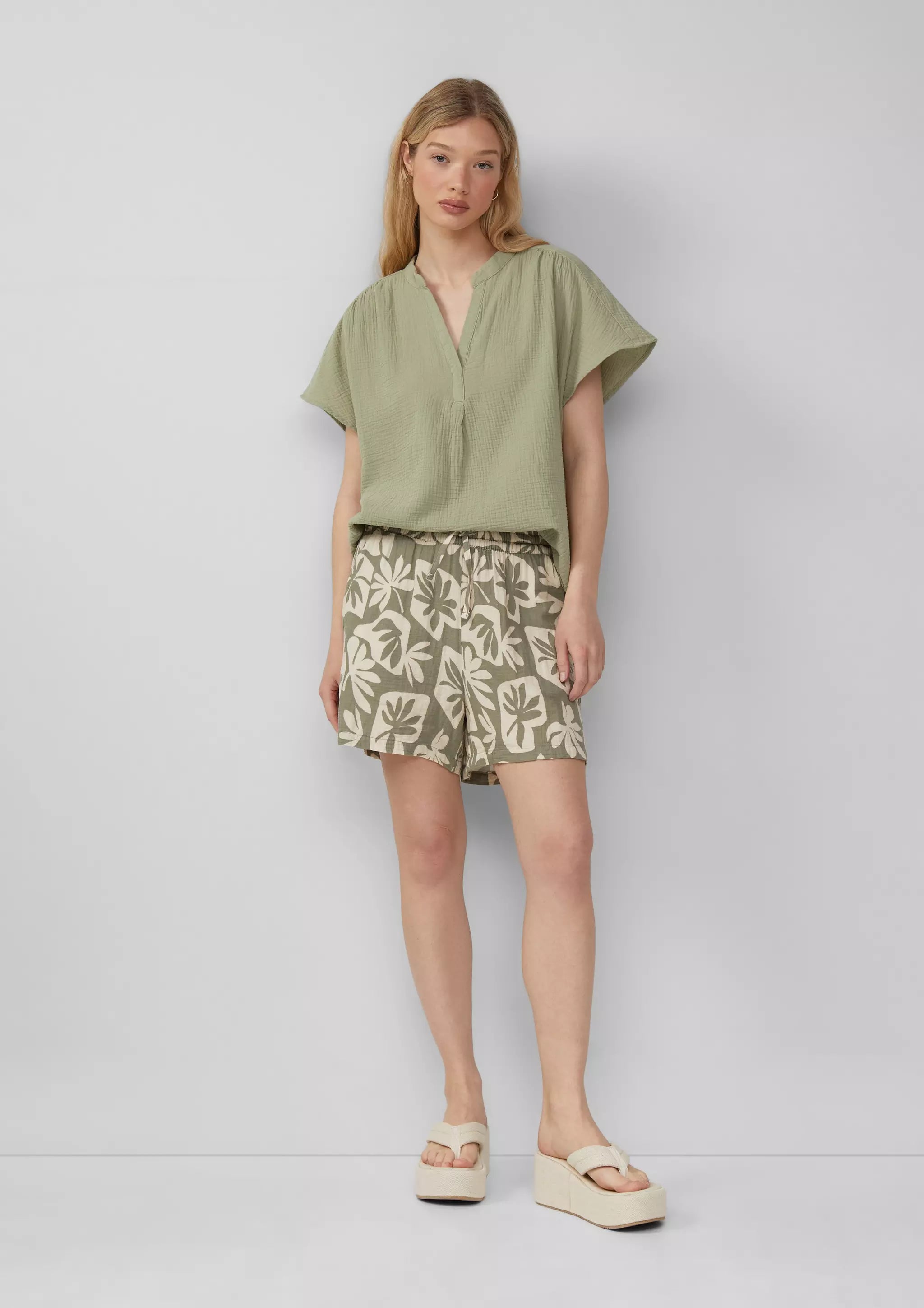 Luftig-leichte Musselin-Bluse für warme Tage. Mit Raffung und All-over-Print verzaubert sie im Loose Fit. Perfekt für Picknicks oder Strandausflüge – so geht sommerliche Leichtigkeit. Wie wär's mit einem Eis dazu?