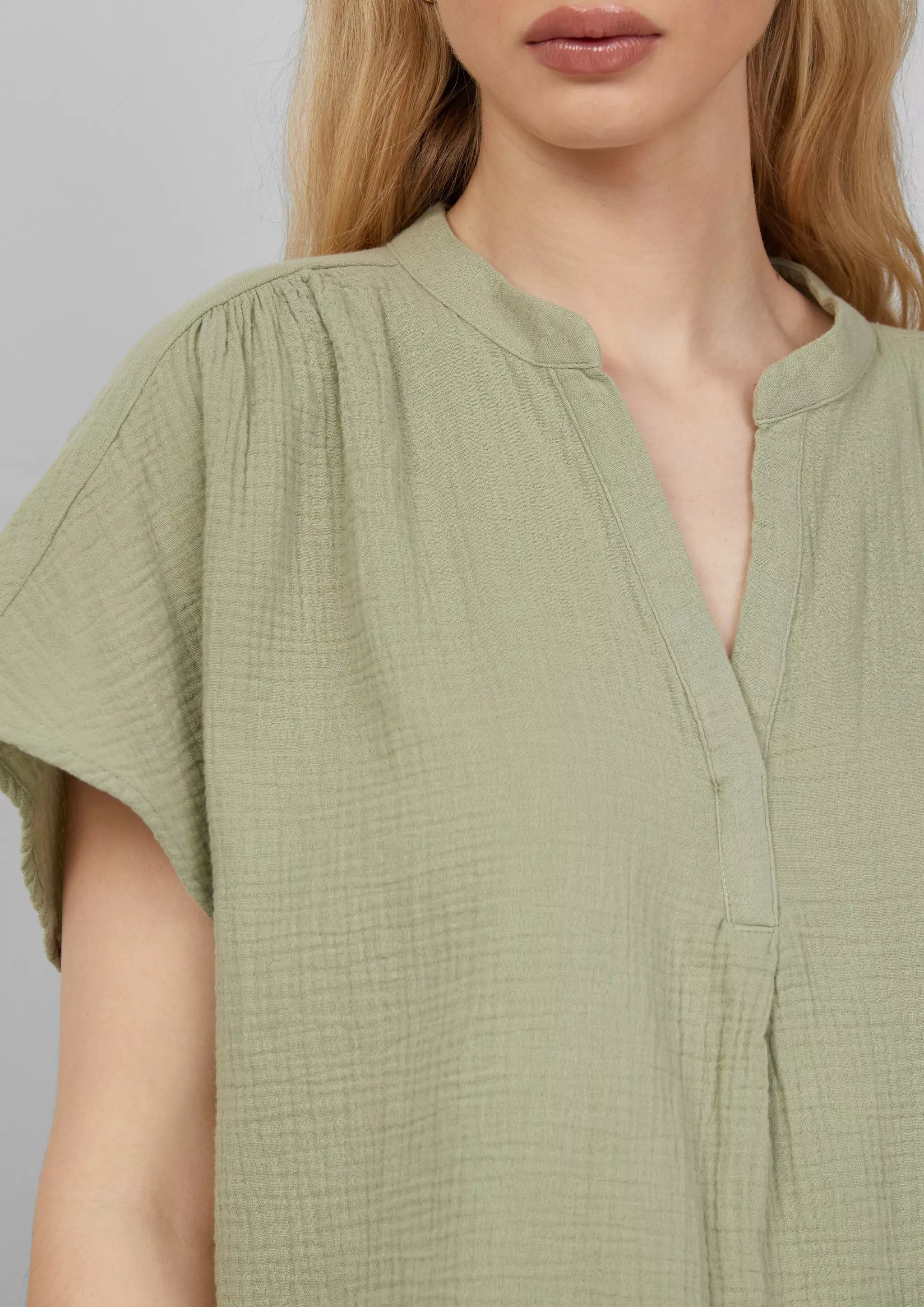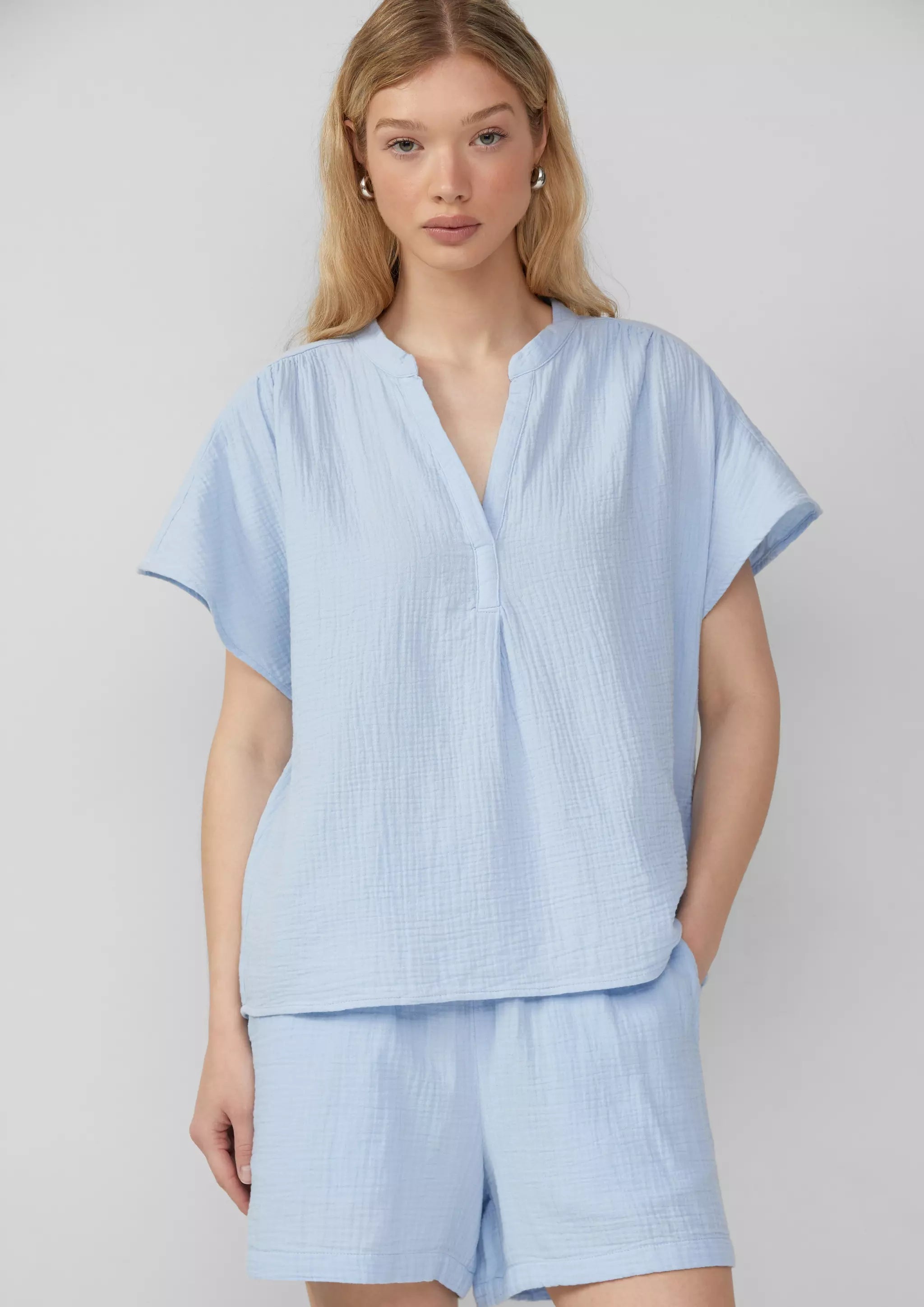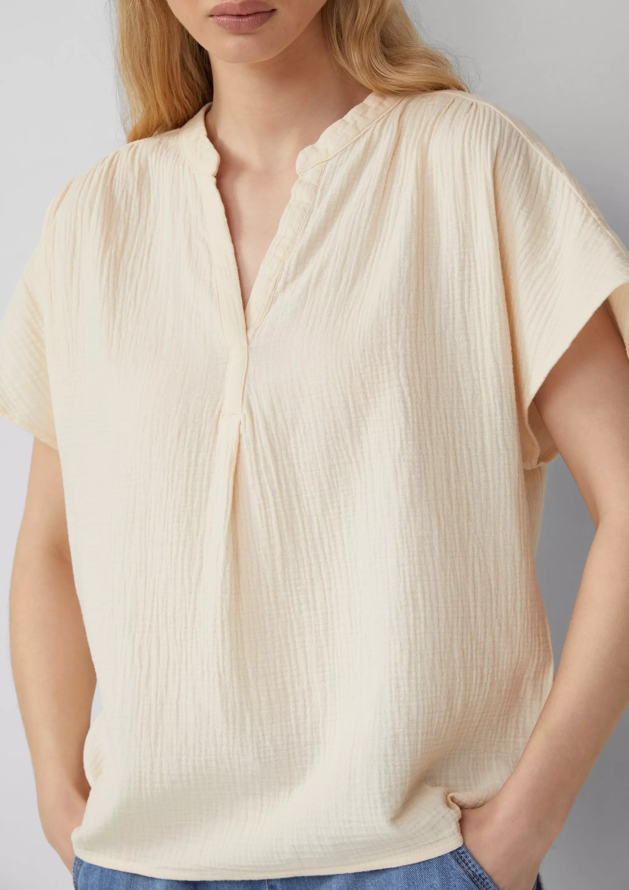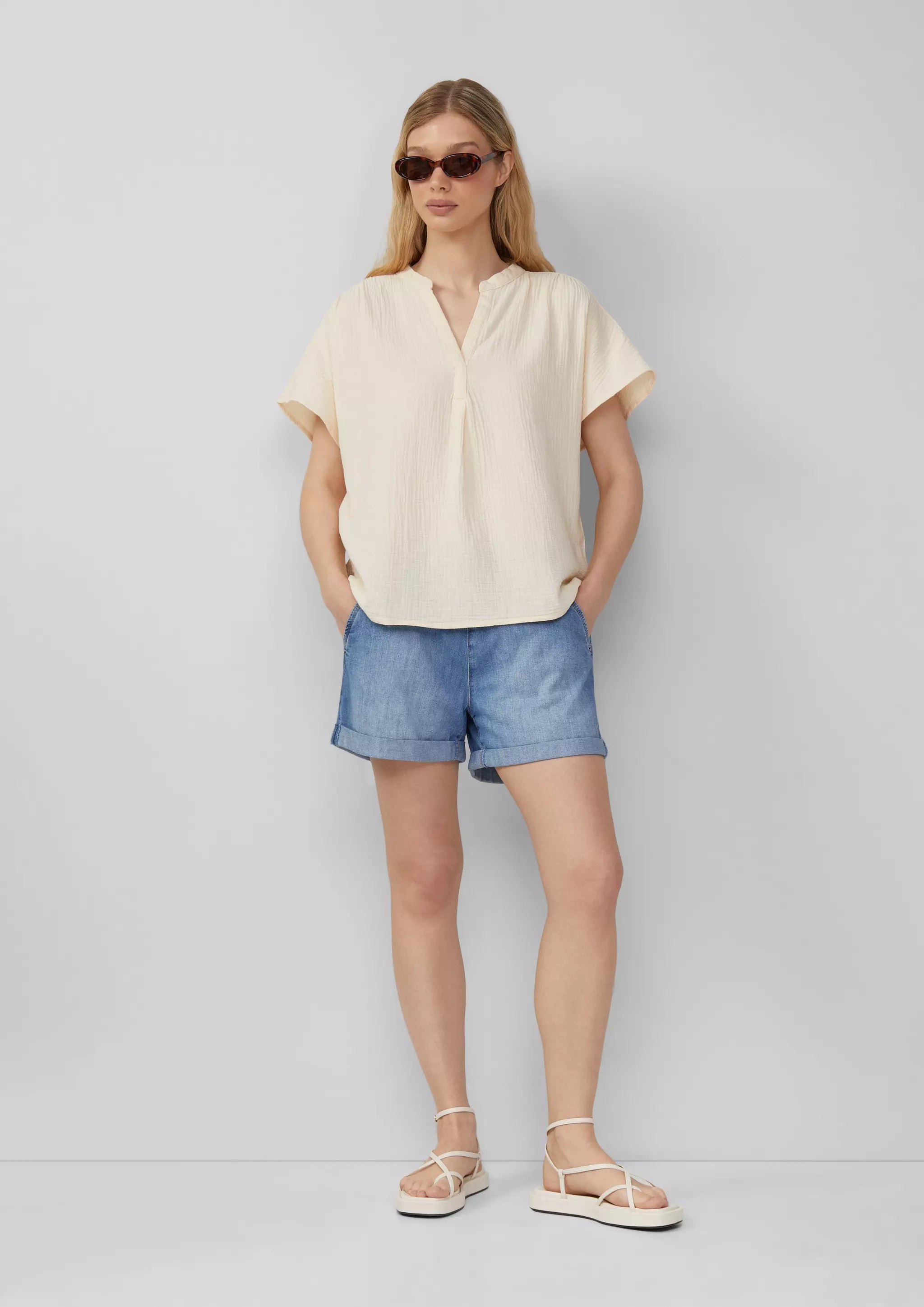 Luftig-leichte Musselin-Bluse für warme Tage. Mit Raffung und All-over-Print verzaubert sie im Loose Fit. Perfekt für Picknicks oder Strandausflüge – so geht sommerliche Leichtigkeit. Wie wär's mit einem Eis dazu?