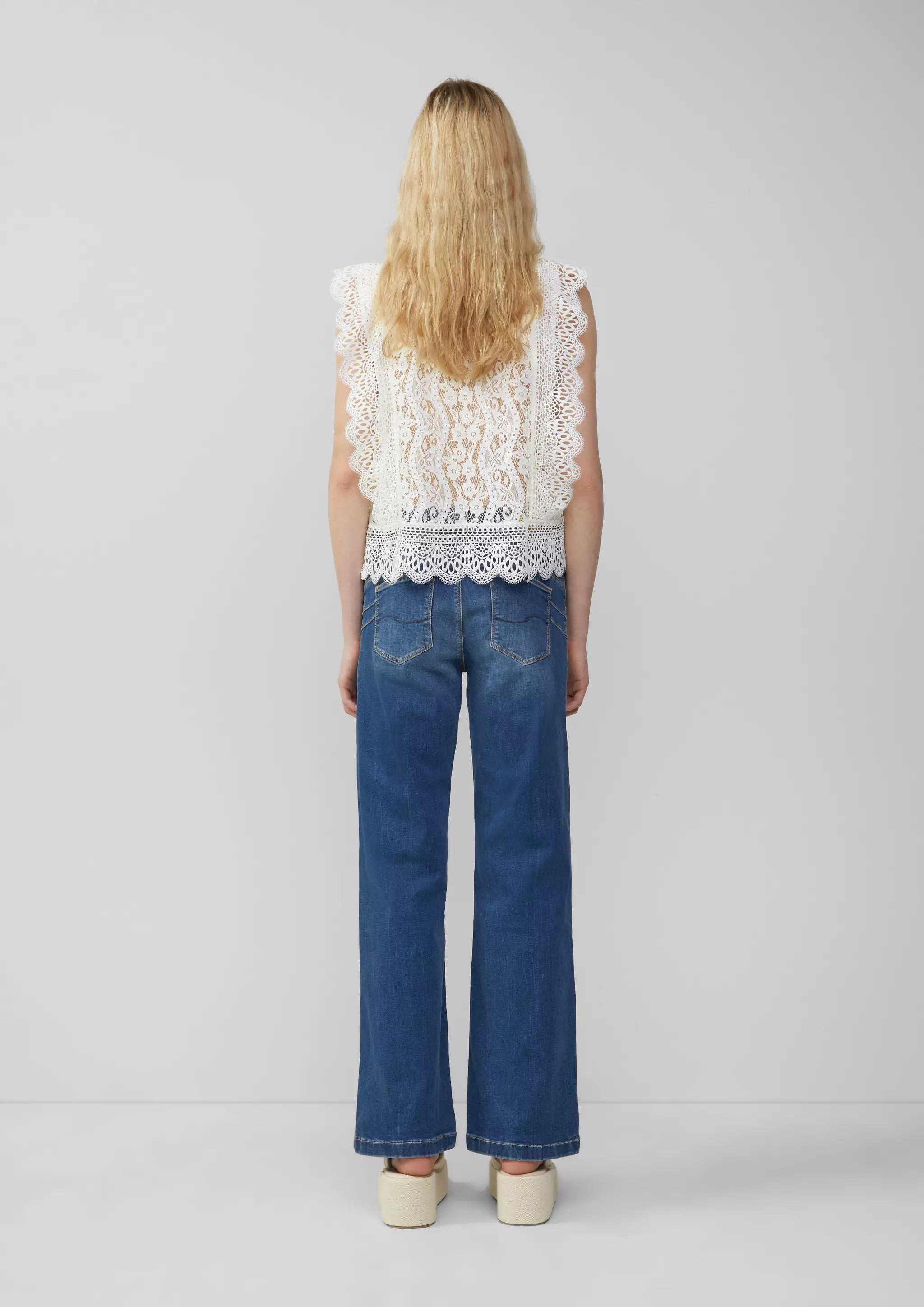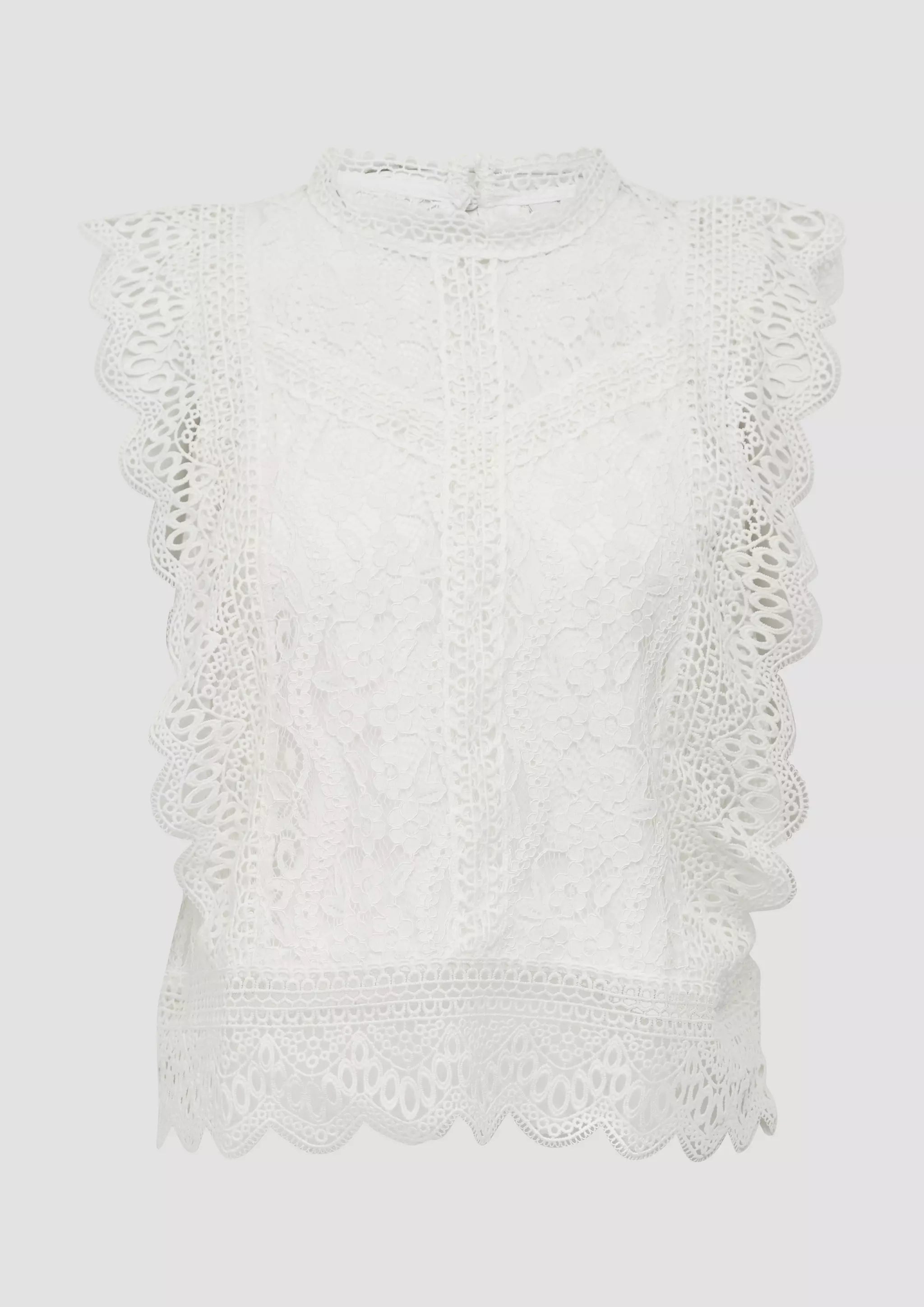 Stylisches Blusentop für coole Sommertage! Der Spitzen-Materialmix und der feminine Regular Fit machen es zum perfekten Begleiter für deine Casual-Looks. Leicht und ärmellos - ideal für heiße Tage und laue Nächte.