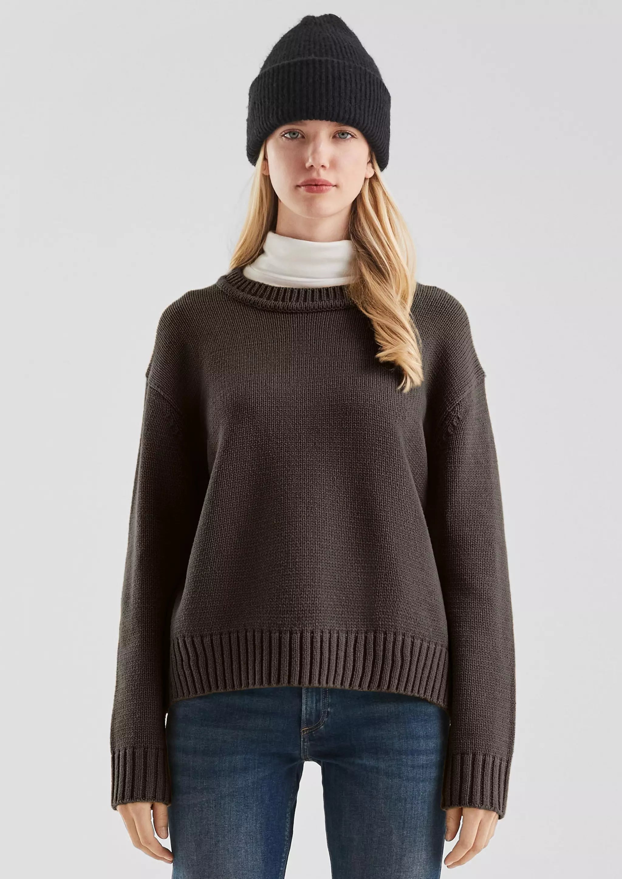 Der lässige Strickpullover mit Crew Neck ist dein neuer Begleiter für entspannte Tage. Die weiche Baumwollmischung und der lockere Schnitt mit überschnittenen Schultern sorgen für maximalen Komfort im Alltag.