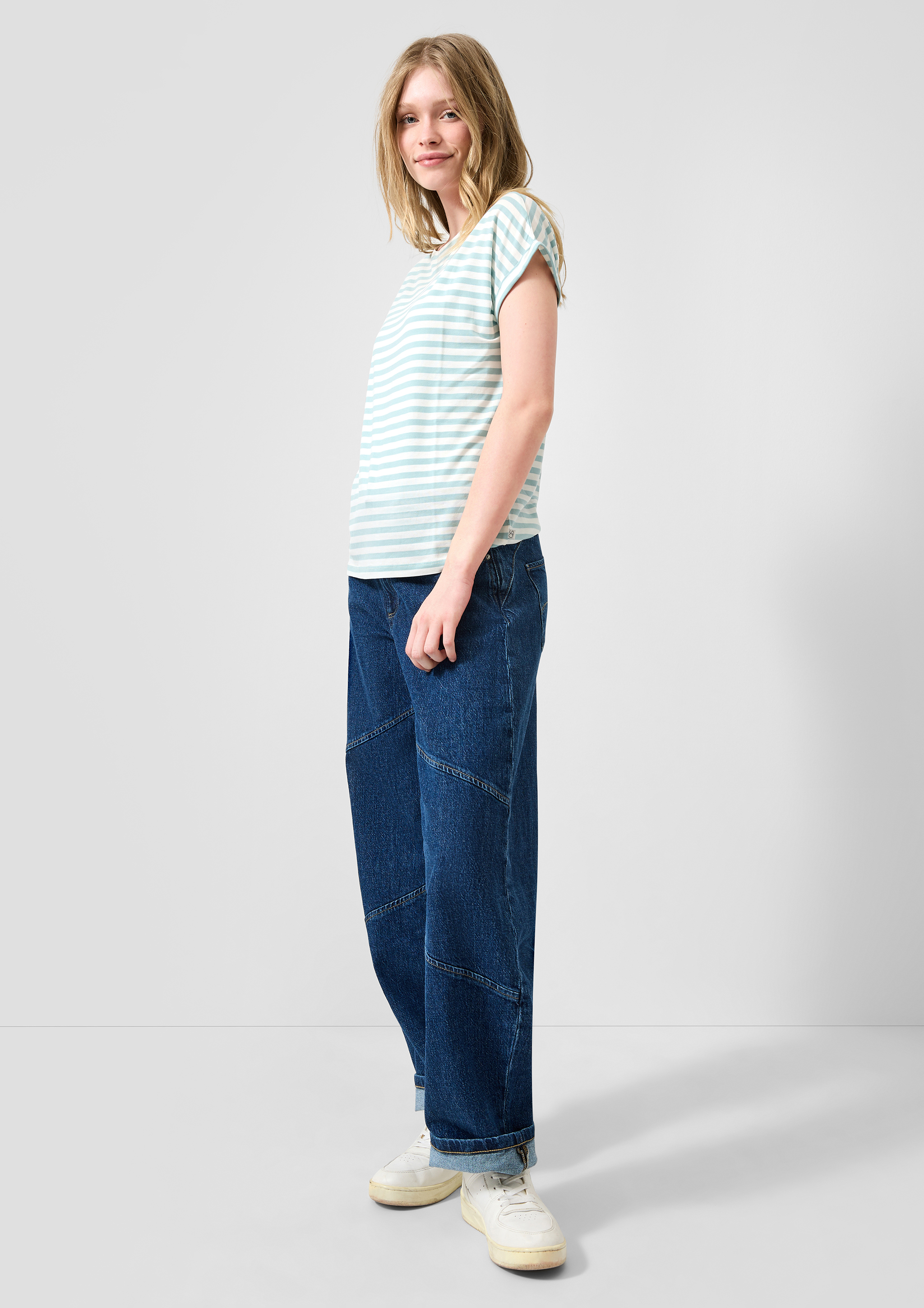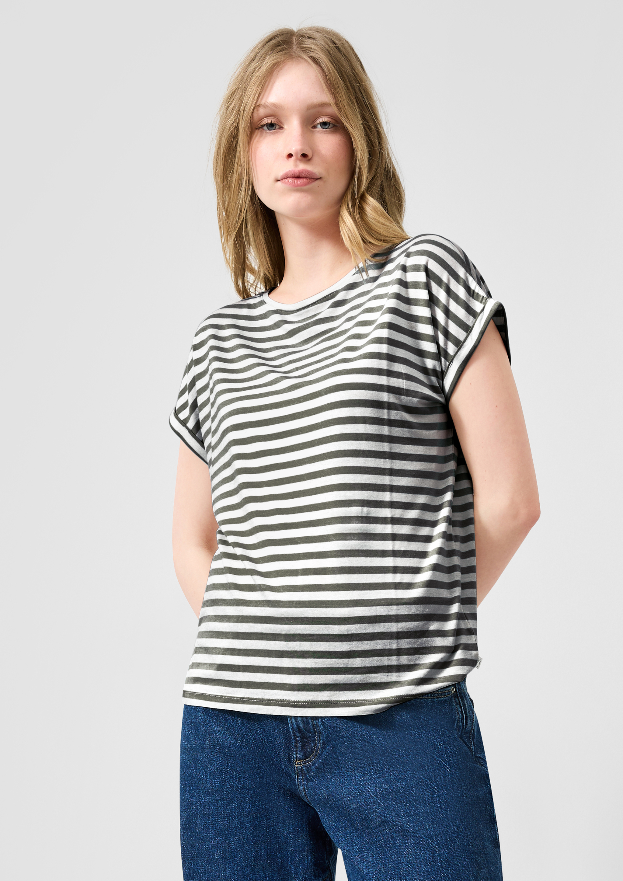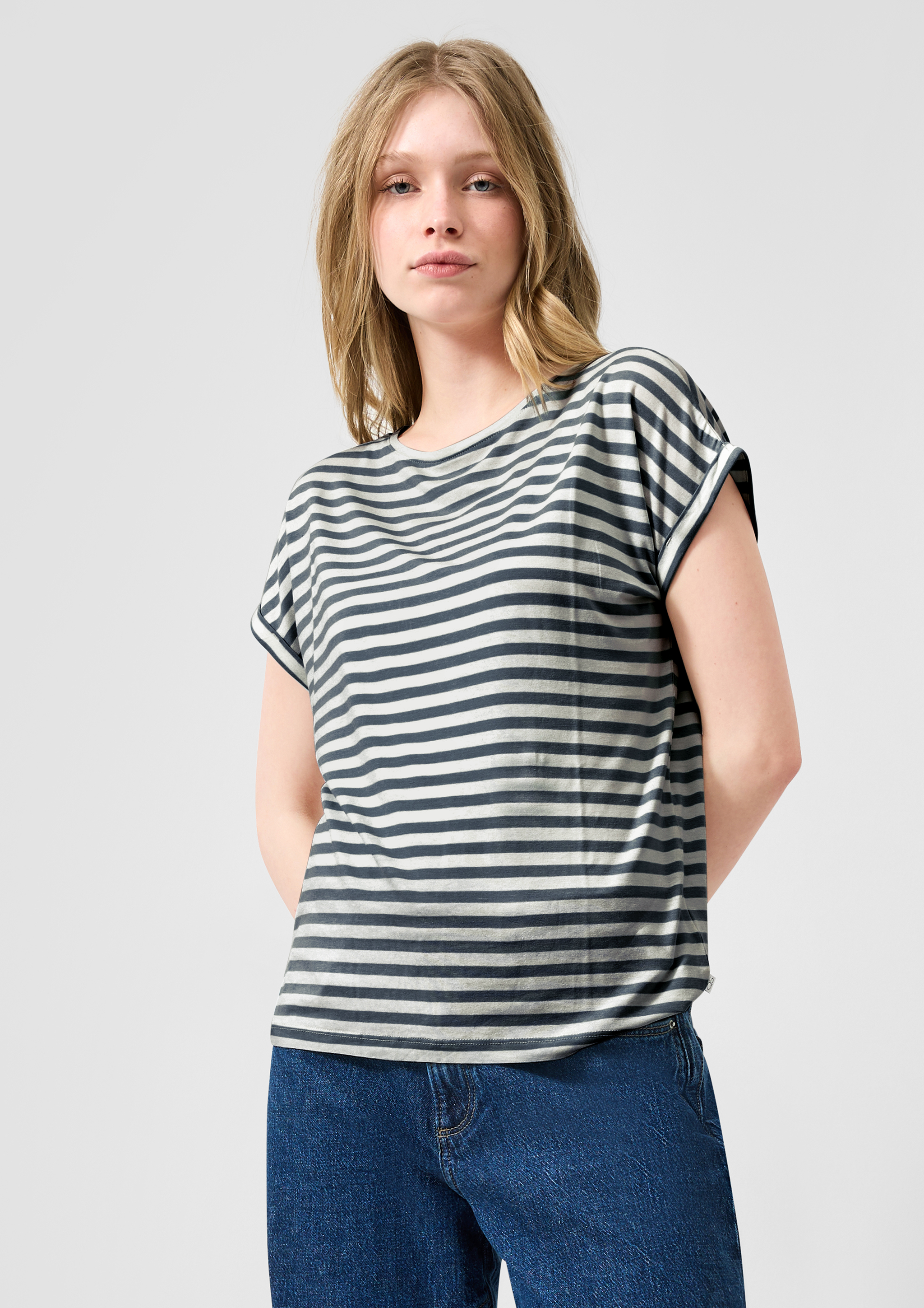 Dieses lässige T-Shirt aus weichem Lyocellmix wird dank Loose Fit und Fledermausärmeln zu deinem neuen Lieblingsteil. Der Jersey-Stoff ist angenehm elastisch und der Rundhalsausschnitt mit fixiertem Umschlag sorgt für den perfekten Look. Halblang geschnitten passt es zu allen deinen Lieblingsjeans und begleitet dich entspannt durch den Tag.
