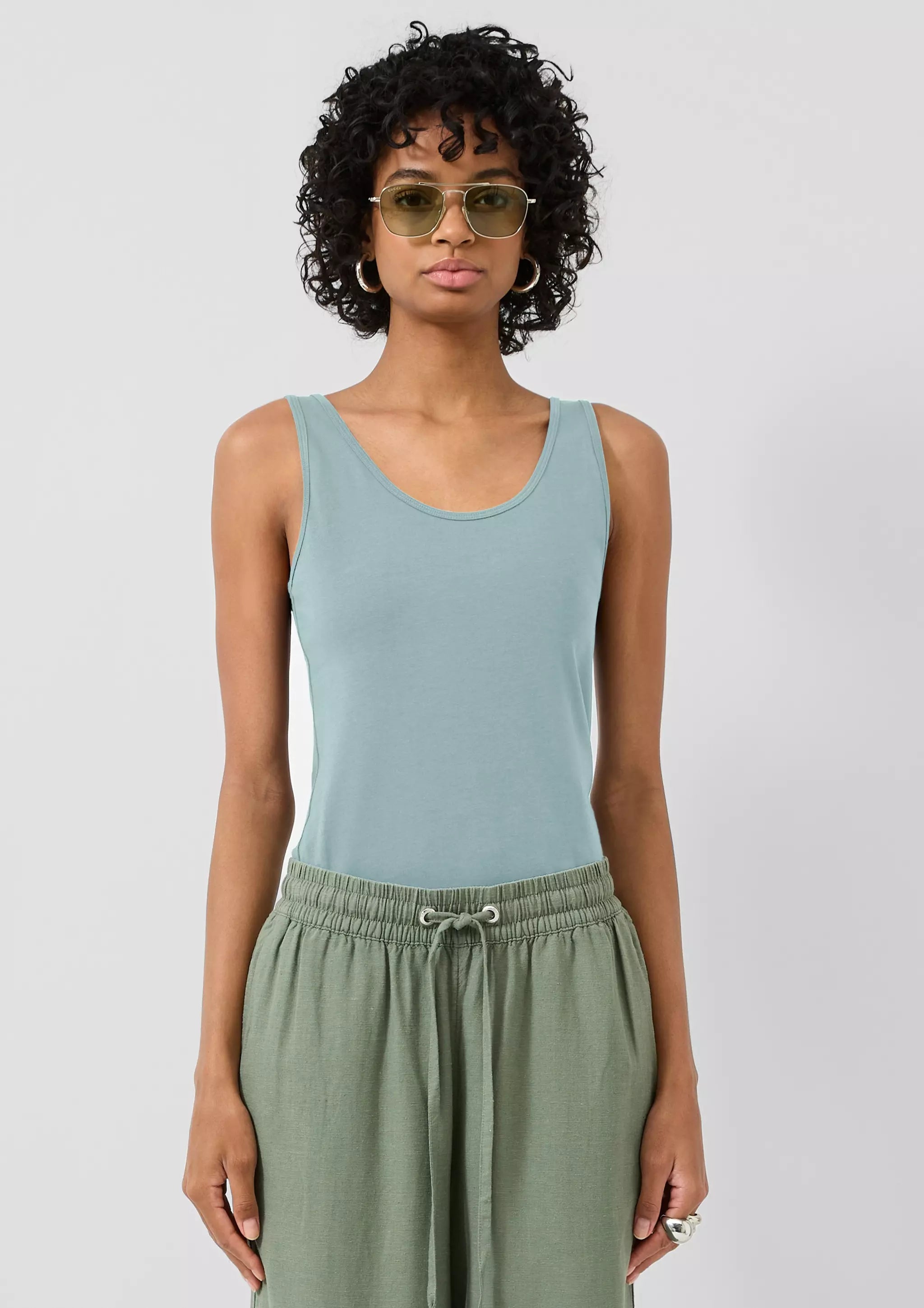Dieses ärmellose Tanktop aus weichem Baumwolljersey wird zu deinem neuen Lieblingsteil. Der elastische Stoff passt sich perfekt an, während die Slim Fit-Passform deine Figur betont. Mit Rundhalsausschnitt und geradem Saum lässt es sich easy zu Jeans, Shorts oder Rock kombinieren. Perfekt für entspannte Tage mit Freunden oder spontane Sommerabende.