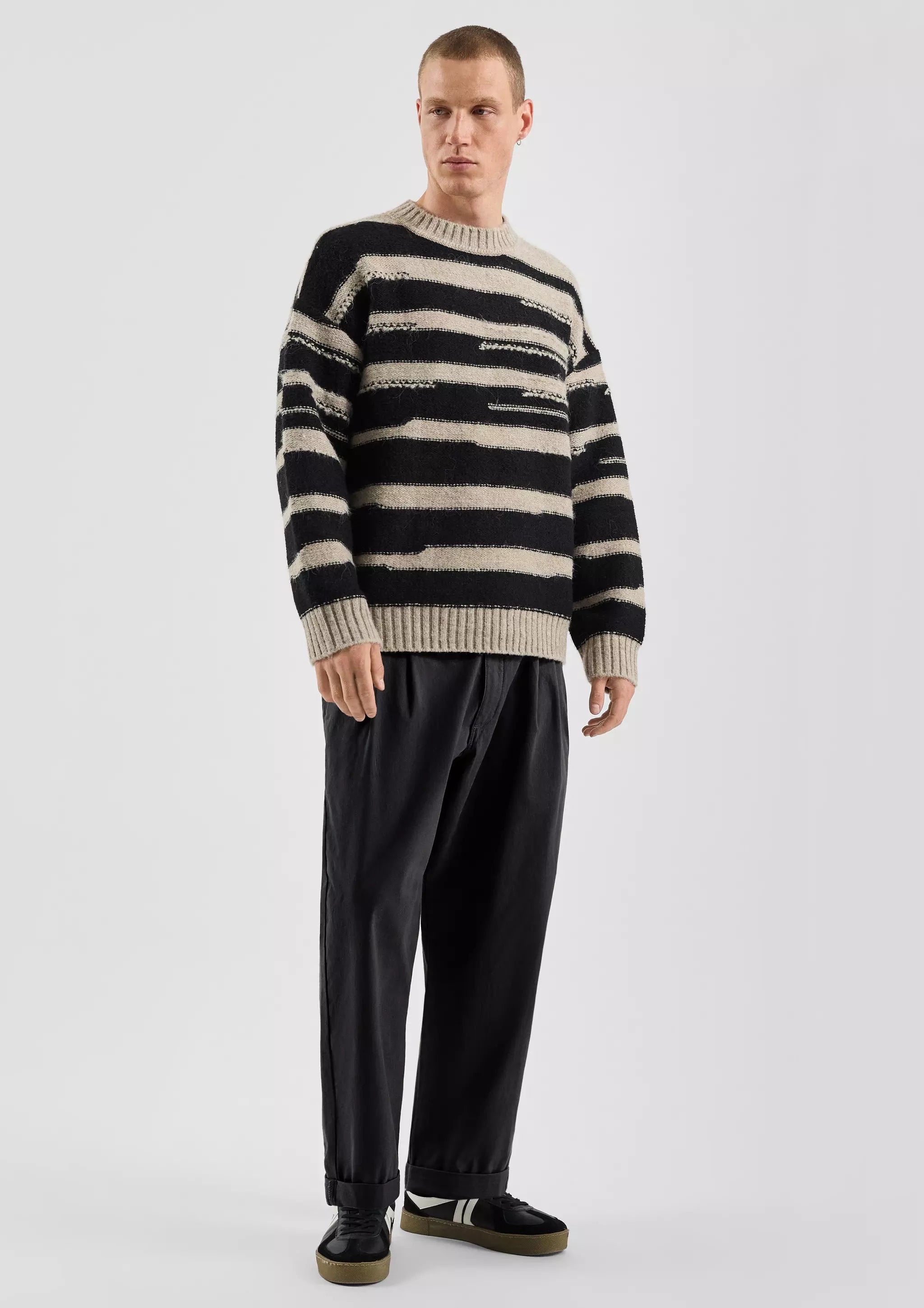 Strickpullover mit Strukturstreifen in Wolloptik