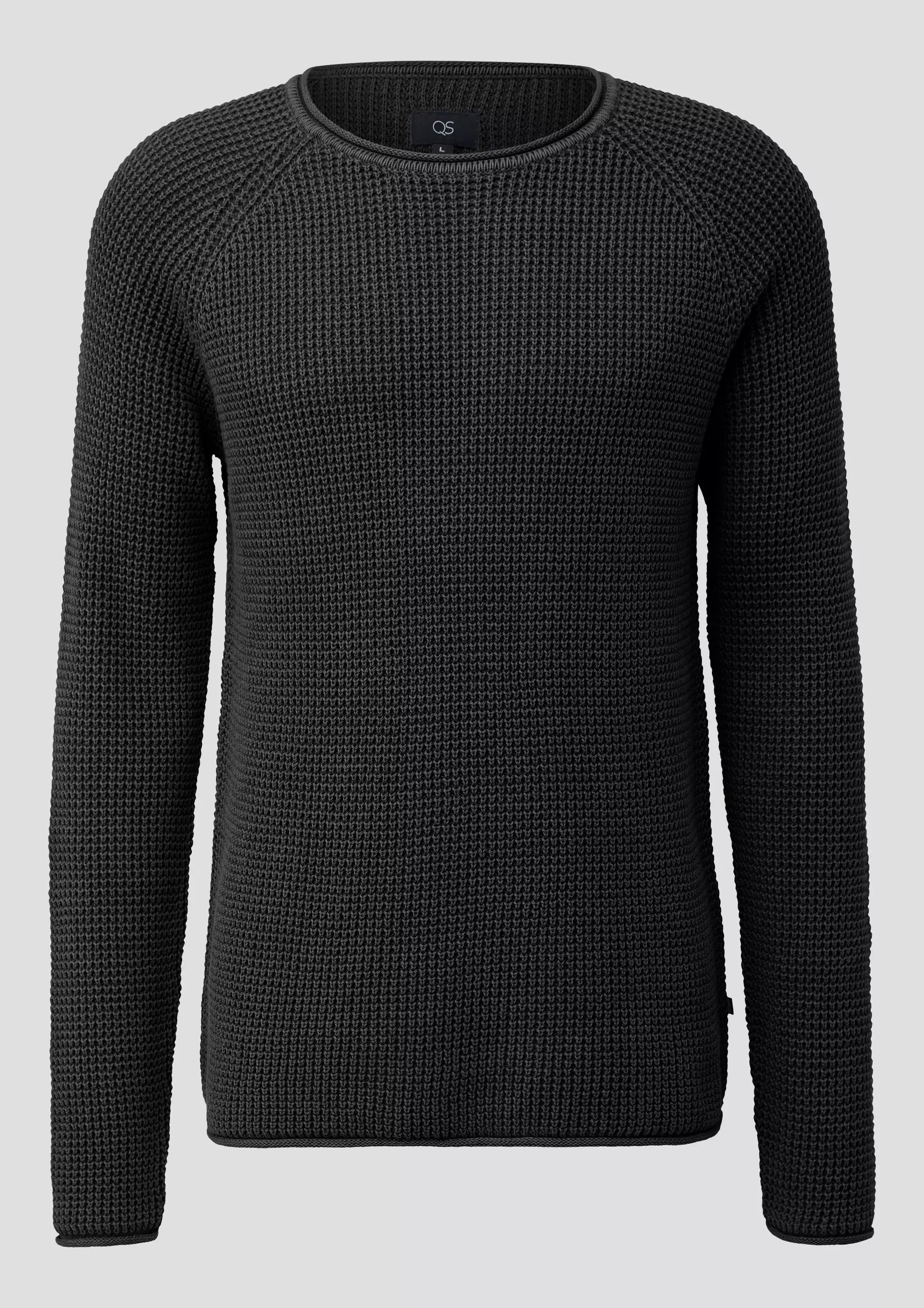 Grobstrickpullover mit Wascheffekt und Rollkante