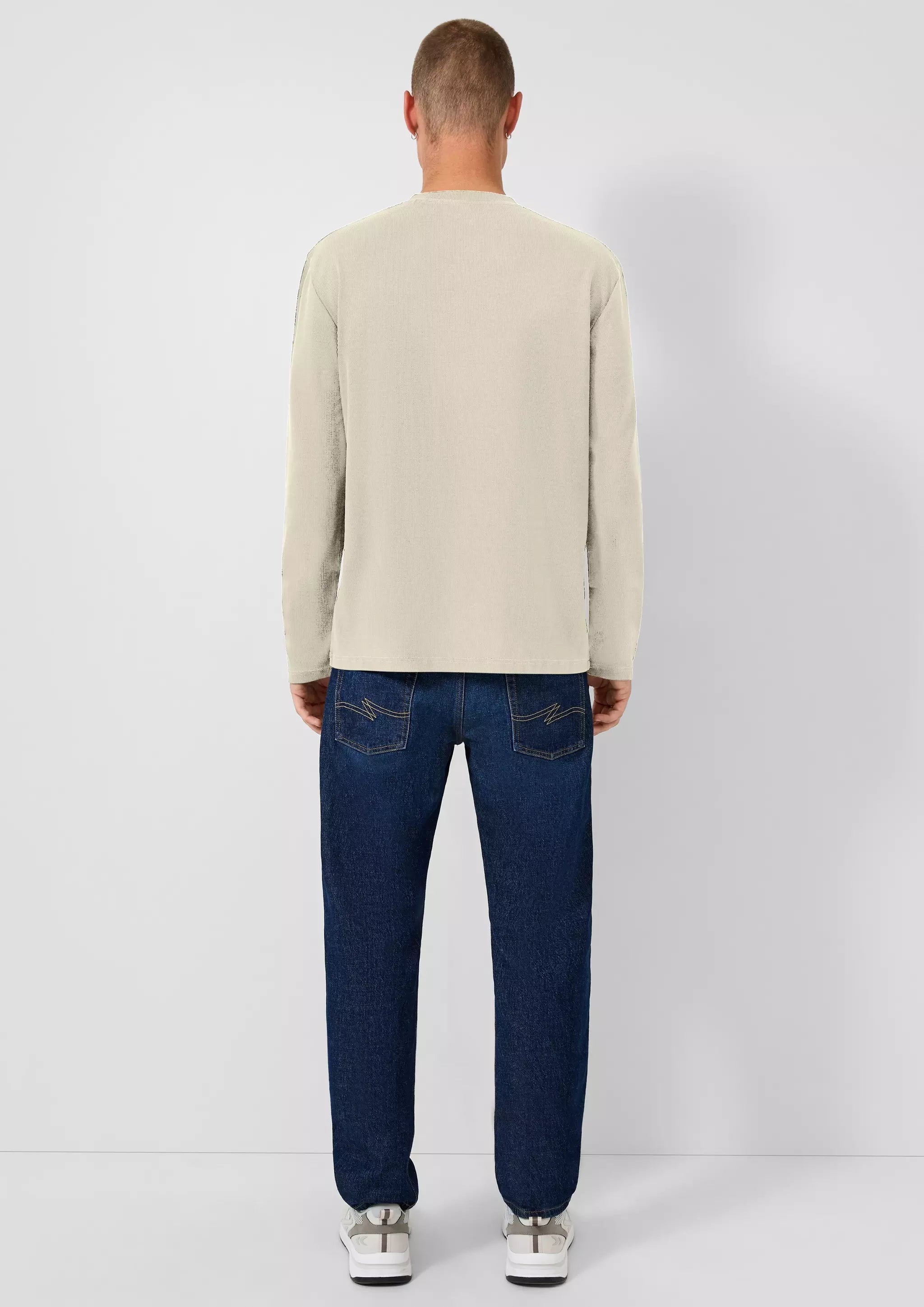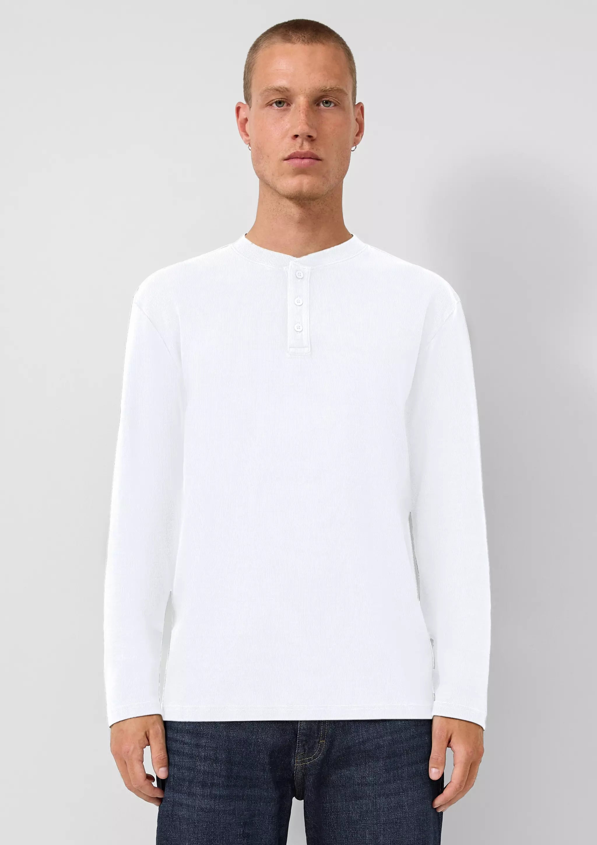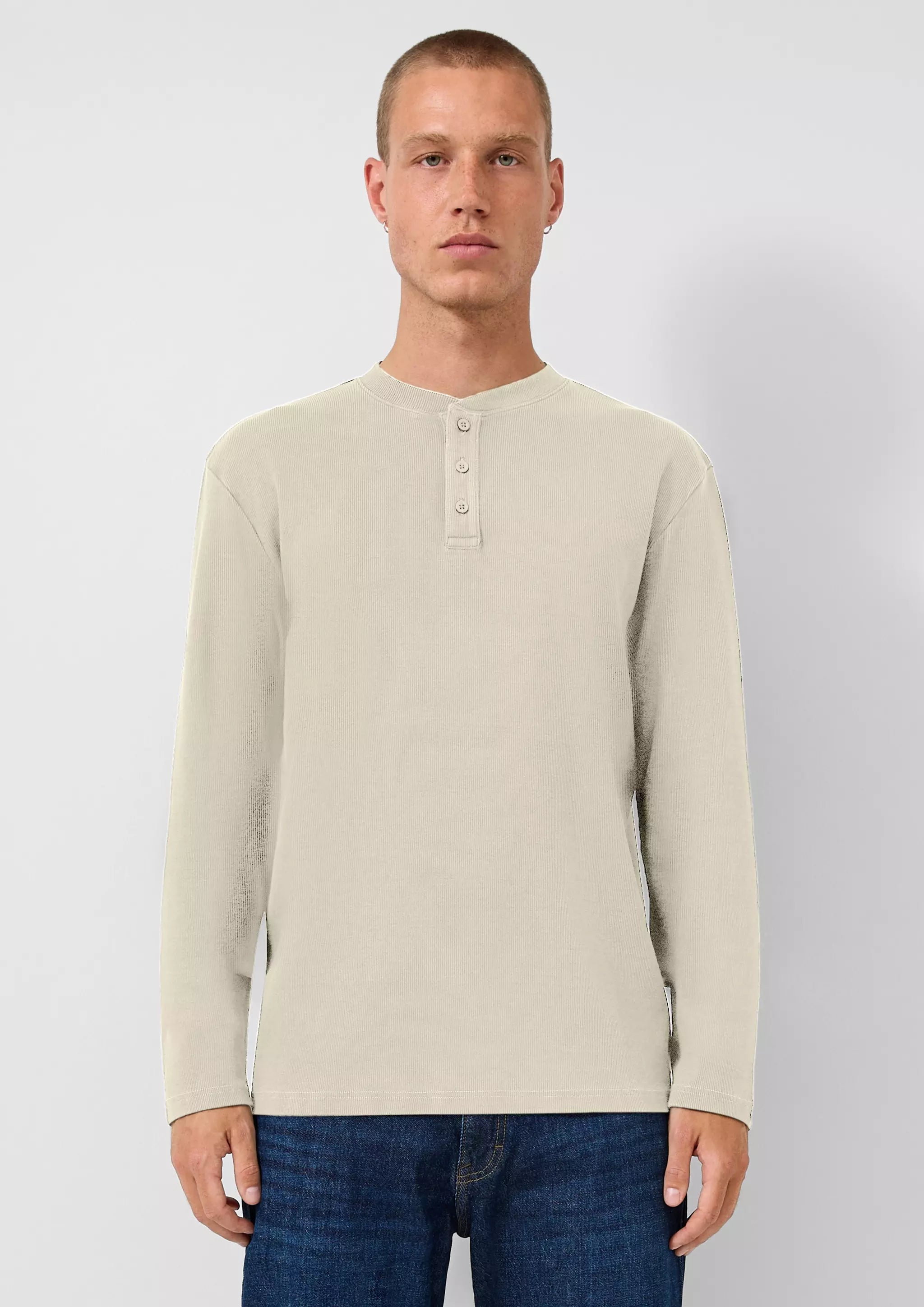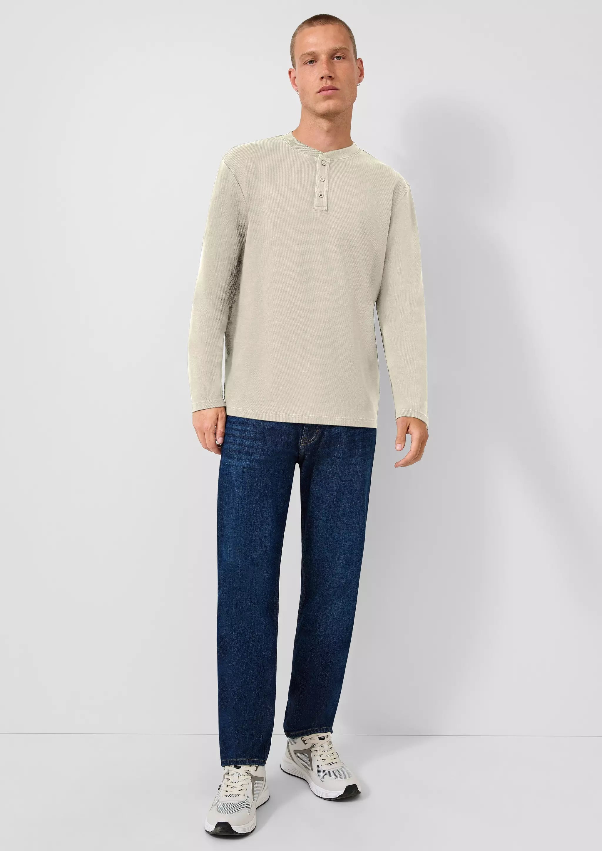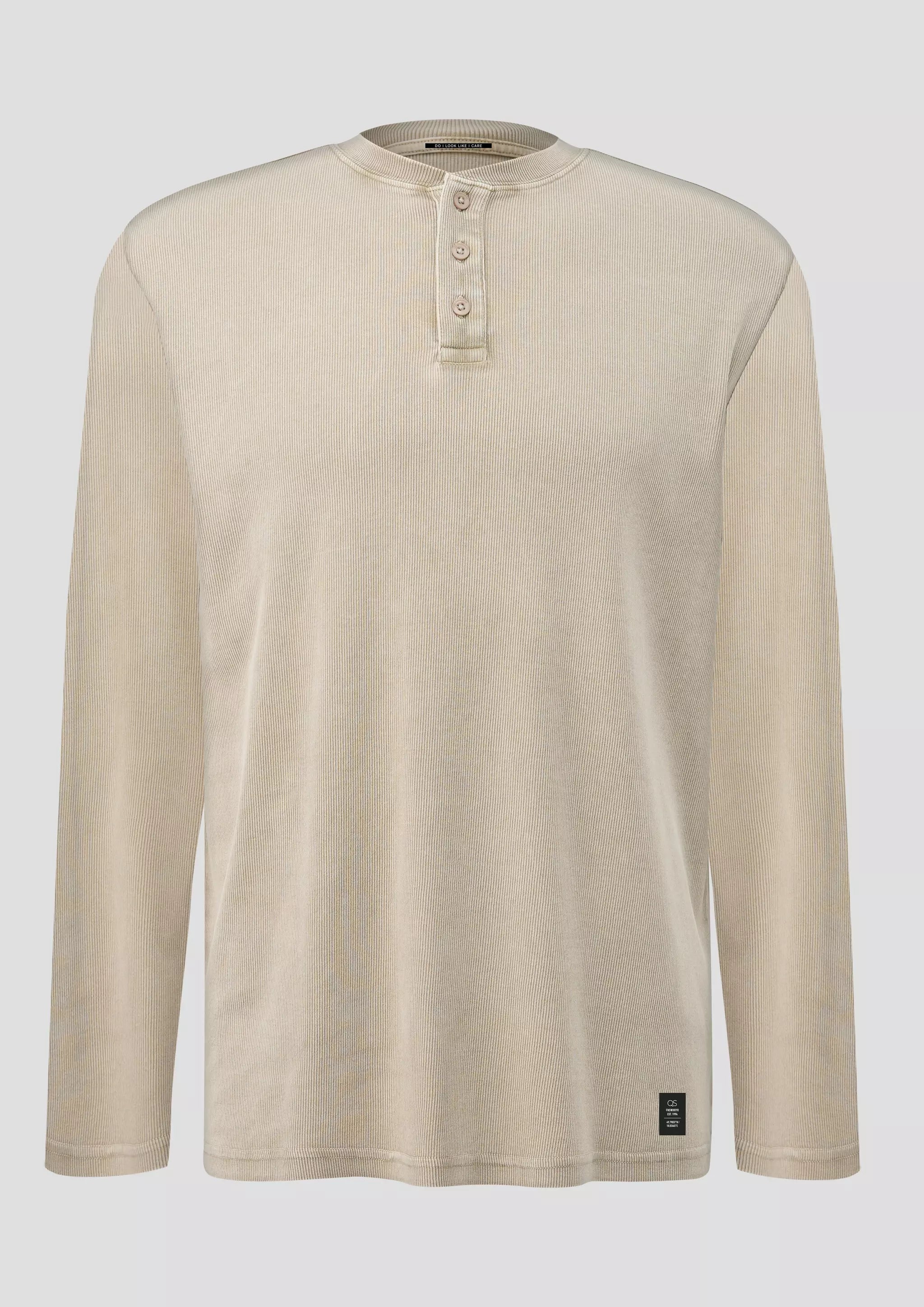 Gewaschenes Henley-Langarmshirt mit Rippstruktur
