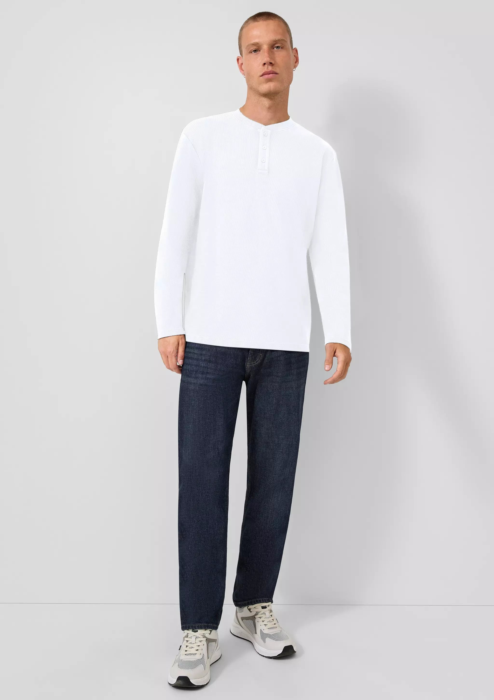 Entdecke lässigen Komfort mit unserem gewaschenen Henley-Langarmshirt. Die Rippstruktur und der Regular Fit sorgen für einen coolen Look, der sich perfekt für entspannte Tage und lässige Abende eignet. Dein neuer Lieblings-Basic für jeden Anlass!