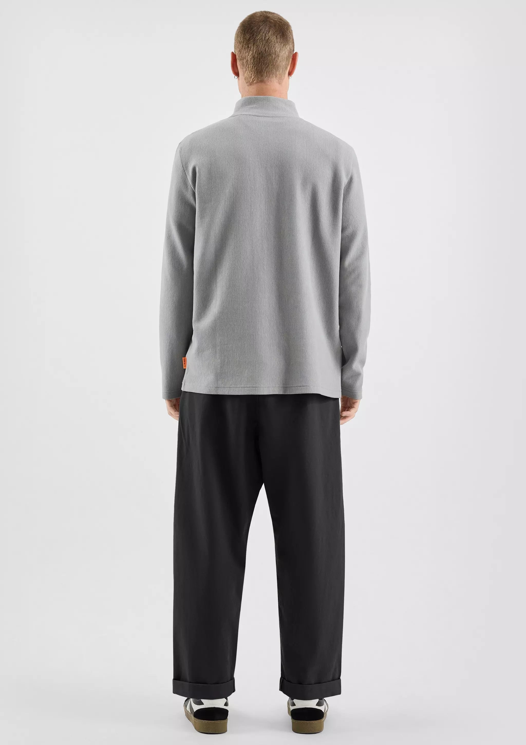 Dieses Longsleeve mit Troyer-Kragen und Reißverschluss bringt lässigen Style in deinen Alltag. Die Rippstruktur des Jersey-Stoffs macht das Regular Fit Shirt zum perfekten Begleiter für entspannte Tage und spontane Treffen. Unkompliziert kombinierbar, einfach cool – genau dein Ding für jeden Tag und besondere Momente mit deinen Leuten.
