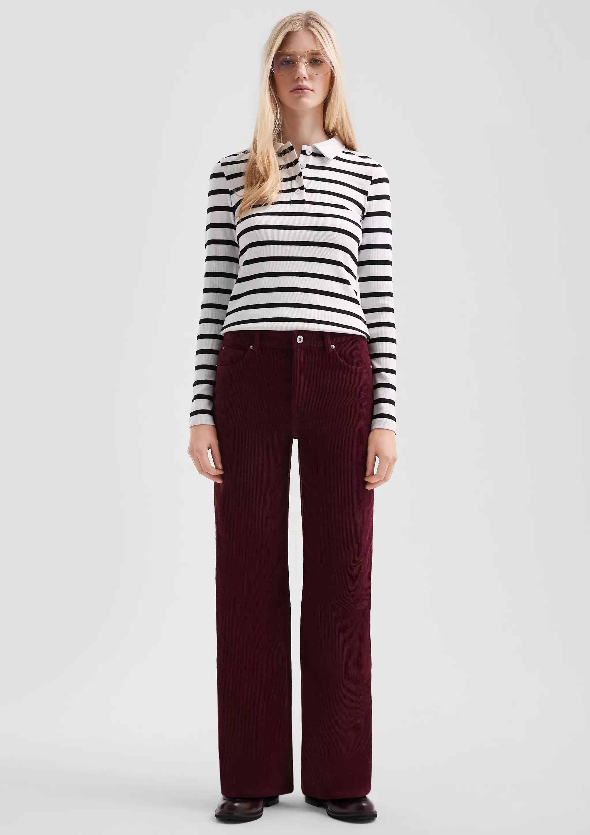 Entdecke den Cord-Chic: Stylische High-Rise-Hose mit weitem Bein und softem Stoff. Perfekt für deinen lässigen Alltags-Look oder coole Abende mit Freunden. Bequem, trendy und vielseitig kombinierbar - dein neues Lieblingsstück für jede Gelegenheit.