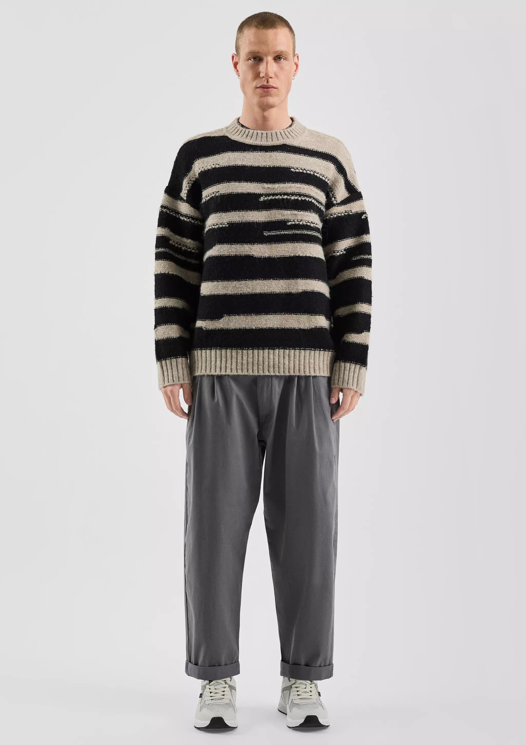 Rocken Sie diese lässige Bundfaltenhose mit ihrer entspannten Passform und dem geraden Beindesign. Perfekt für Ihren Alltagsstil, mit praktischen Paspel- und französischen Taschen sowie praktischen Gürtelschlaufen. Das gewaschene Finish verleiht Ihrem Look mühelose Coolness.