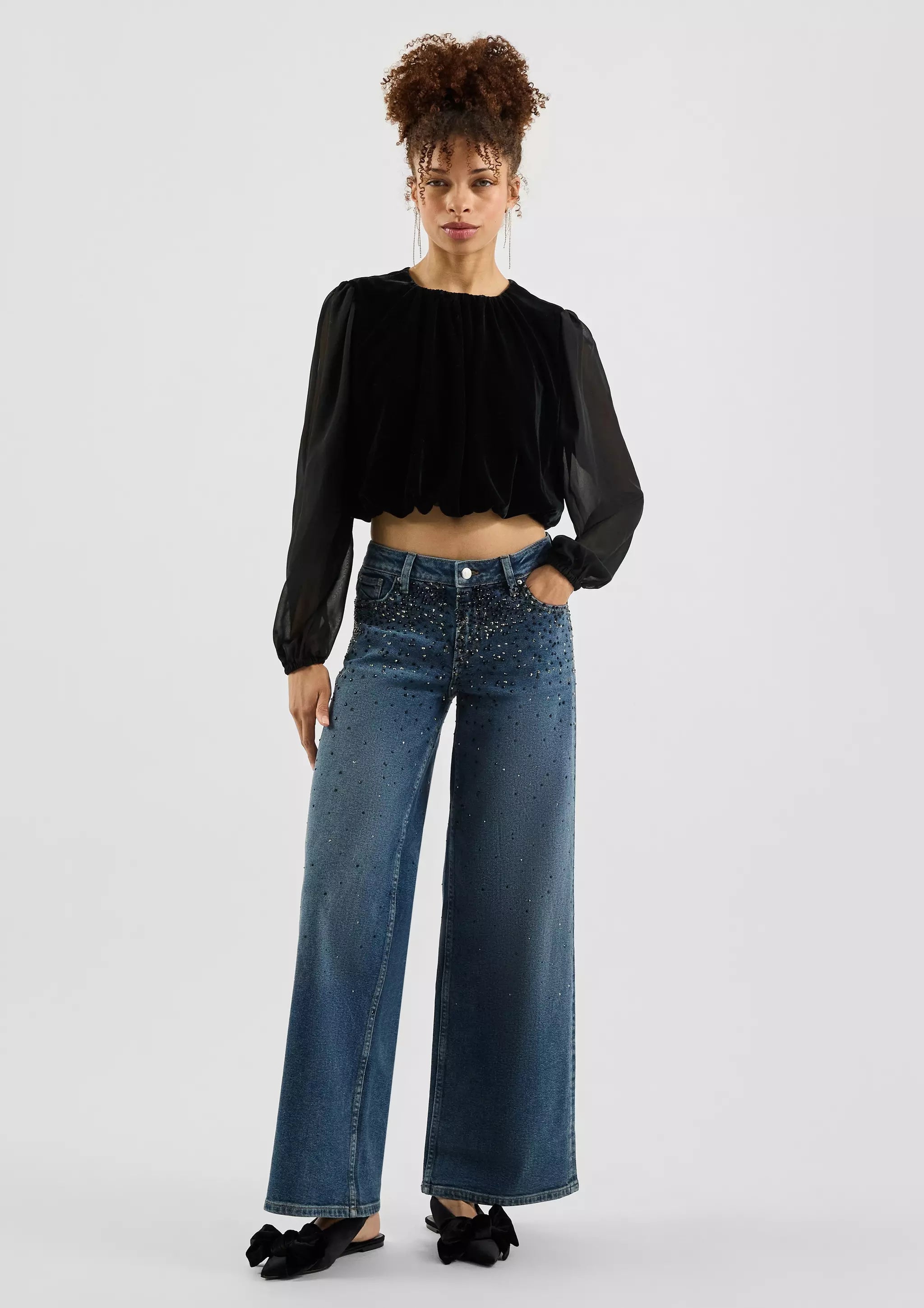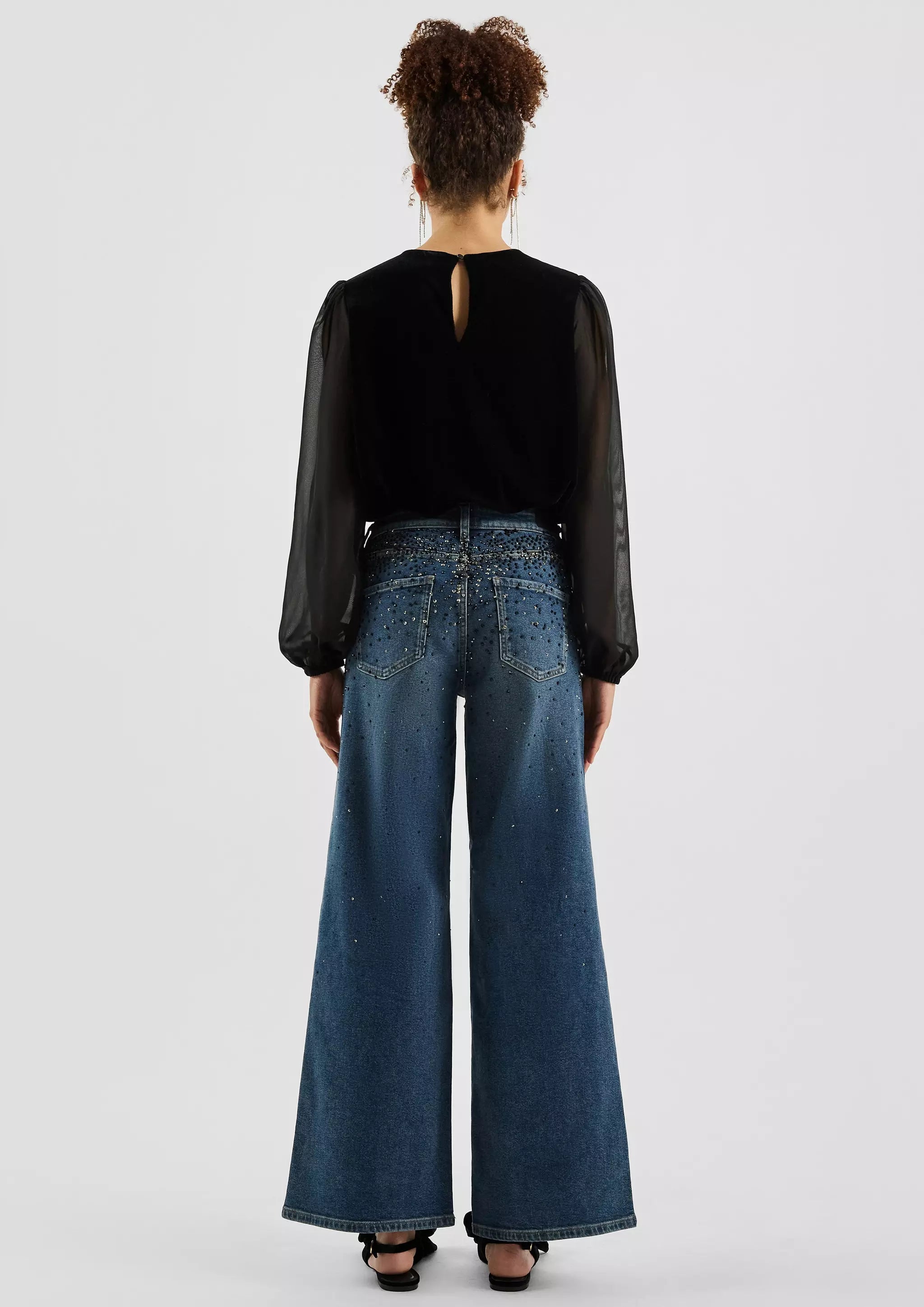 Jeans Catie/Mid Rise/Wide Leg/mit Schmucksteinen