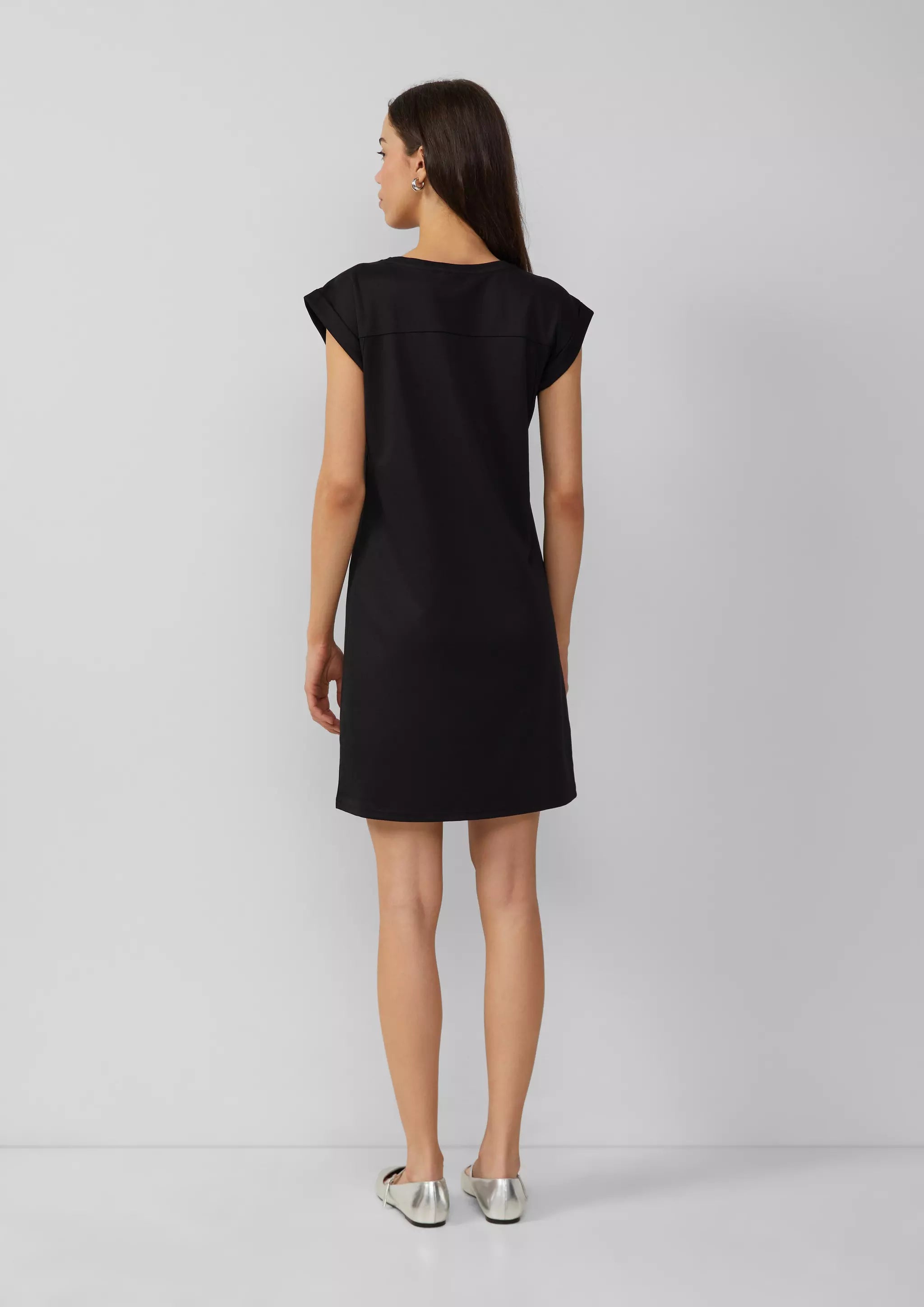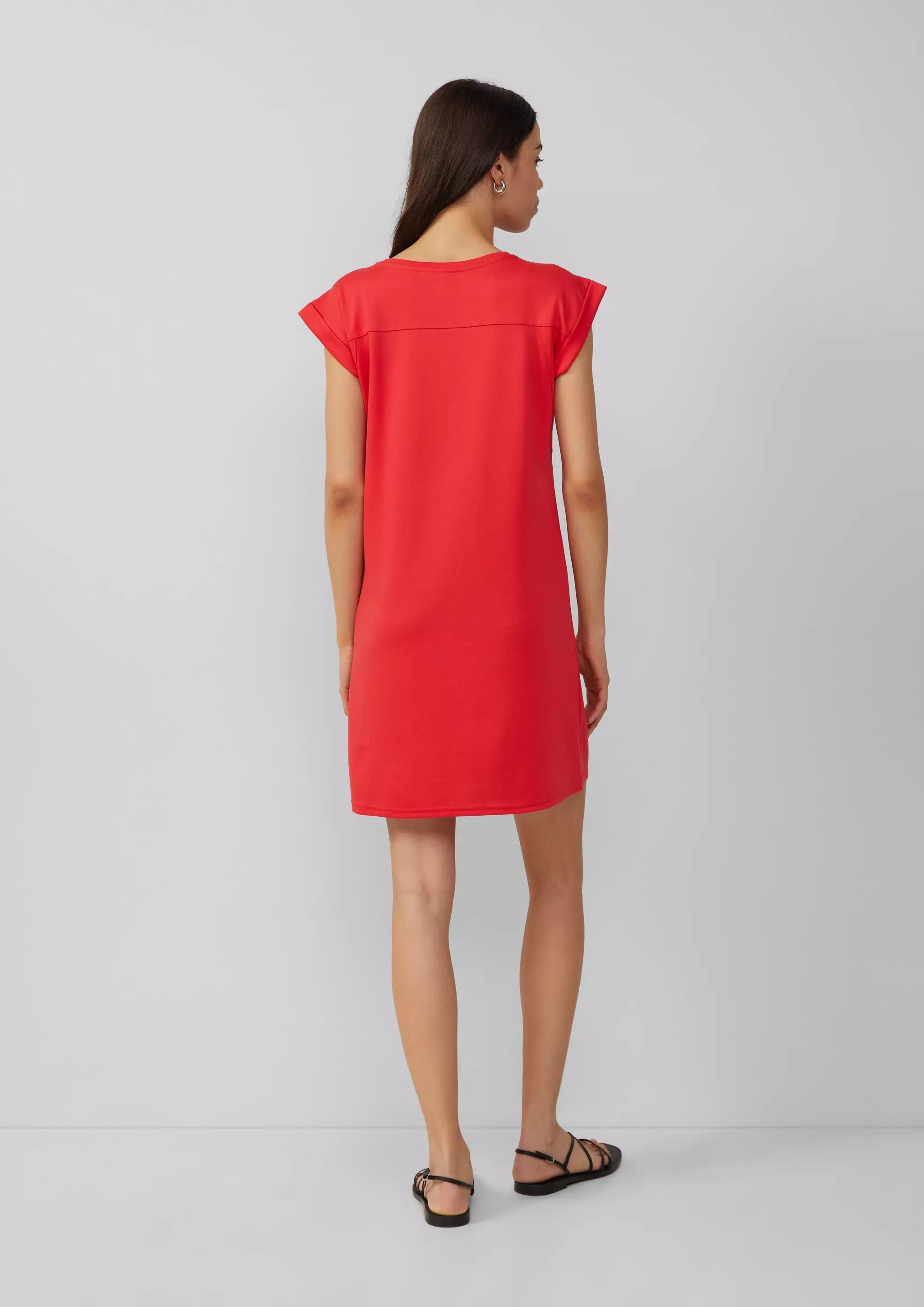 Bereit für einen stylischen Auftritt? Dieses kurze Kleid aus elastischem Interlockjersey ist dein neues Go-to-Piece! Mit überschnittenen Schultern und fixiertem Umschlag passt es perfekt zu deinem entspannten Lifestyle. Feminin, bequem und vielseitig – so machst du jede Situation zu deinem Laufsteg!