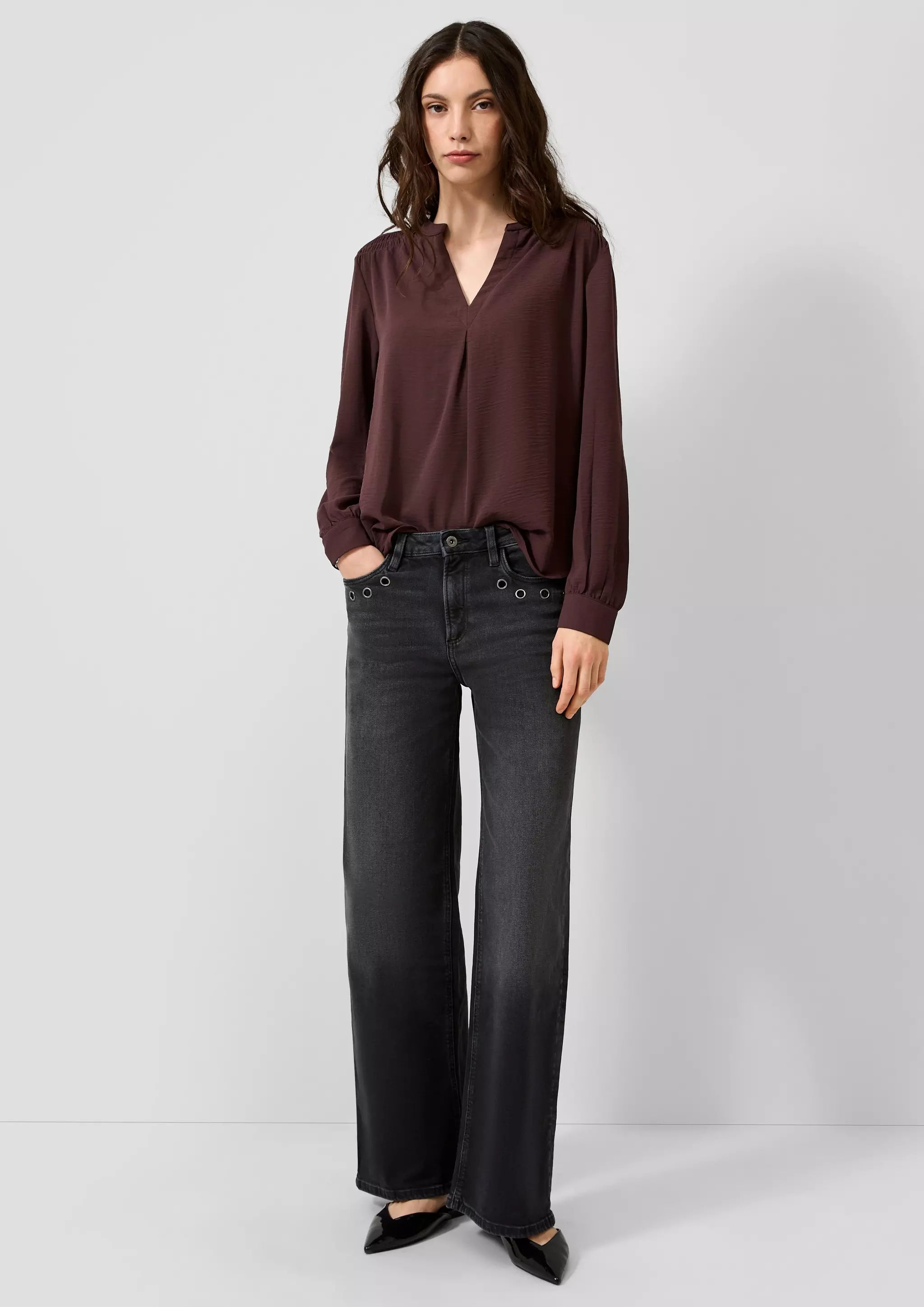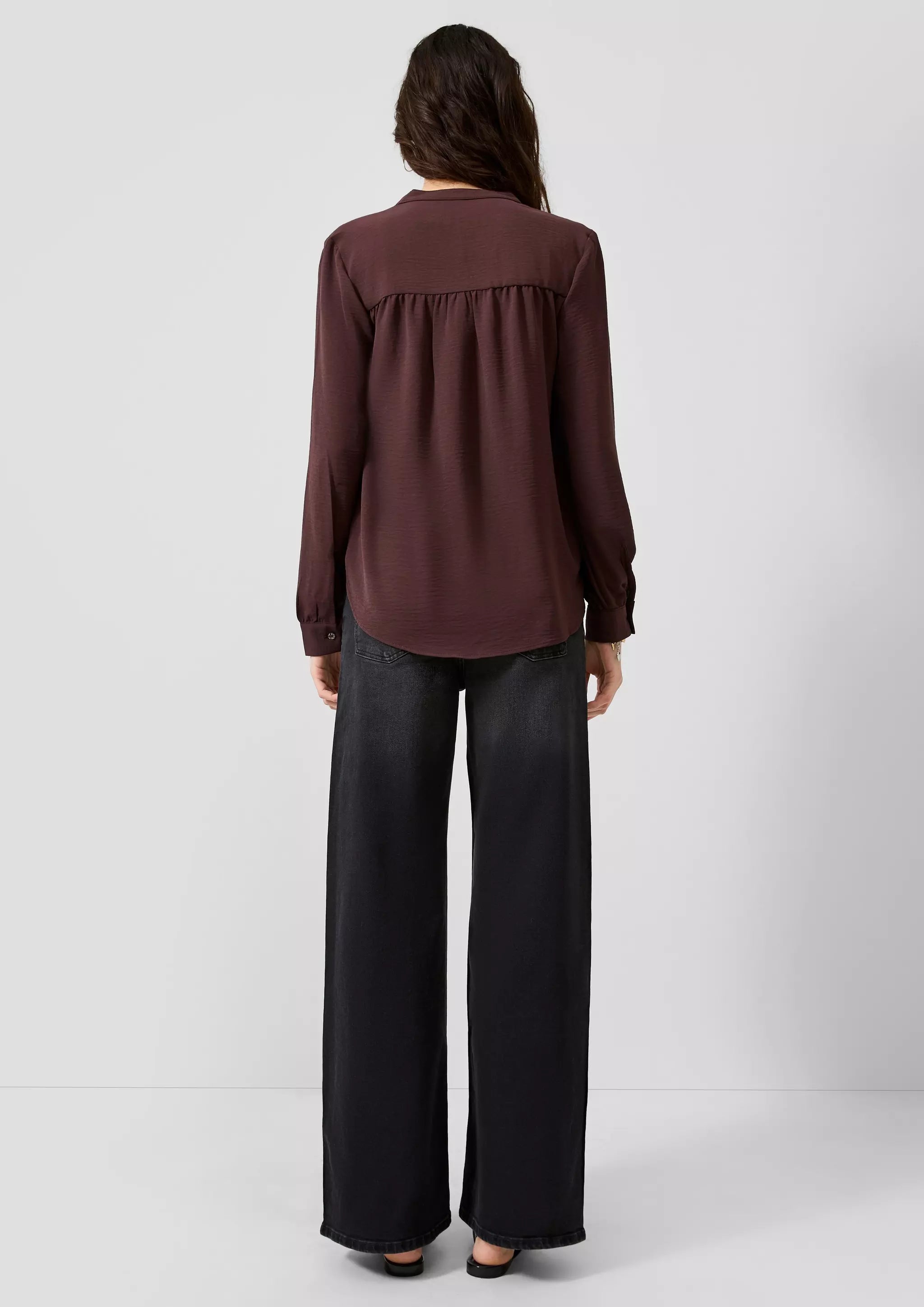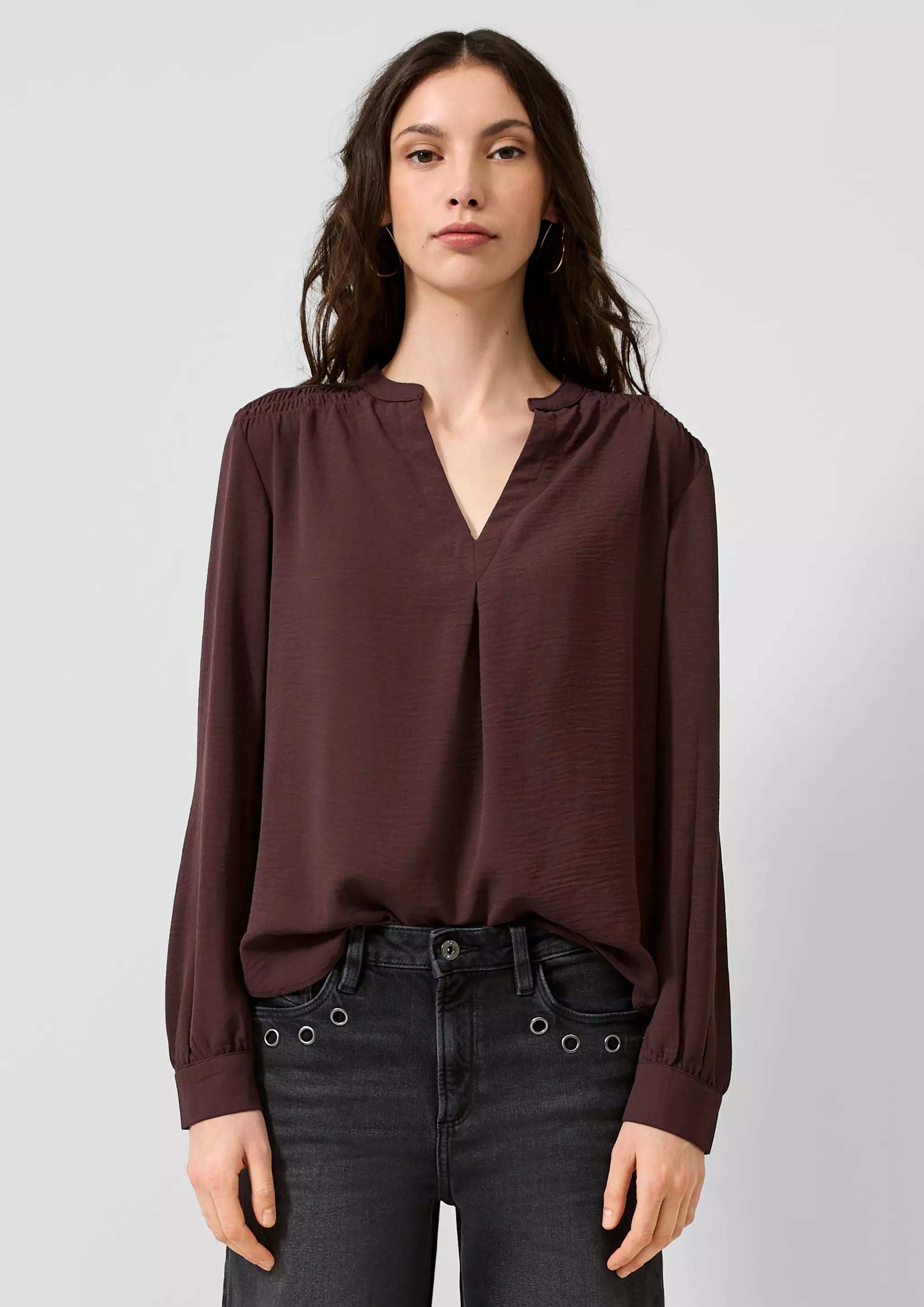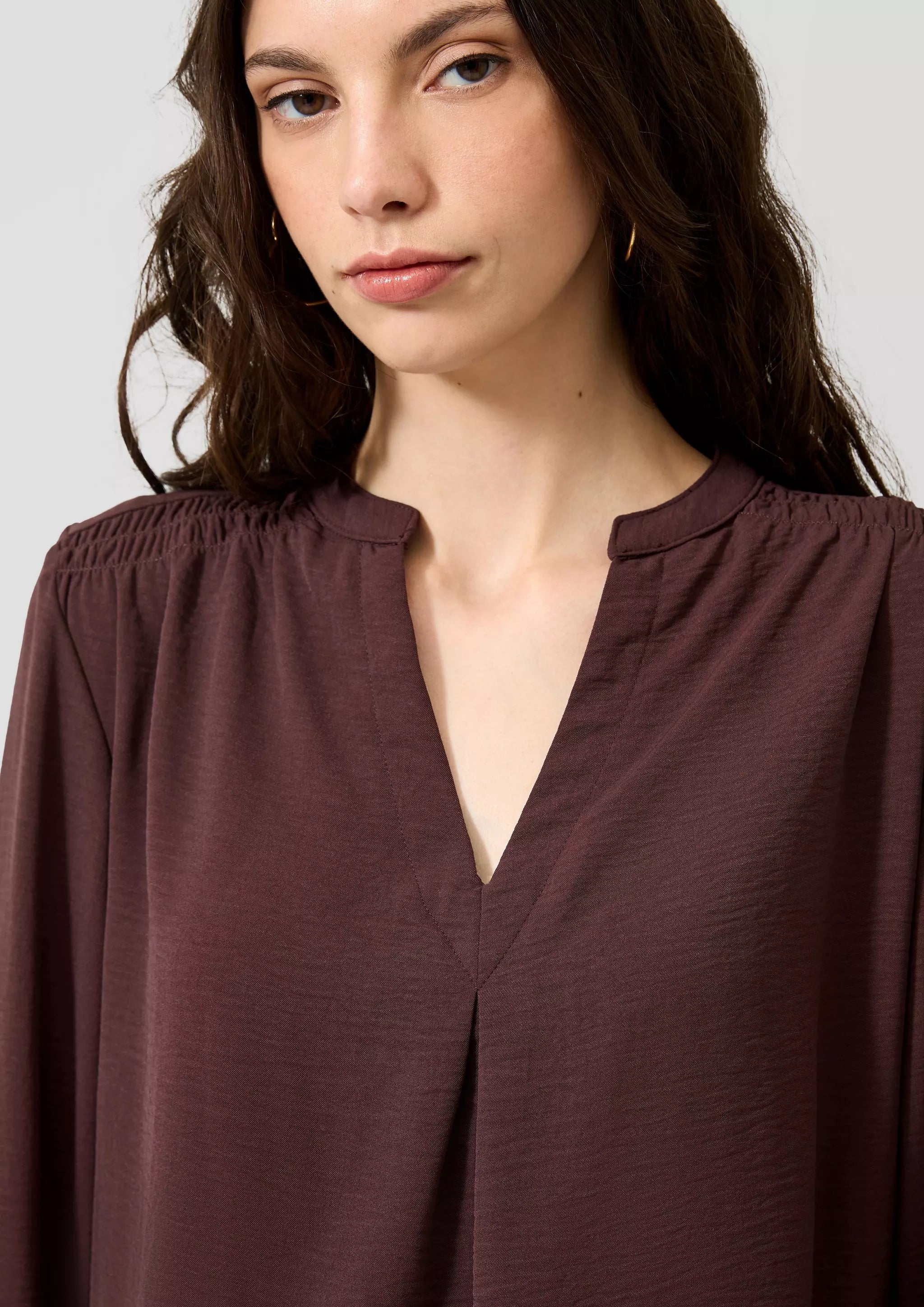 Diese Tunikabluse mit Smok-Detail wird dein neuer Casual-Liebling. Der feminine Schnitt mit Rundhalsausschnitt und abgerundetem Saum passt perfekt zu deinem Alltag. Leichter Crêpe-Stoff sorgt für entspannten Tragekomfort, während Raffungen an den Schultern coole Akzente setzen. Die Regular Fit Passform mit Langarm-Manschetten macht jeden Look mühelos stylisch.