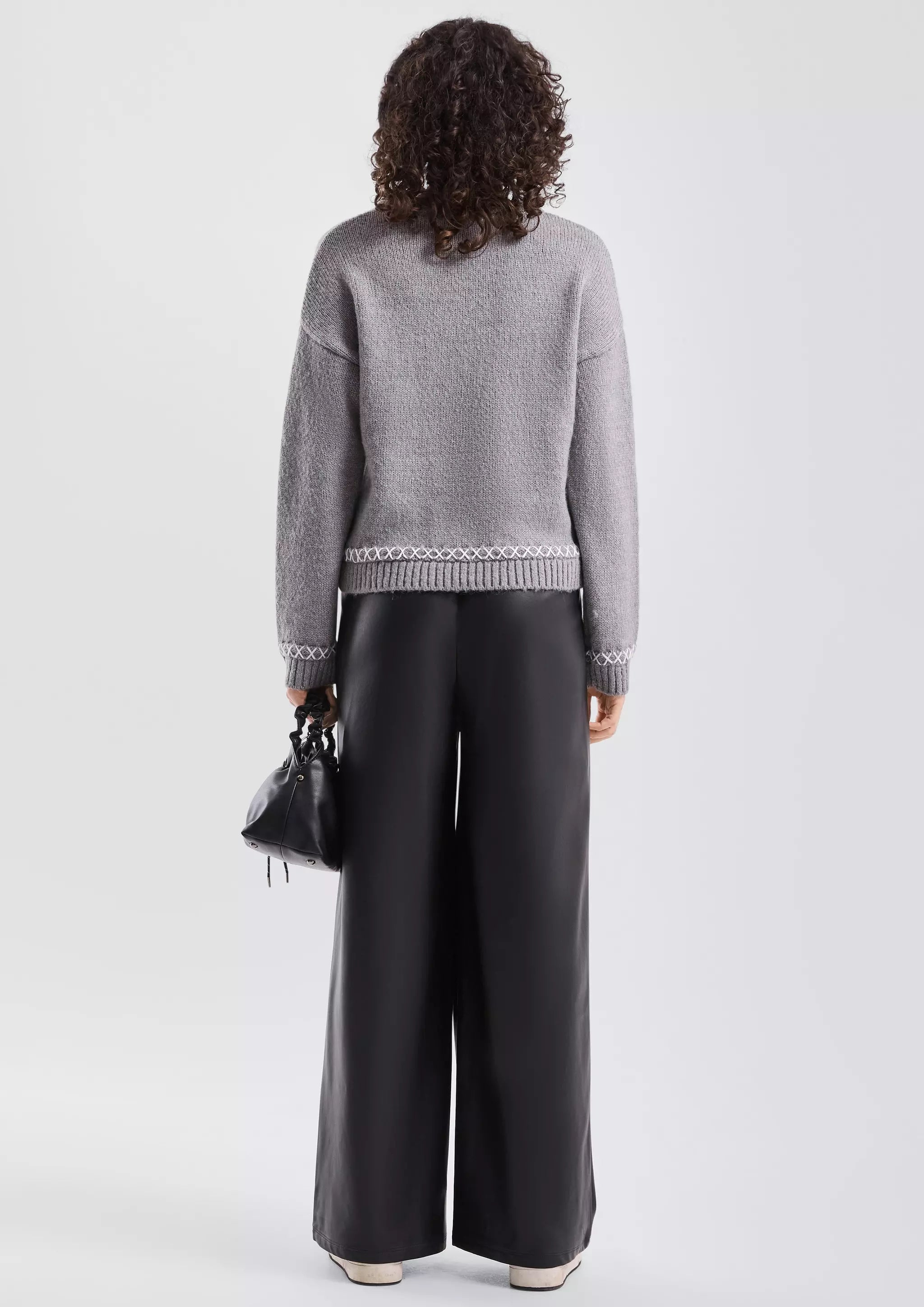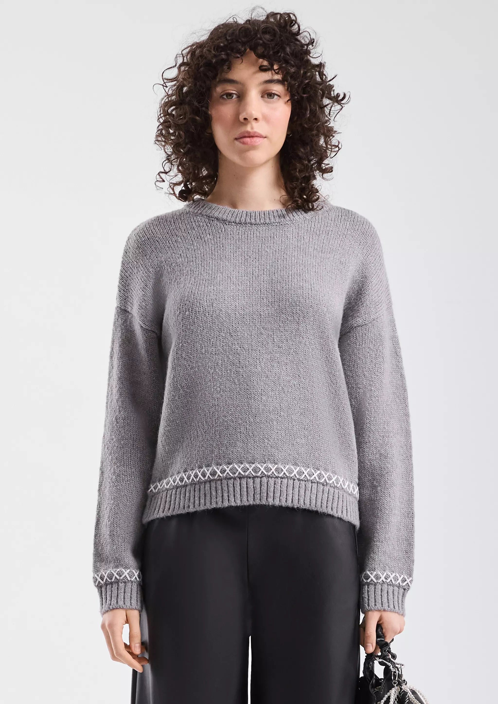 Dieser Strickpullover mit Rundhalsausschnitt bringt frischen Wind in deine Garderobe. Die coolen Stickelemente am Saum setzen stylische Akzente, während die überschnittenen Schultern für lässigen Komfort sorgen. Die Regular Fit Passform mit Ziernähten macht ihn zum perfekten Begleiter – ob beim Chillen mit Freunden oder für entspannte City-Days.