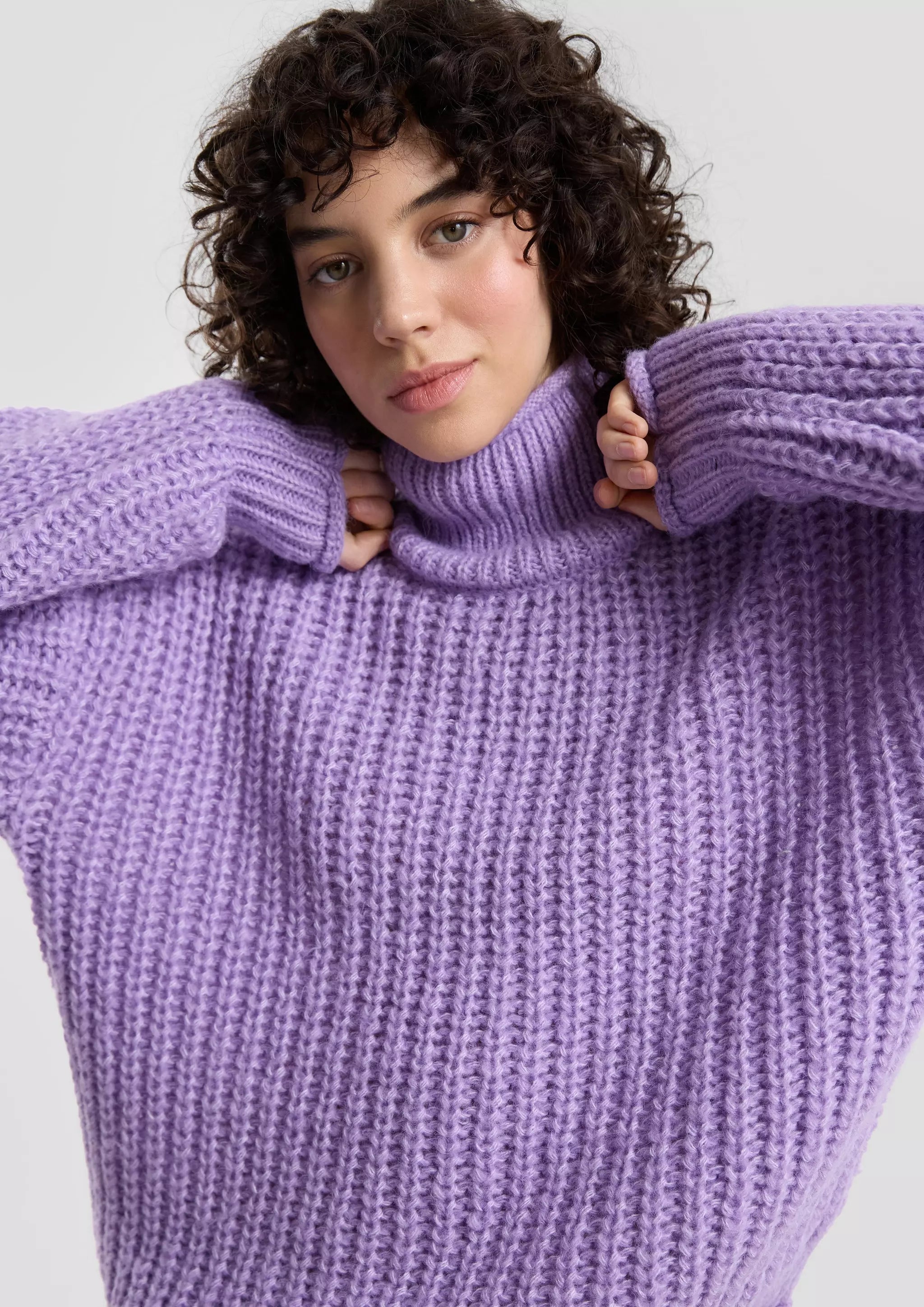 Kuschelig durch den Tag? Dieser flauschige Oversize-Pullover mit Rollkragen macht's möglich. Der Loose Fit und die überschnittenen Schultern geben dir den entspannten Look, den du liebst. Perfekt für chillige Café-Dates oder gemütliche Home-Office-Sessions. Der weiche Strick mit Rollsaum sorgt für den ultimativen Wohlfühlfaktor – egal wo du gerade unterwegs bist.