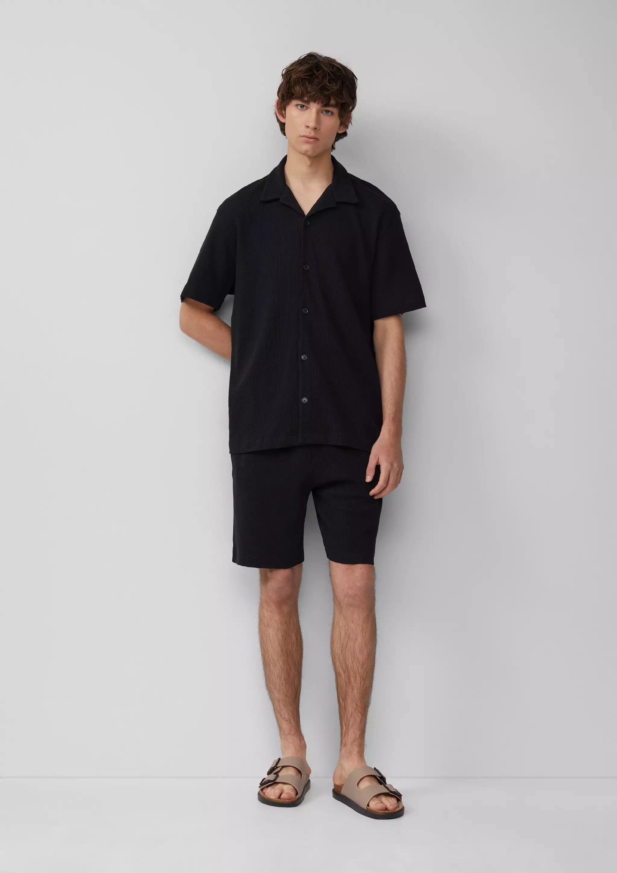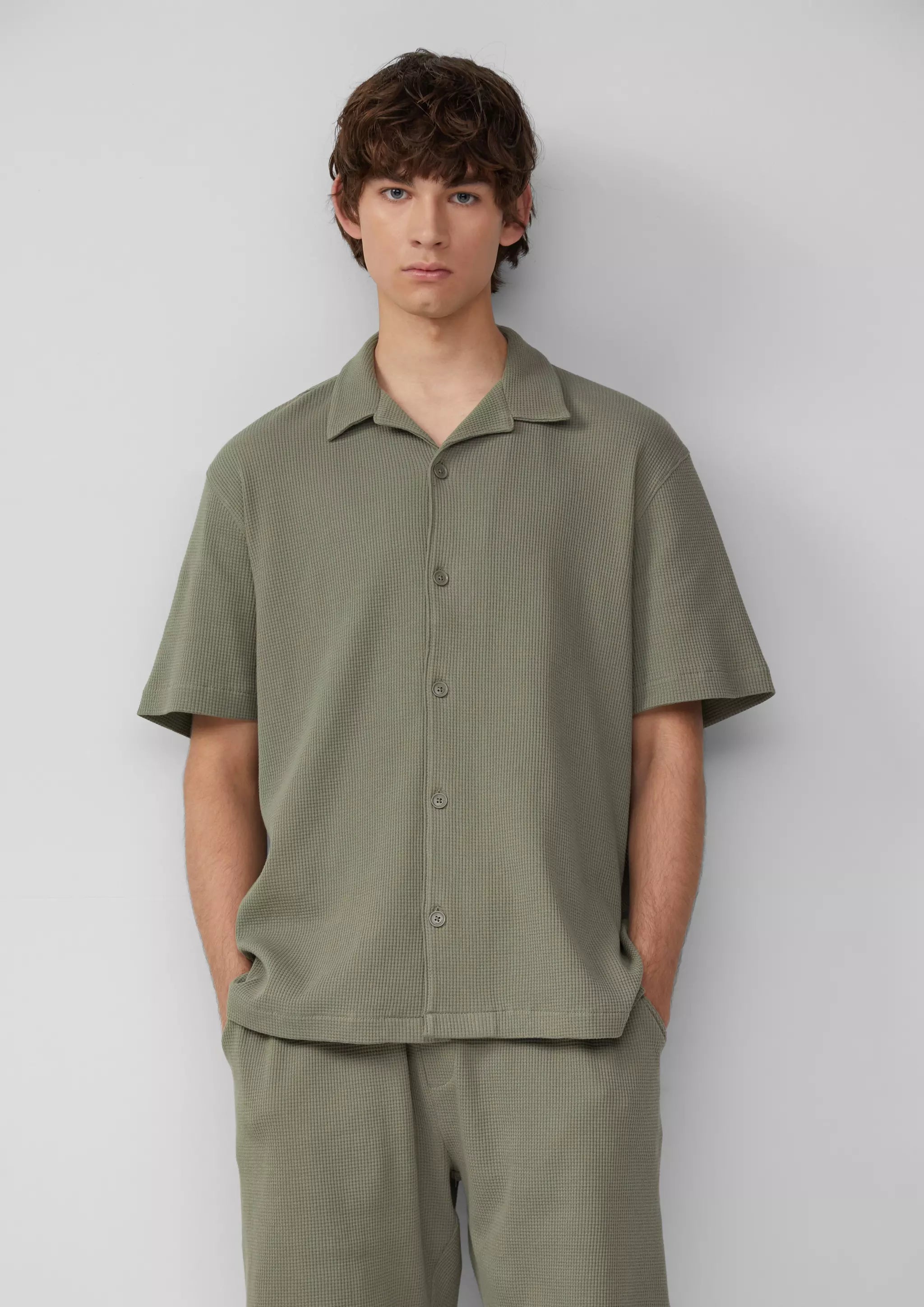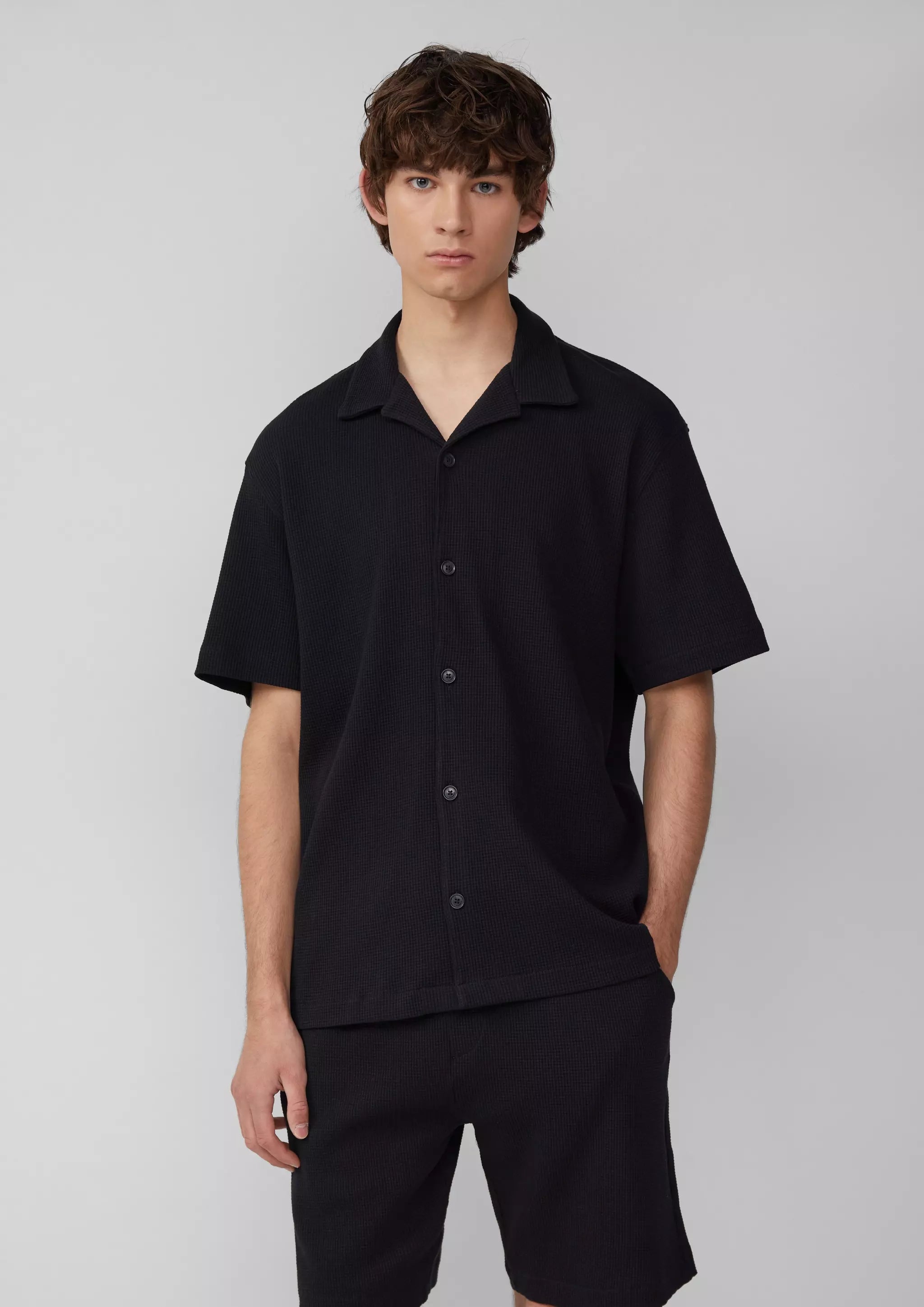 Dein neuer Sommer-Begleiter: Cooles Resort-Fit-Hemd aus Waffelpiqué-Jersey. Baumwolle sorgt für Tragekomfort, der Resort Fit für lässige Vibes. Perfekt für chillige Tage und Nächte. Stylen und losgehen!