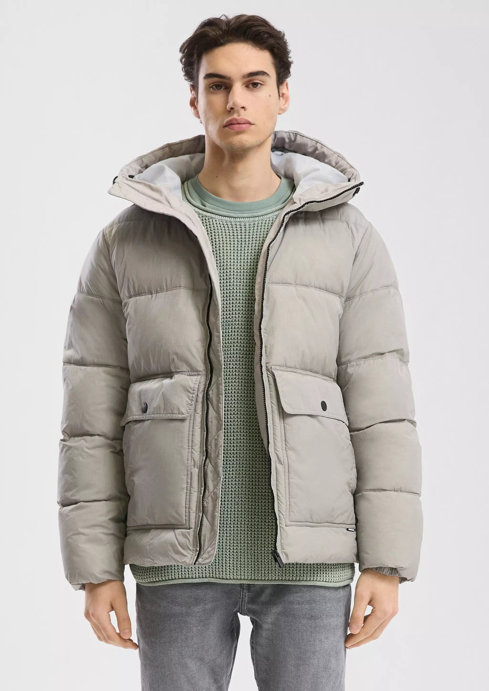 Pufferjacke in Crinkle-Nylon mit Waschoptik