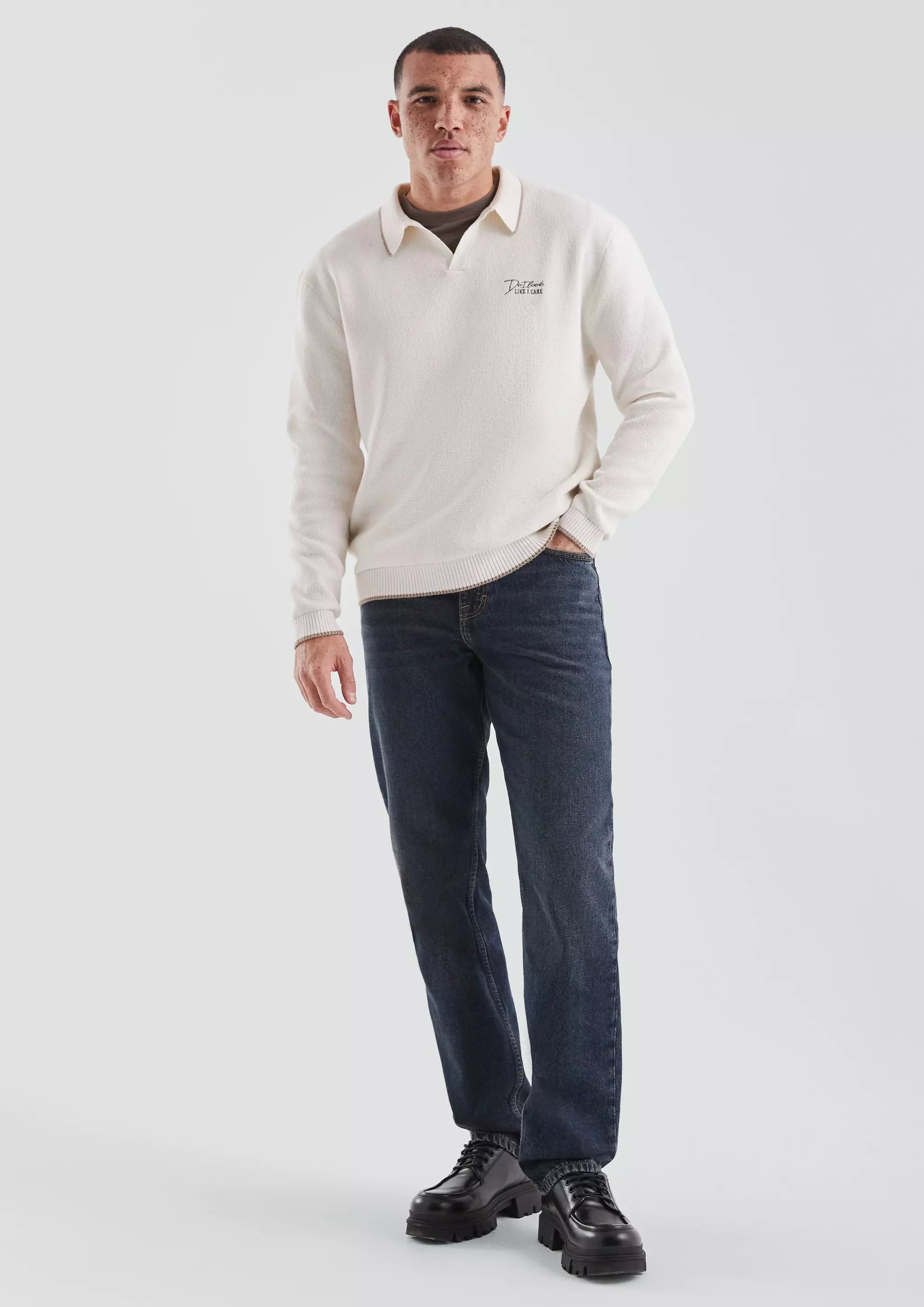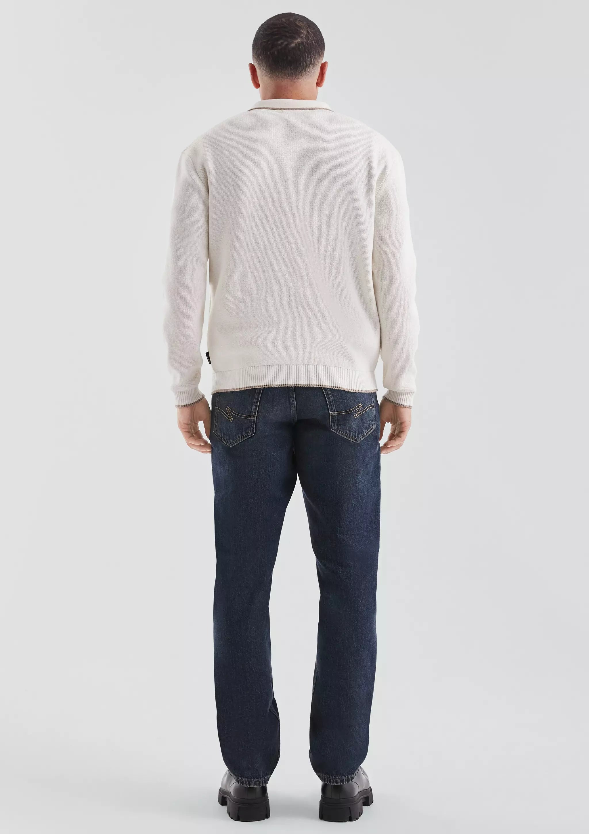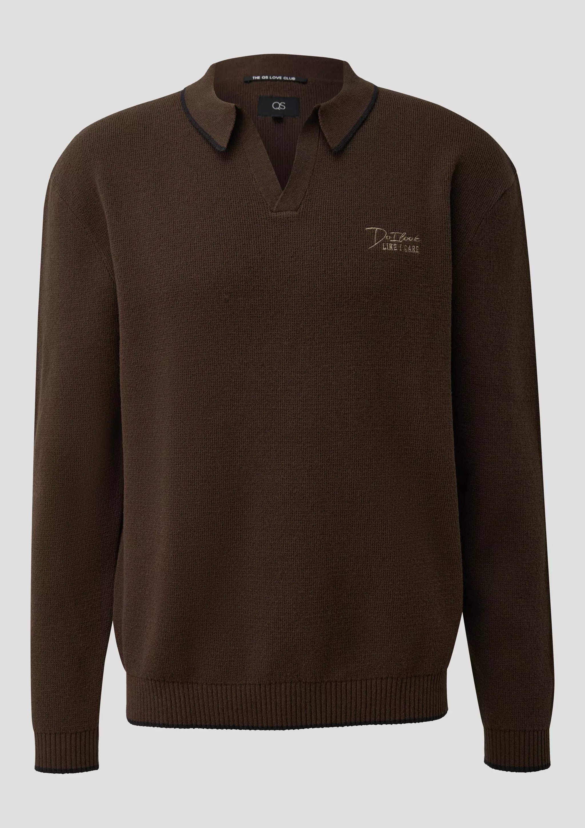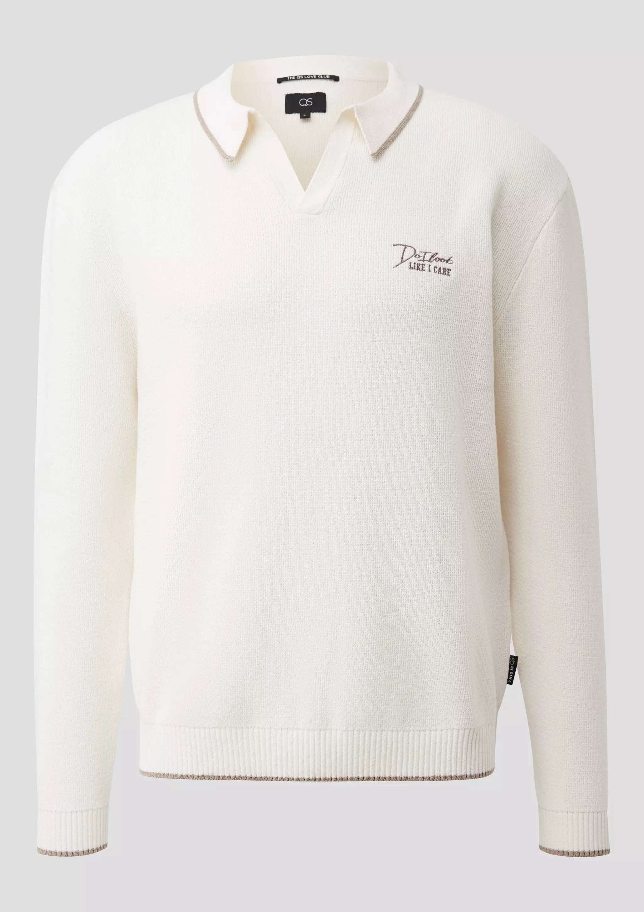 Dieser Strickpullover aus einer Baumwollmischung ist gemütlich und mühelos stilvoll. Die lockere Passform und der Polokragen mit V-Ausschnitt sorgen für Lässigkeit, während Rippbündchen an Ärmeln und Saum für einen klassischen Touch sorgen. Perfekt für Ihre entspannten Momente im Alltag.