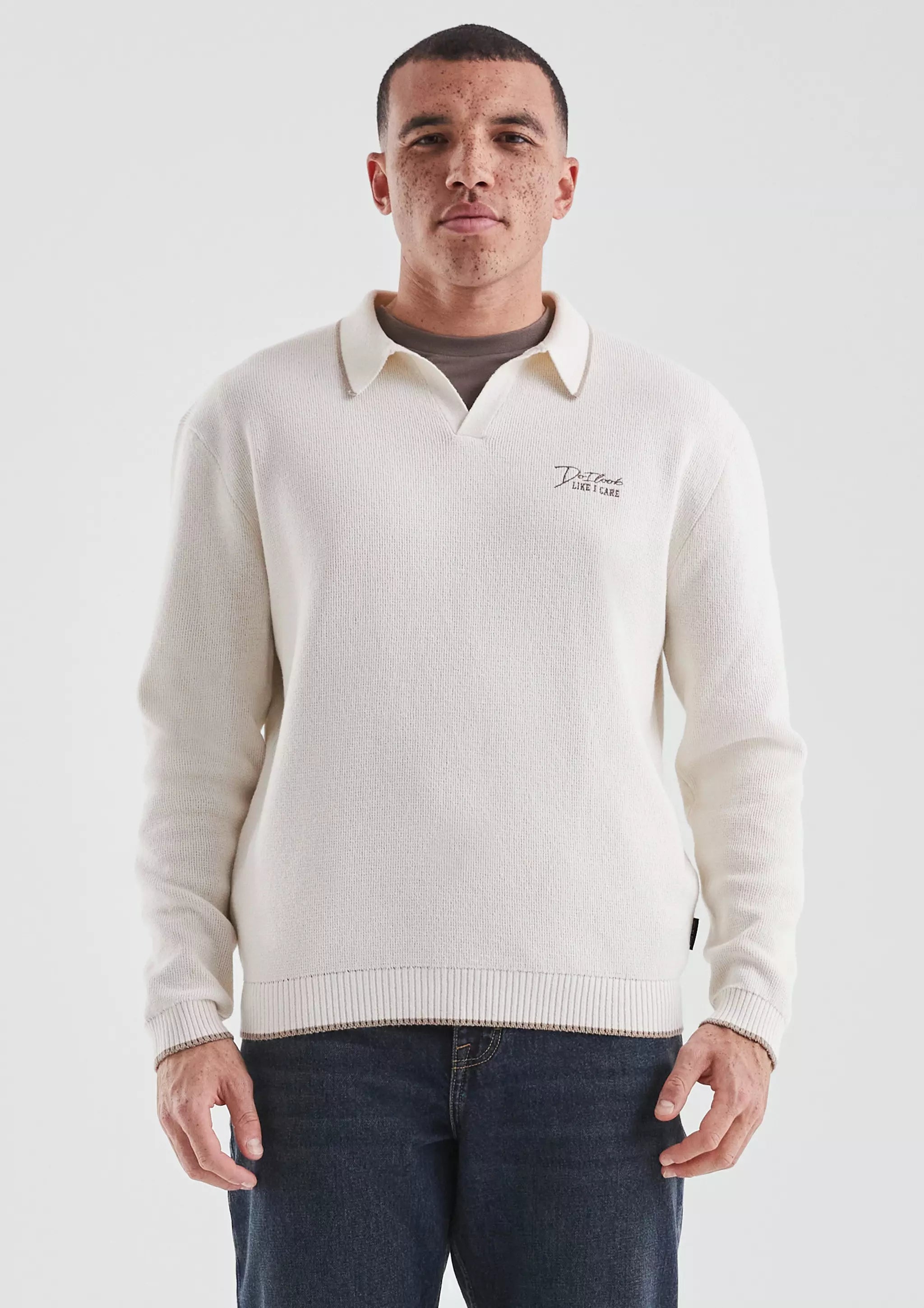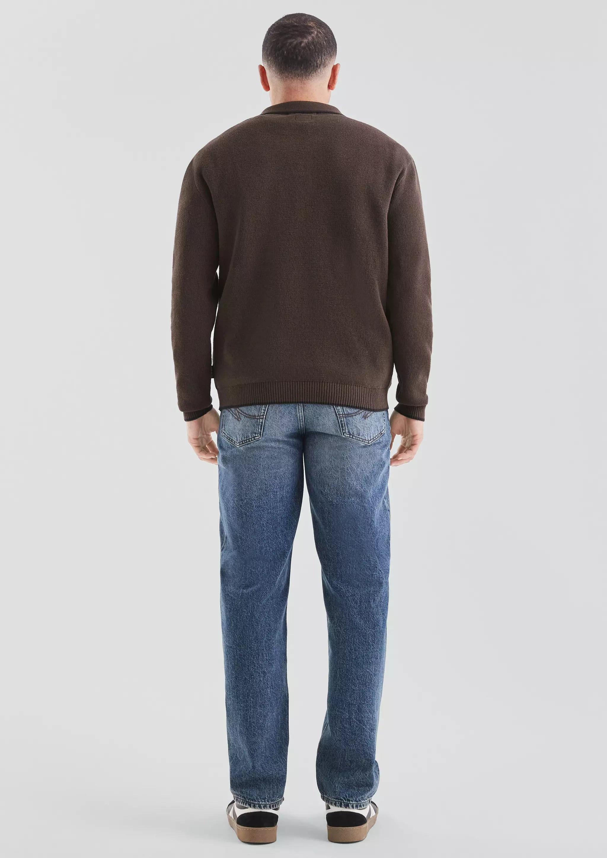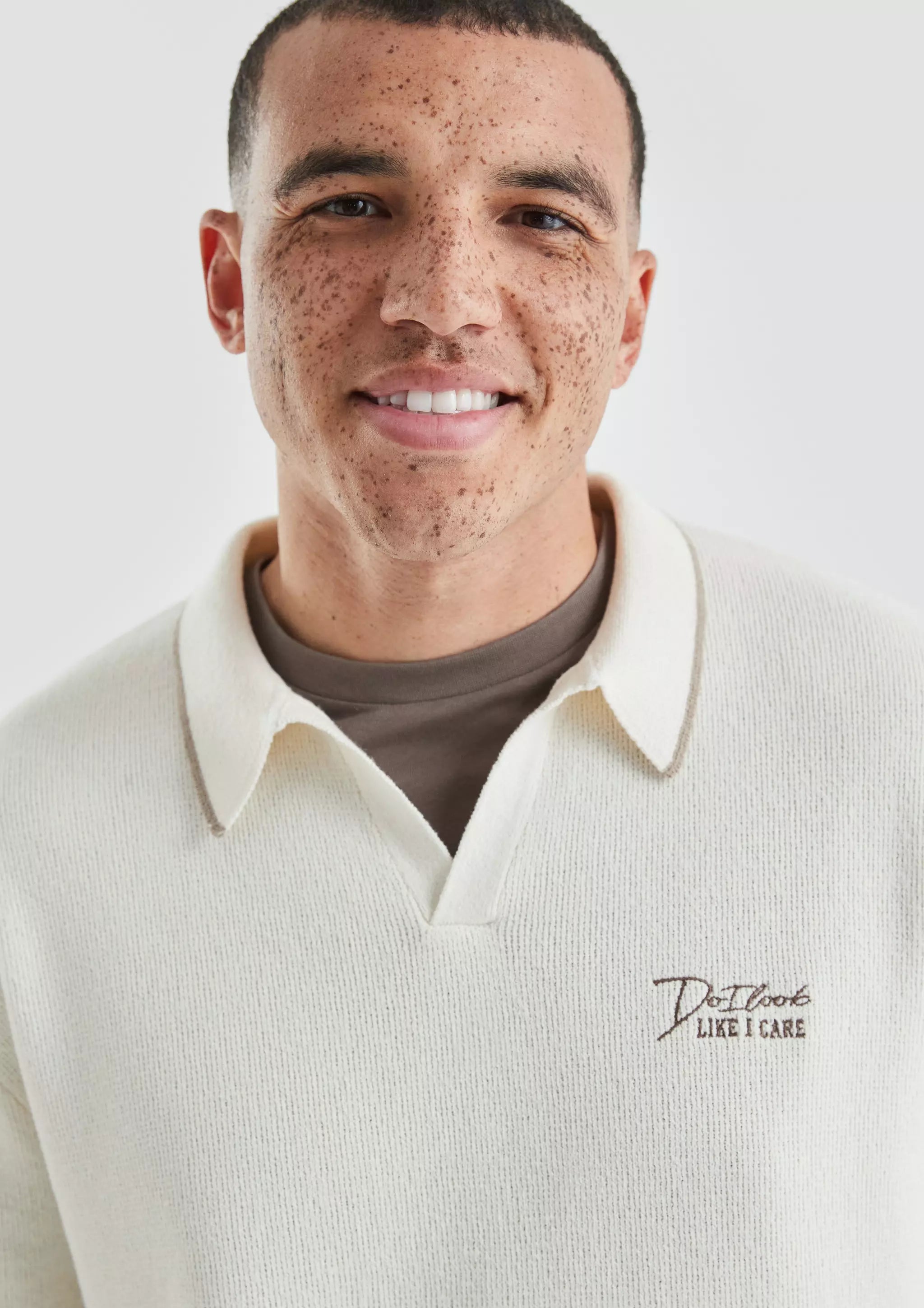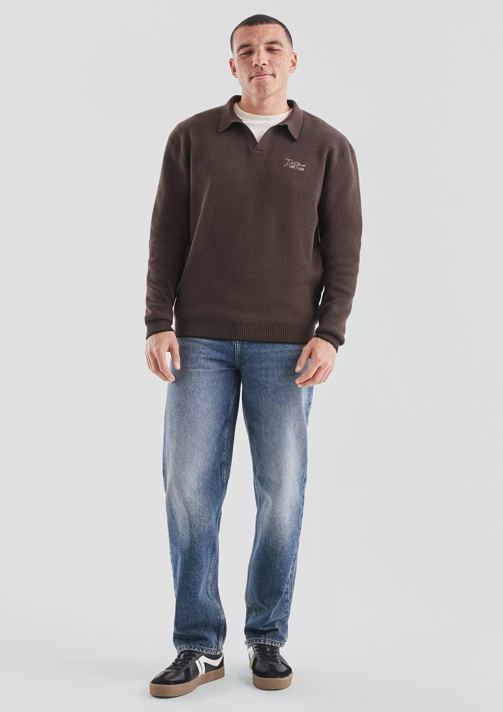 Dieser Strickpullover aus einer Baumwollmischung ist gemütlich und mühelos stilvoll. Die lockere Passform und der Polokragen mit V-Ausschnitt sorgen für Lässigkeit, während Rippbündchen an Ärmeln und Saum für einen klassischen Touch sorgen. Perfekt für Ihre entspannten Momente im Alltag.