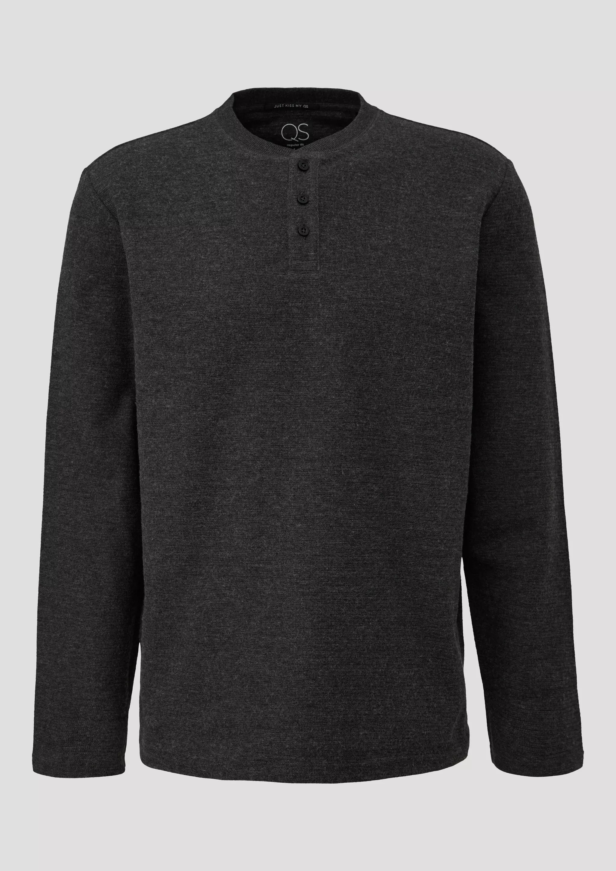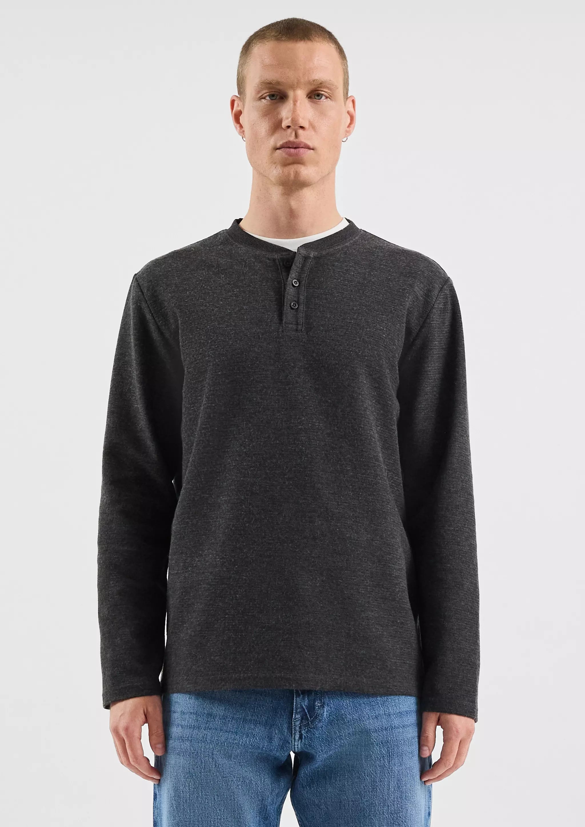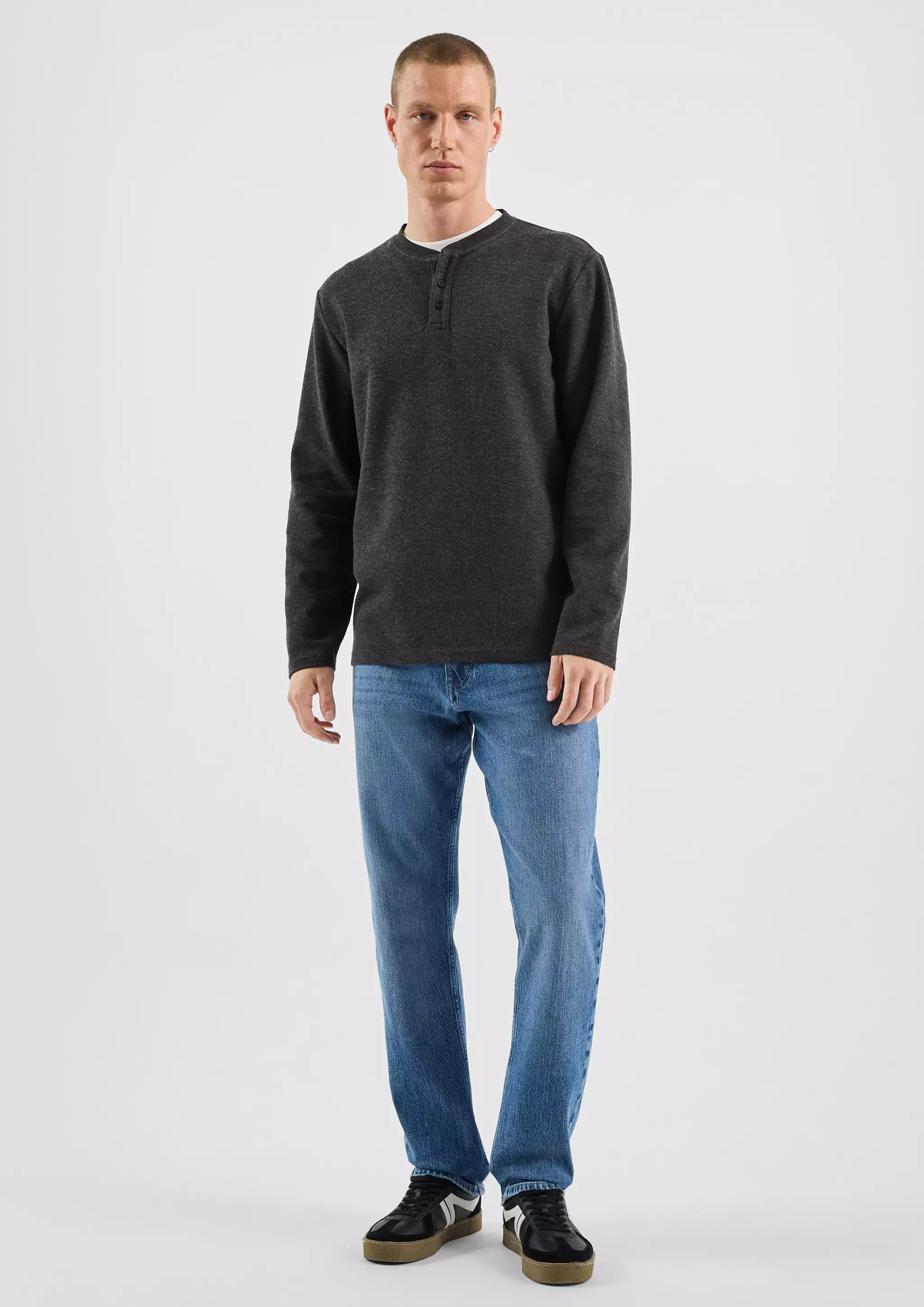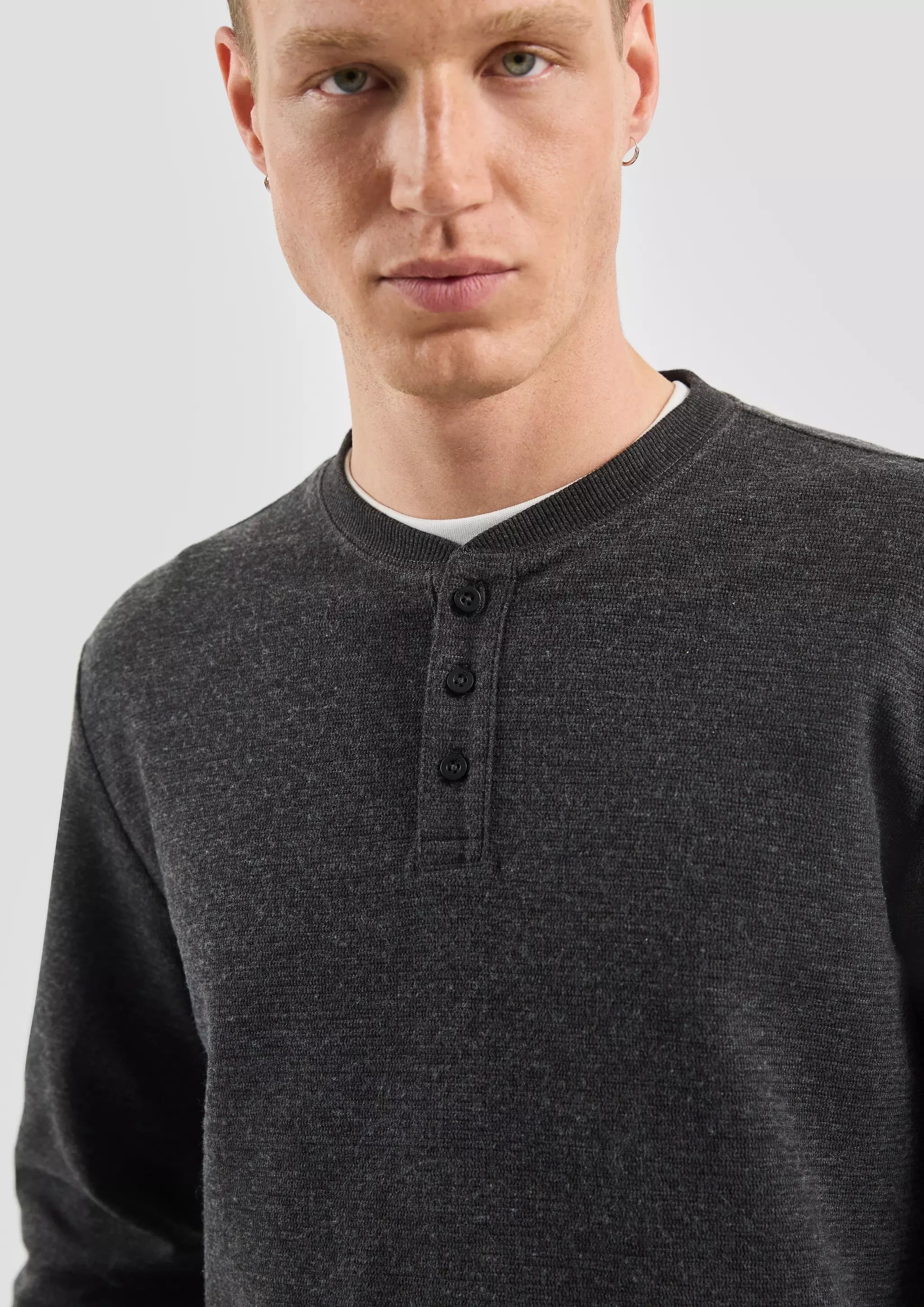 Dein neues Henley-Longsleeve im lässigen Strukturjersey bringt frischen Style in deinen Look. Die Regular Fit Passform sitzt entspannt und macht jeden Move mit – ob beim Chillen mit Freunden oder unterwegs in der City. Das strukturierte Jersey-Material fühlt sich angenehm an und sieht einfach gut aus. Perfekt für alle, die unkomplizierten Style lieben.