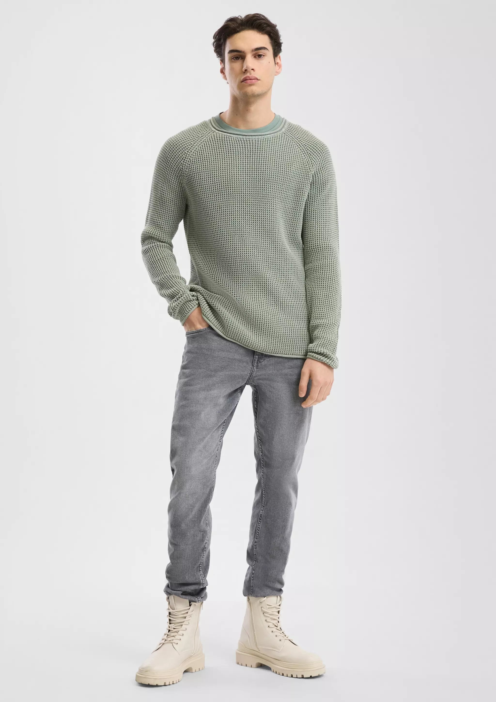 Lässiger Grobstrickpullover für deinen coolen Alltag! Mit Wascheffekt und Rollkanten an Ärmeln, Ausschnitt und Saum bist du super entspannt unterwegs. Der Regular Fit sitzt perfekt und der Strickkragen hält dich warm.