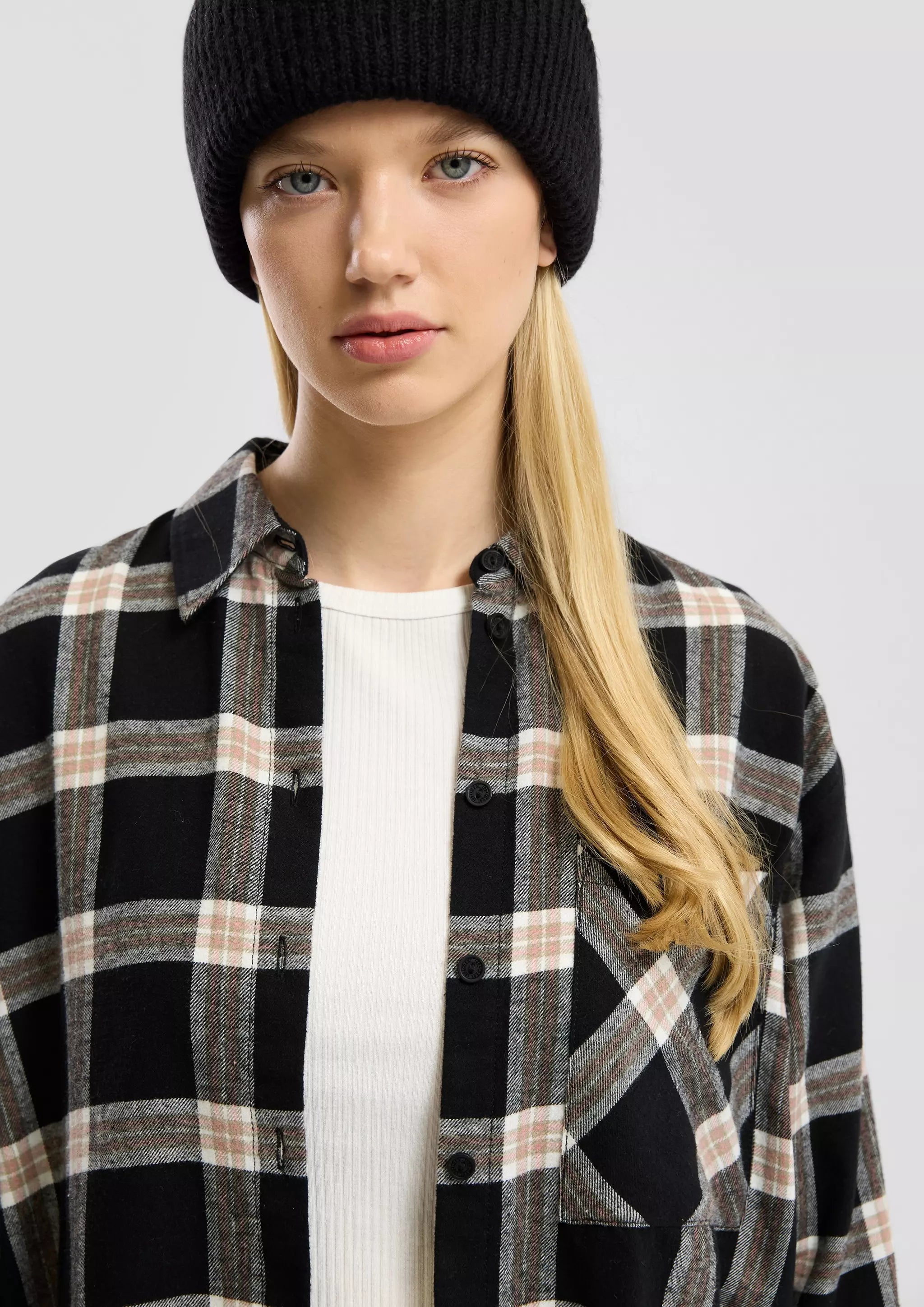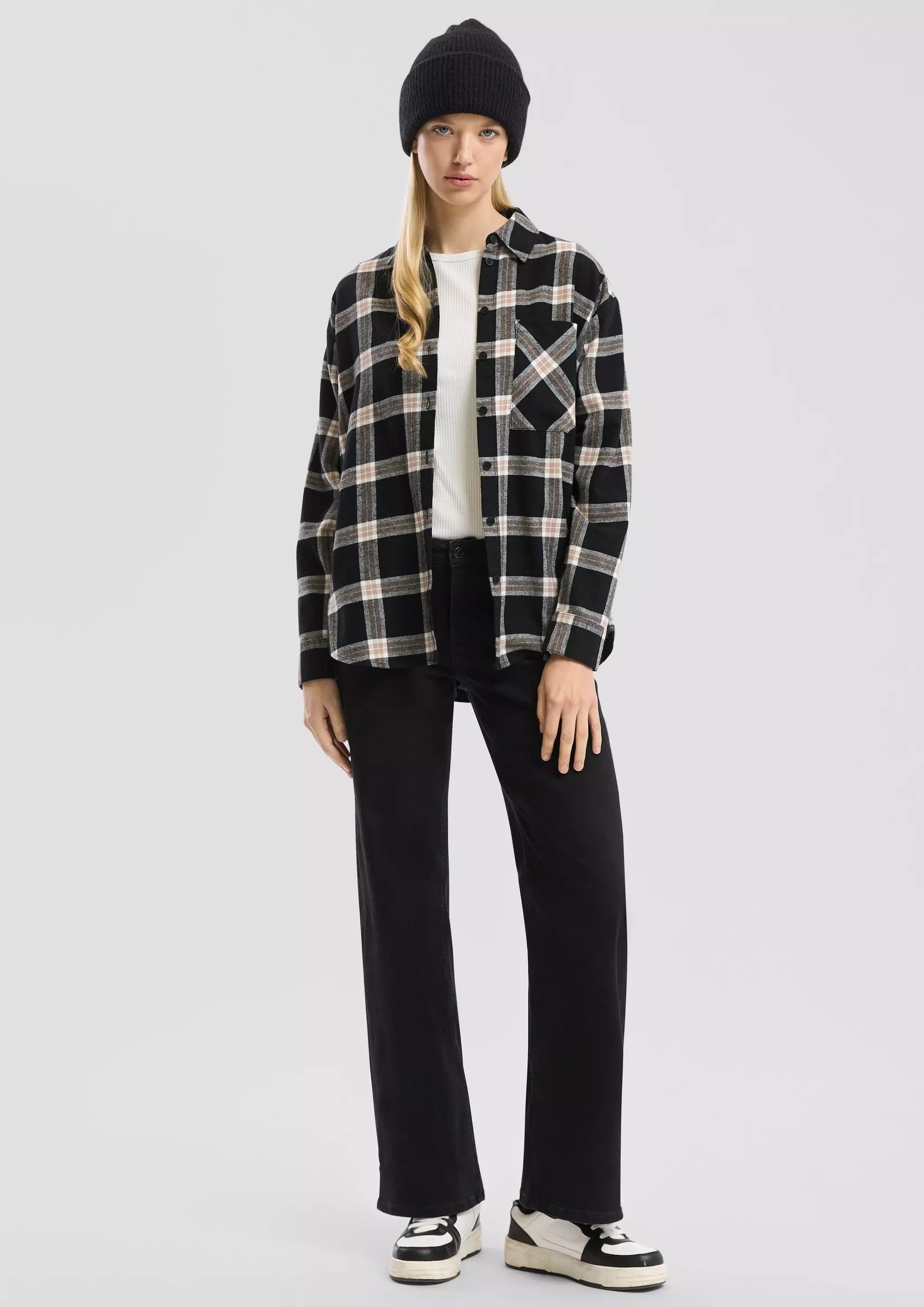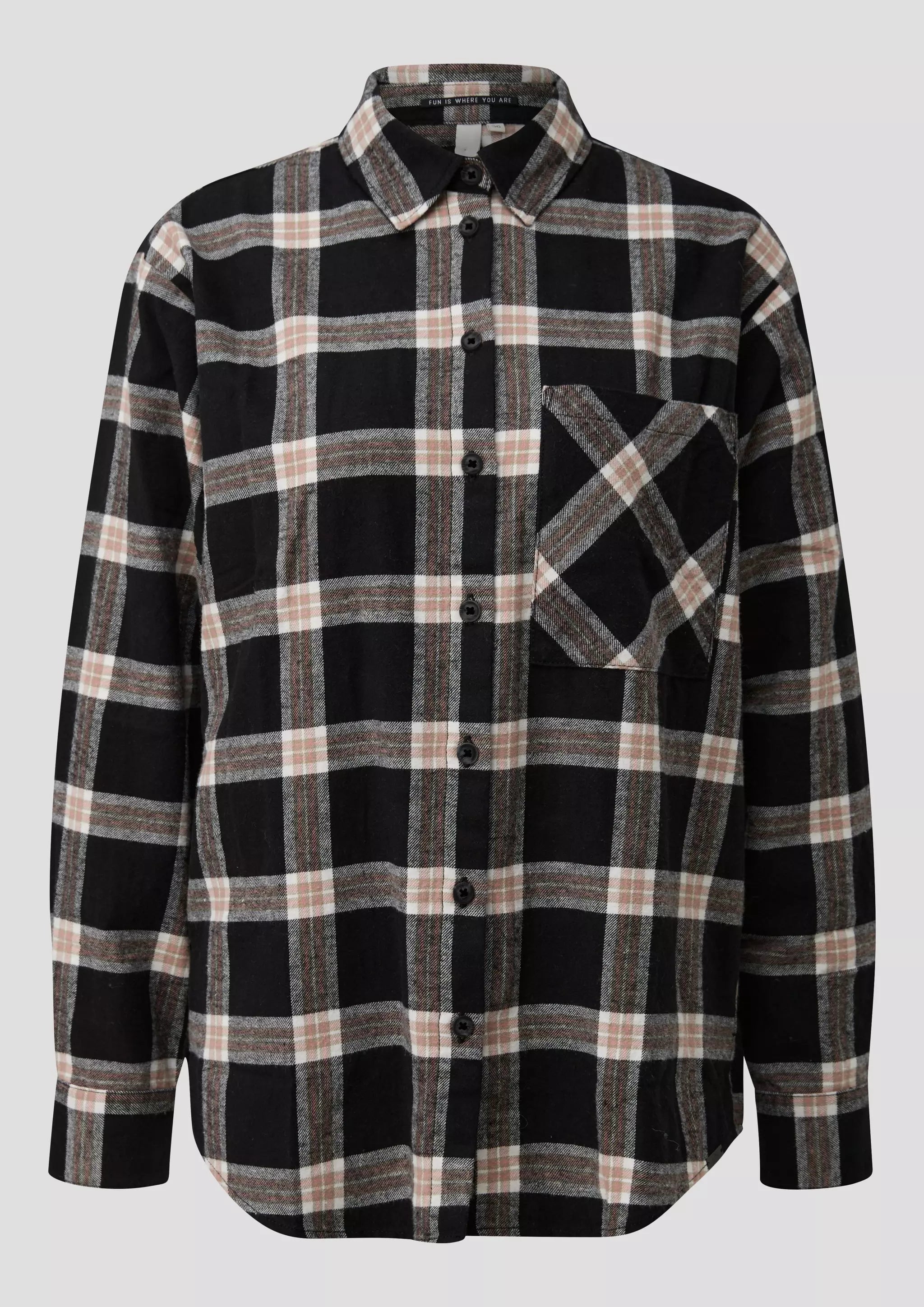 Trendiges Flanellhemd für coole Momente! Kuscheliger Stoff, lässiger Loose Fit und praktische Brusttasche machen es zum perfekten Begleiter für deinen Alltag. Feminine Details und abgerundeter Saum sorgen für einen stylischen Look.