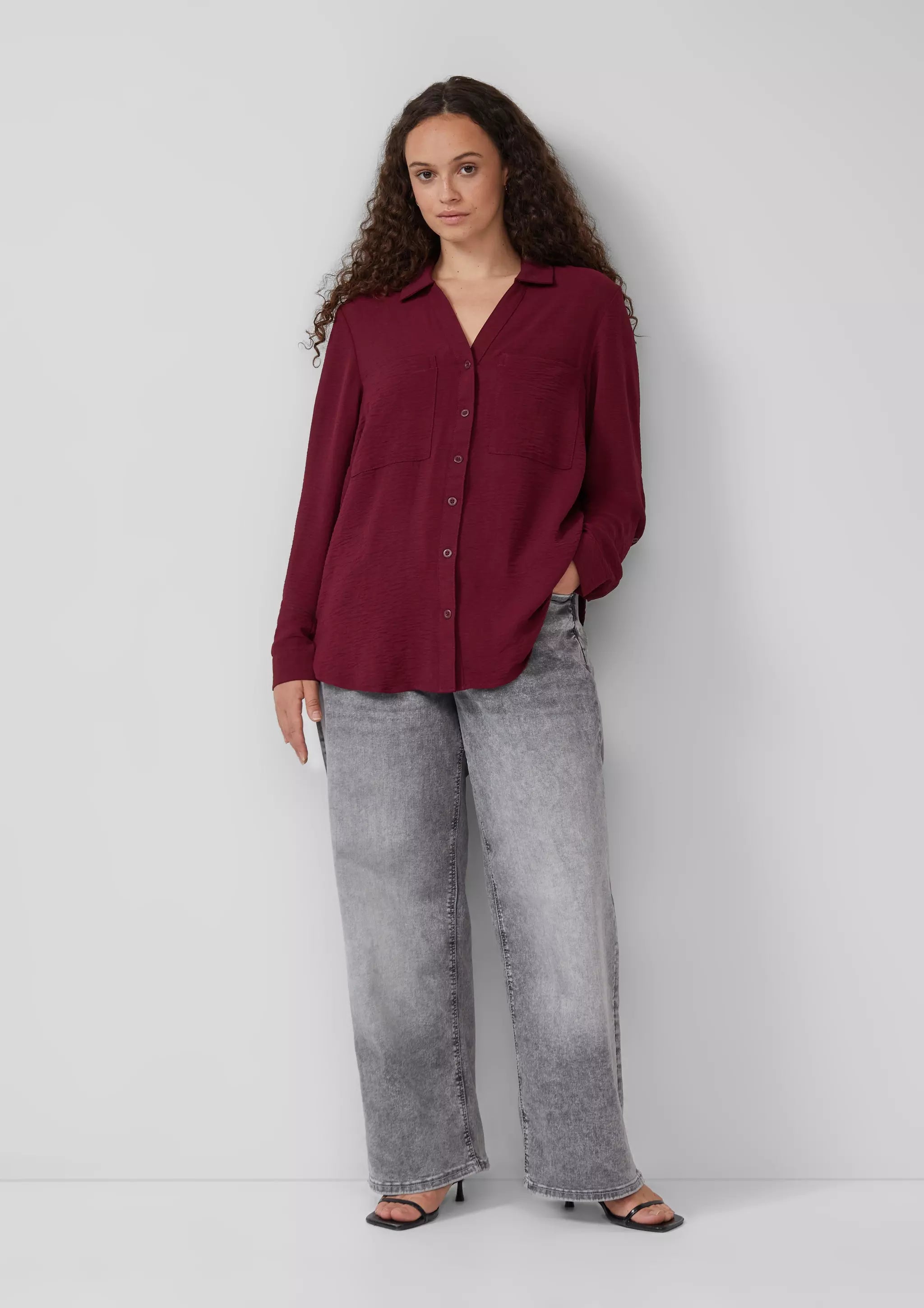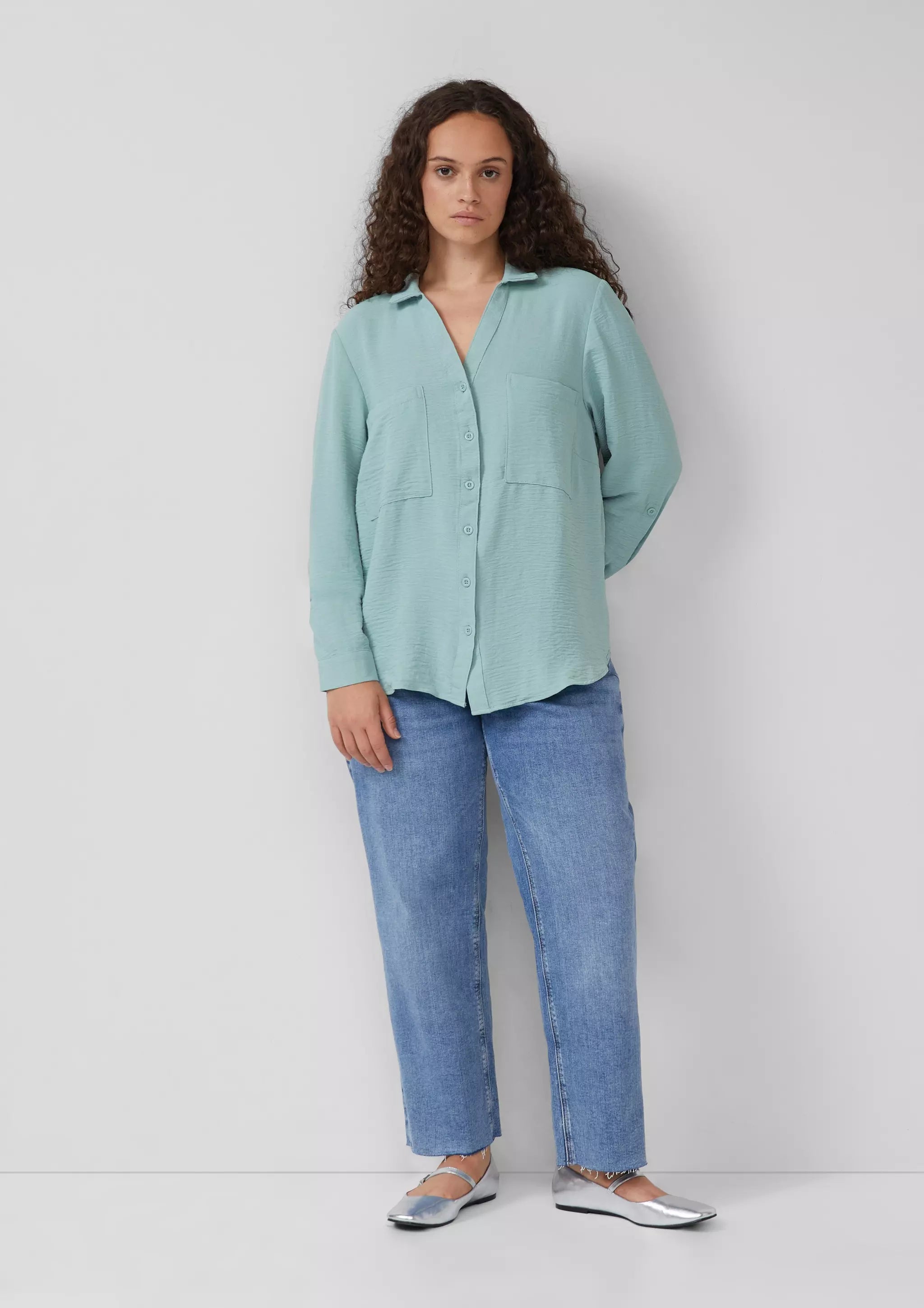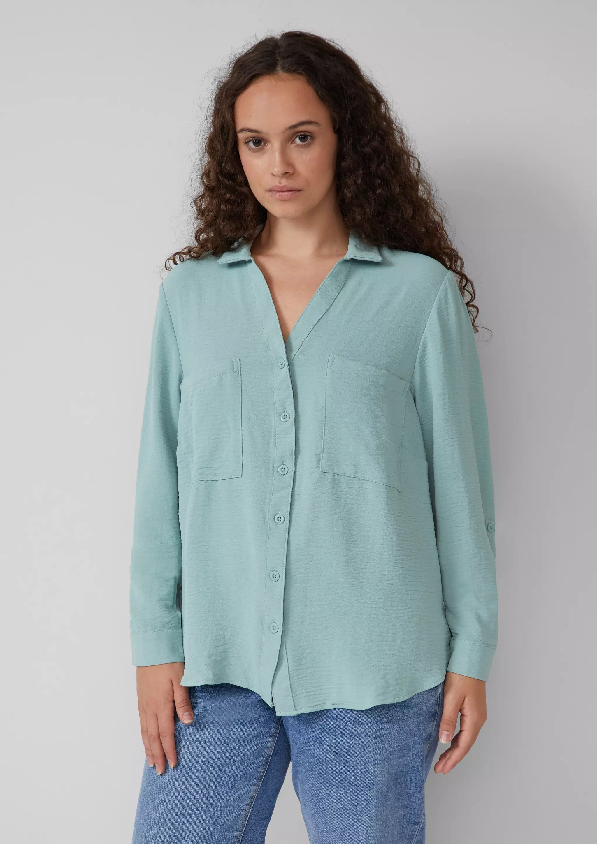 Crêpebluse mit Turn-up-Ärmel