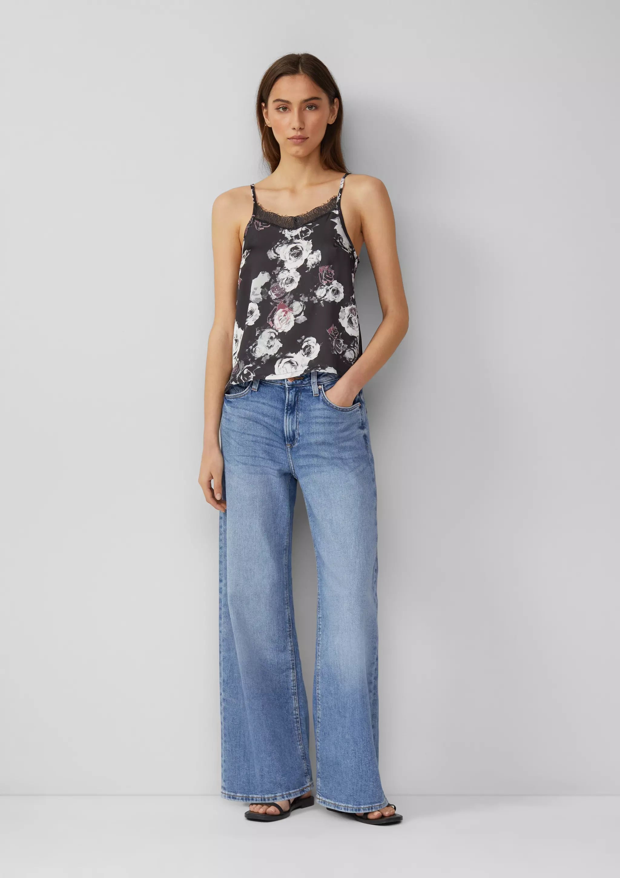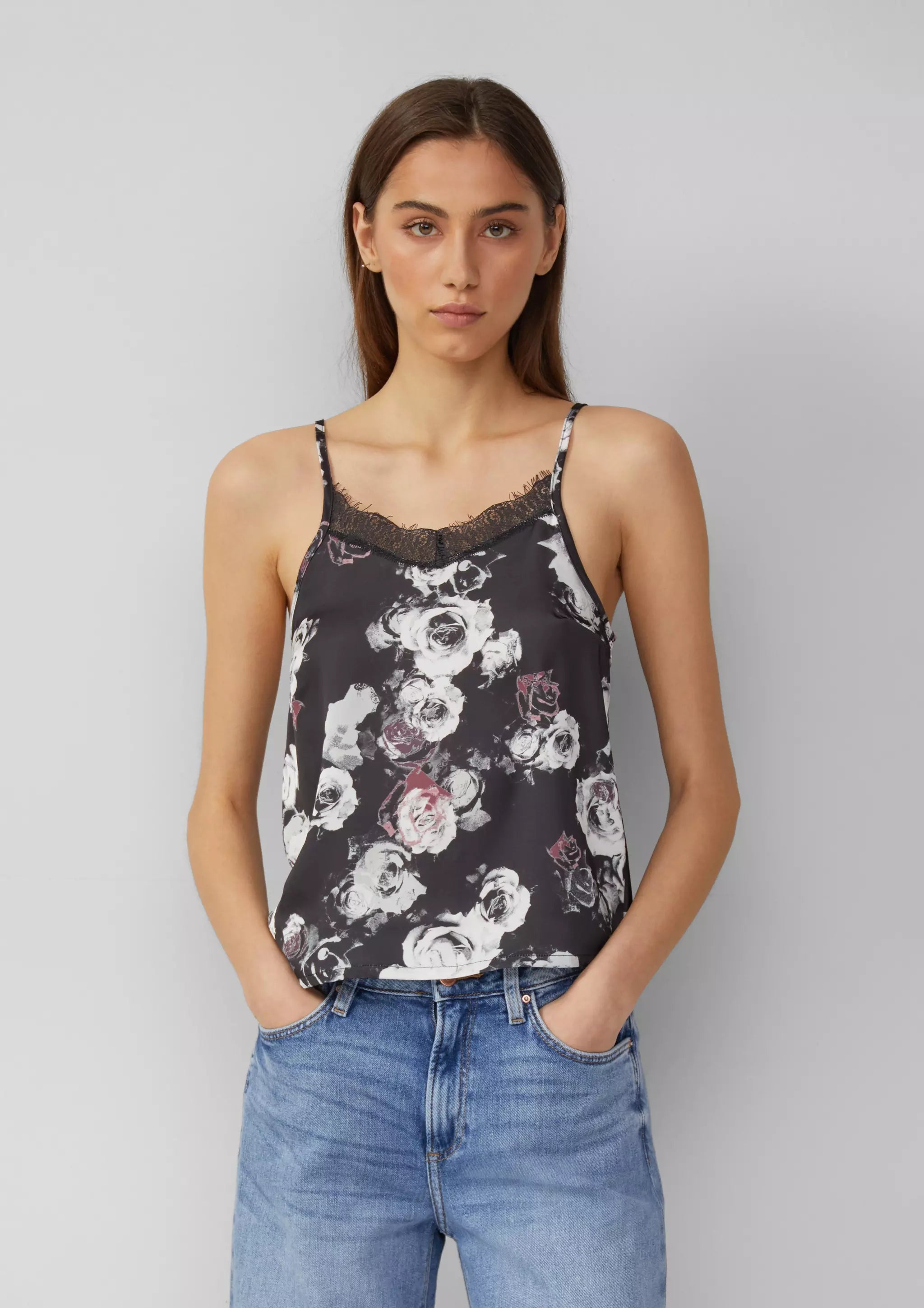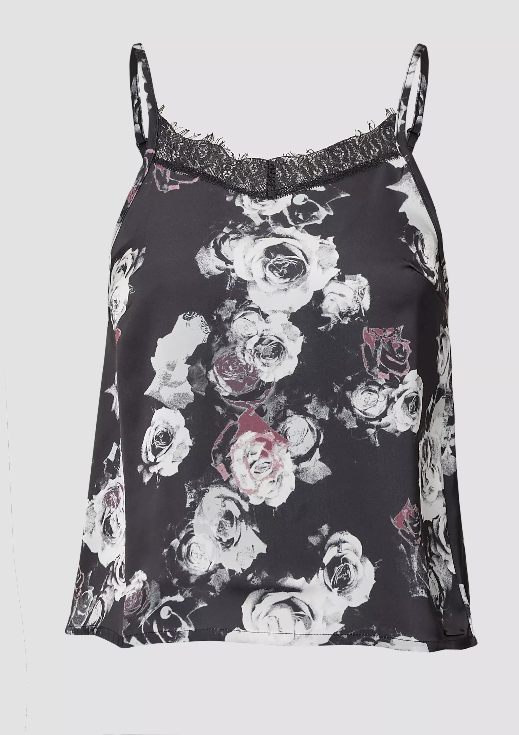 Dein Sommer-Vibe: Satin-Top mit All-over-Print und Spitzendetail am Ausschnitt. Perfekt für Party und Urlaub! Regular Fit für lässigen Komfort. Stylen und losgehen - du bist bereit für coole Momente.