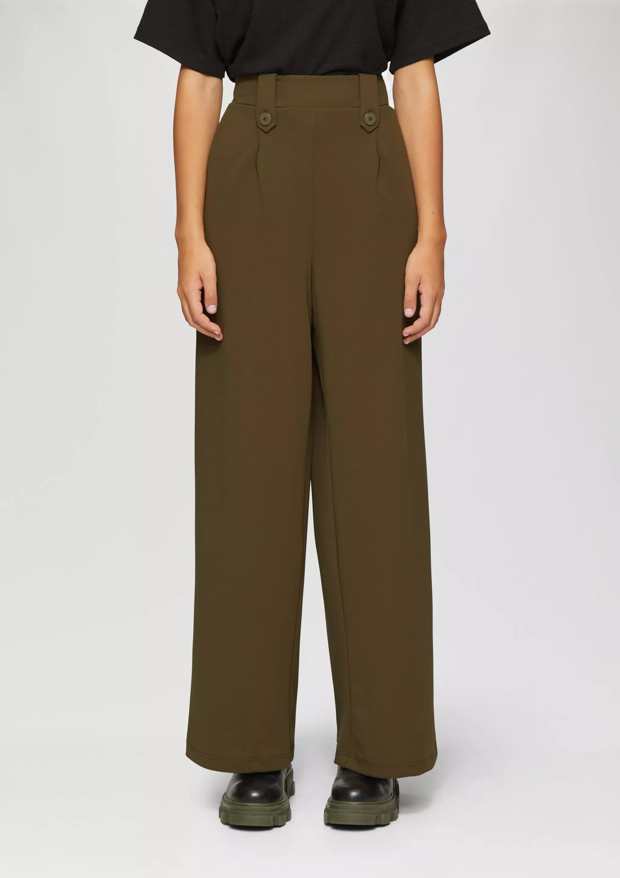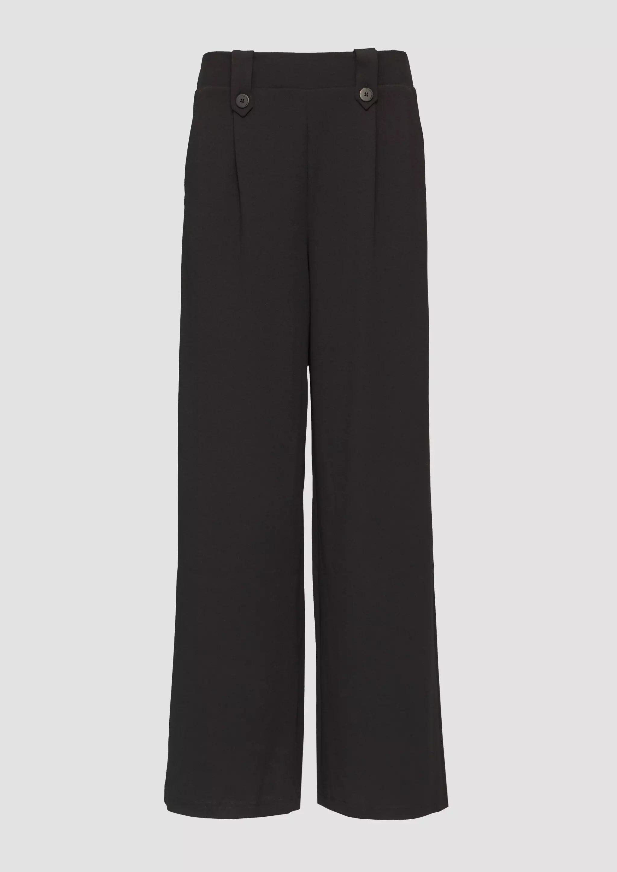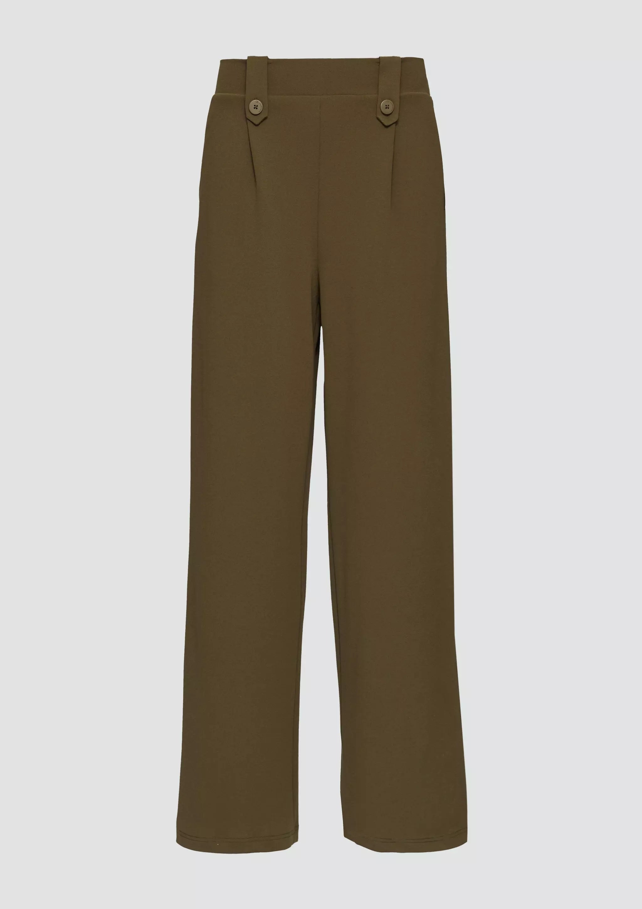 Lässige Crêpe-Hose mit Wide Leg und hohem Bund für deinen entspannten Look. Der elastische Interlockjersey sorgt für Komfort, während Zierknöpfe und Gürtelschlaufen stylishe Akzente setzen. Perfekt für coole Outfits im Alltag und bei Events.