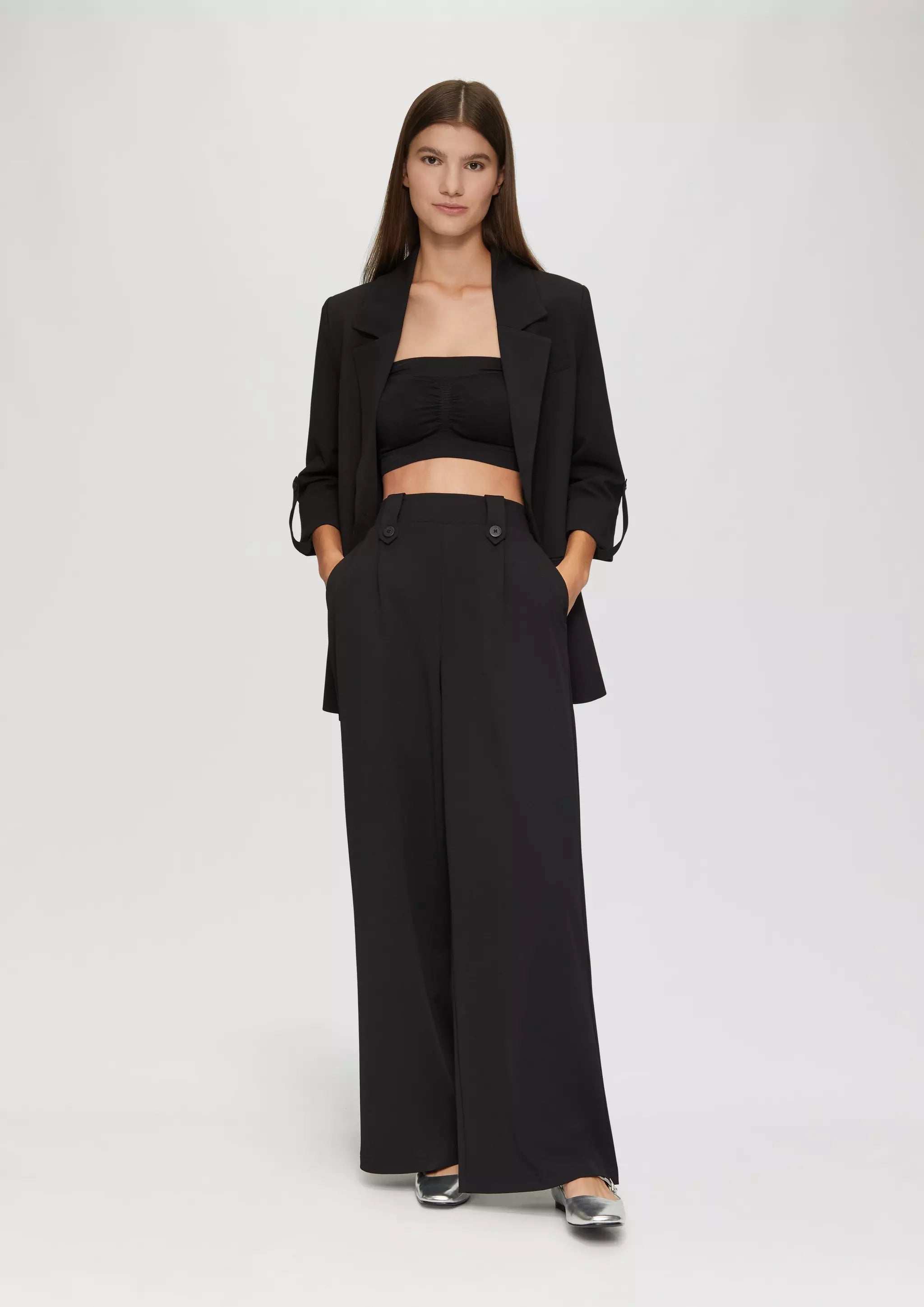 Crêpe-Hose im Relaxed Fit mit Wide Leg