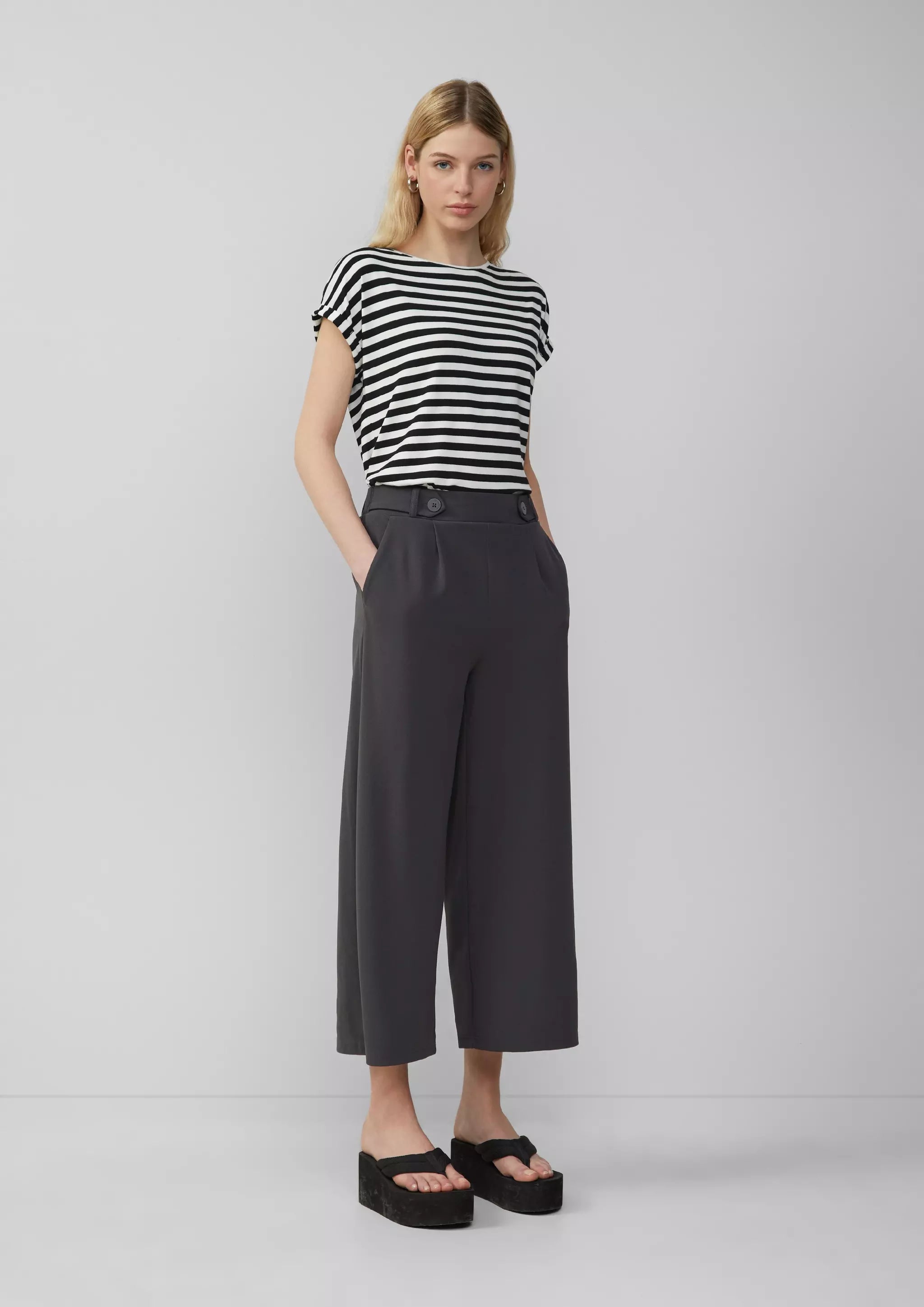 Lässig und bequem: Diese Culotte aus fließendem Interlockjersey passt perfekt zu deinem Alltag. Mit hohem Bund und weitem Bein bist du von morgens bis abends stylish unterwegs. Wie wär's mit einem Coffee-Date?